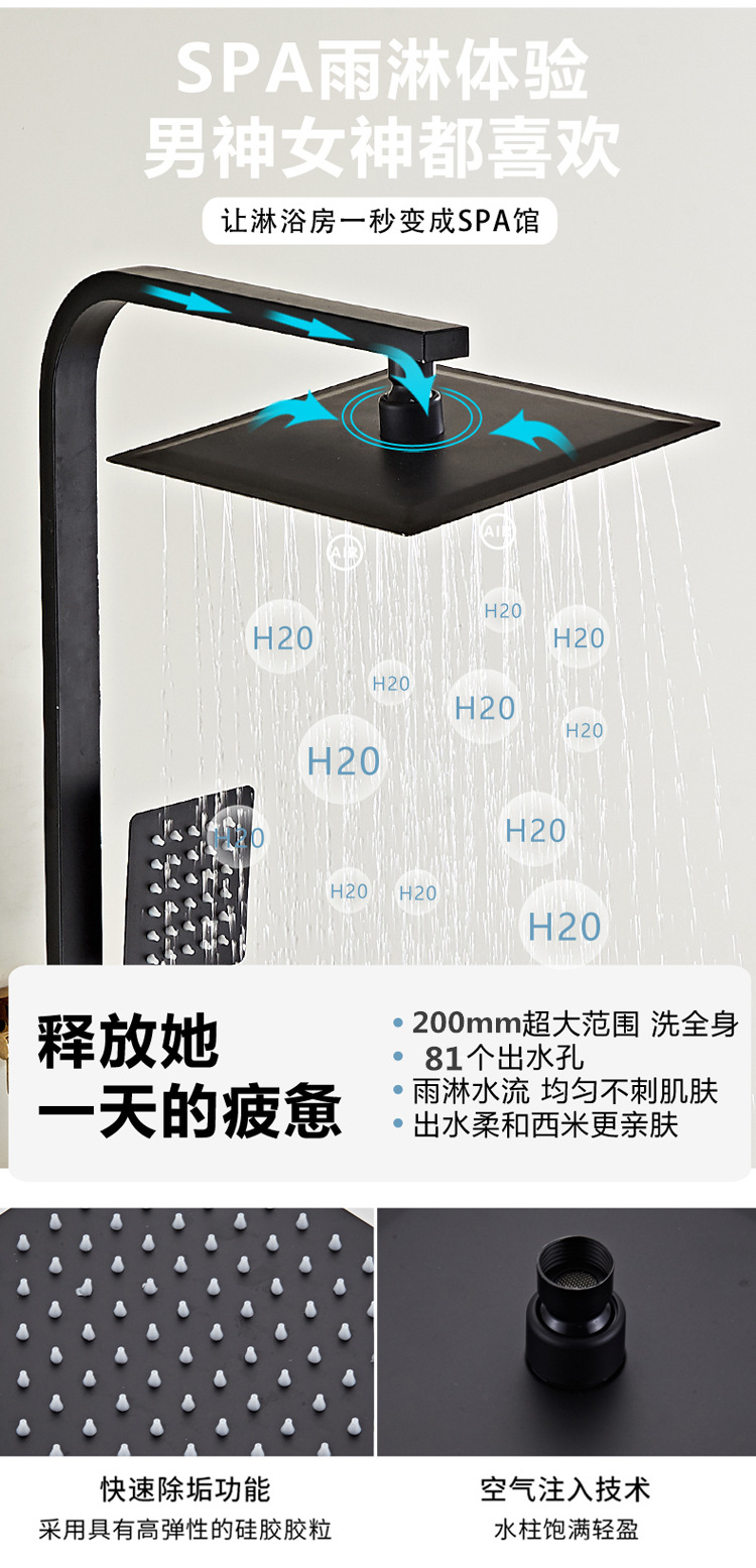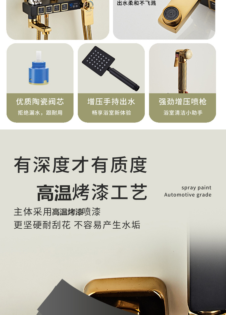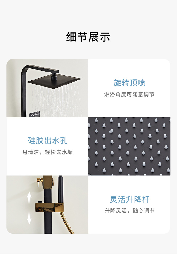 • 블랙 골드 사각 버튼 4단계 - 다기능 디지털 디스플레이 - 사각 스프레이 [핫 및 콜드 스타일]