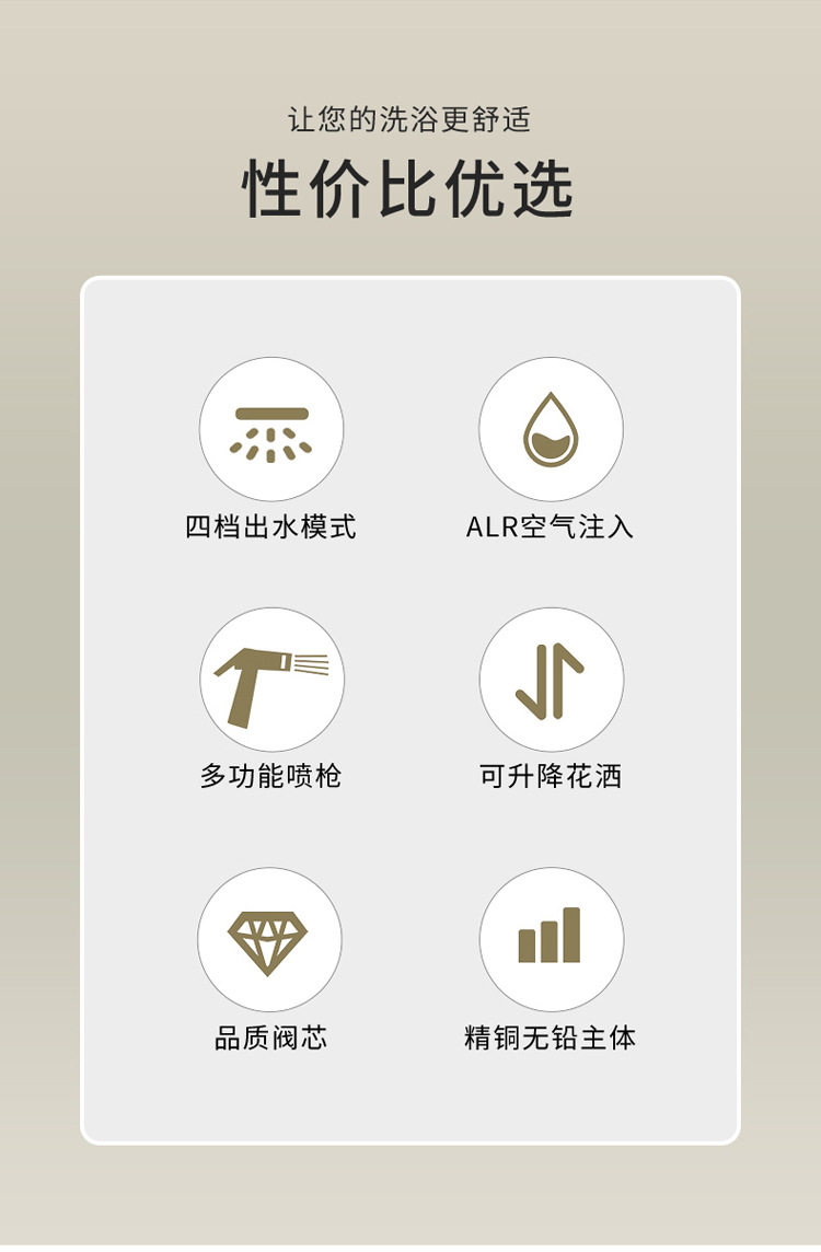 • 4개의 레벨을 갖춘 황금색 사각형 버튼 - 다기능 디지털 디스플레이 - 사각형 스프레이 [뜨거운 스타일과 차가운 스타일]