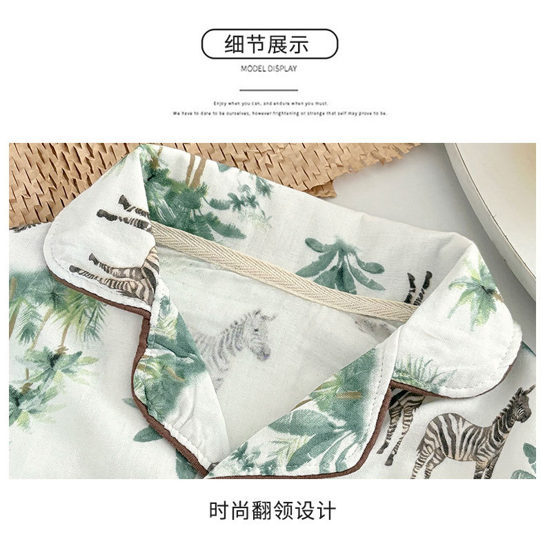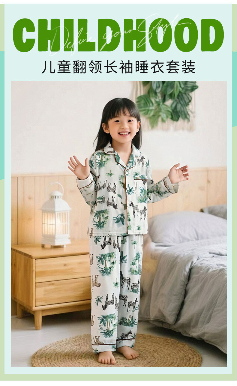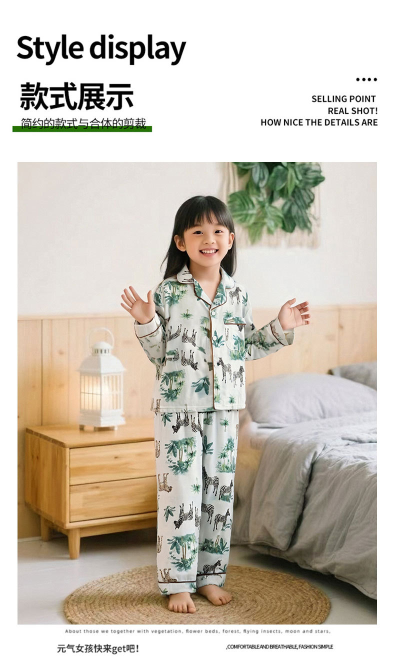 봄과 여름 새로운 어린이 옷깃 가정 의류 어린이 얇은 카디건 인쇄 긴팔 바지 면화 잠옷 세트스토어 가기