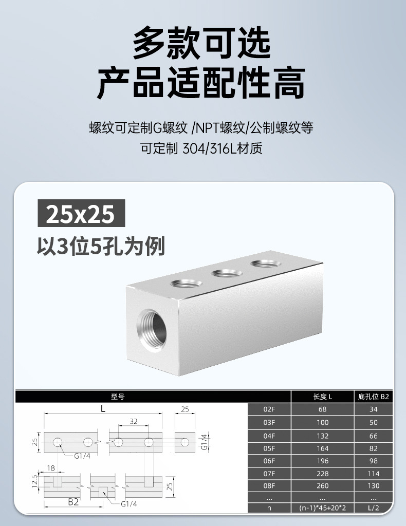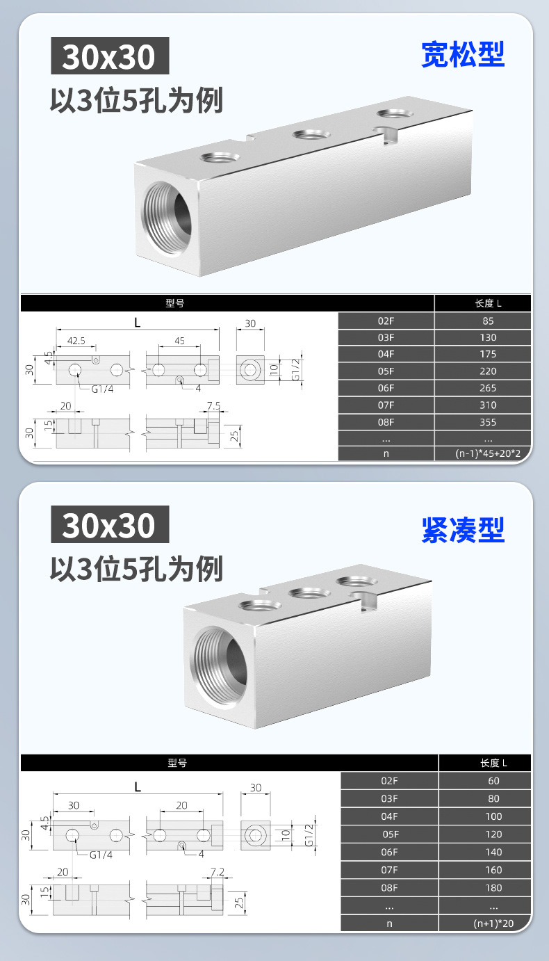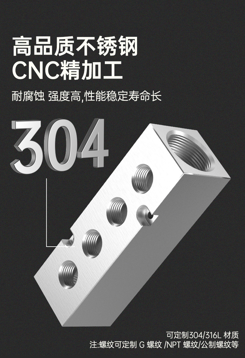 304 스테인레스 스틸 공기 분배기 30*30 다중 파이프 공기 분배기 분배기 직선형 오일 분배기 4 포인트스토어 가기