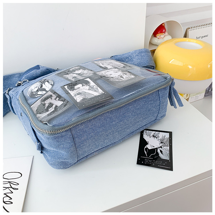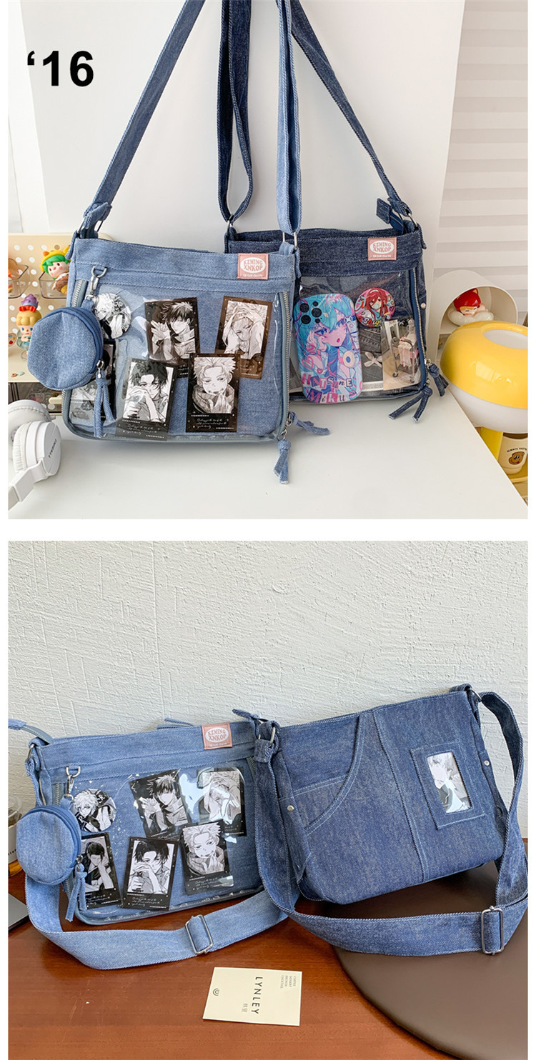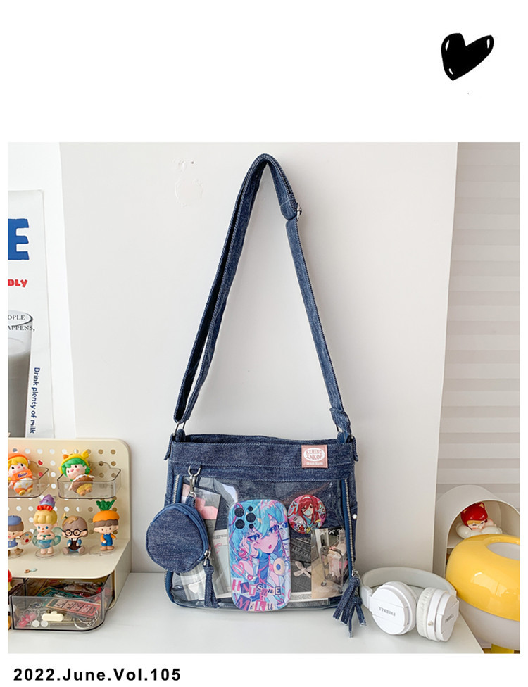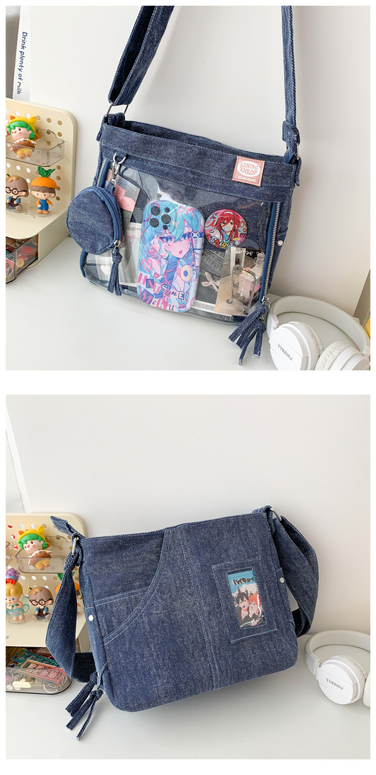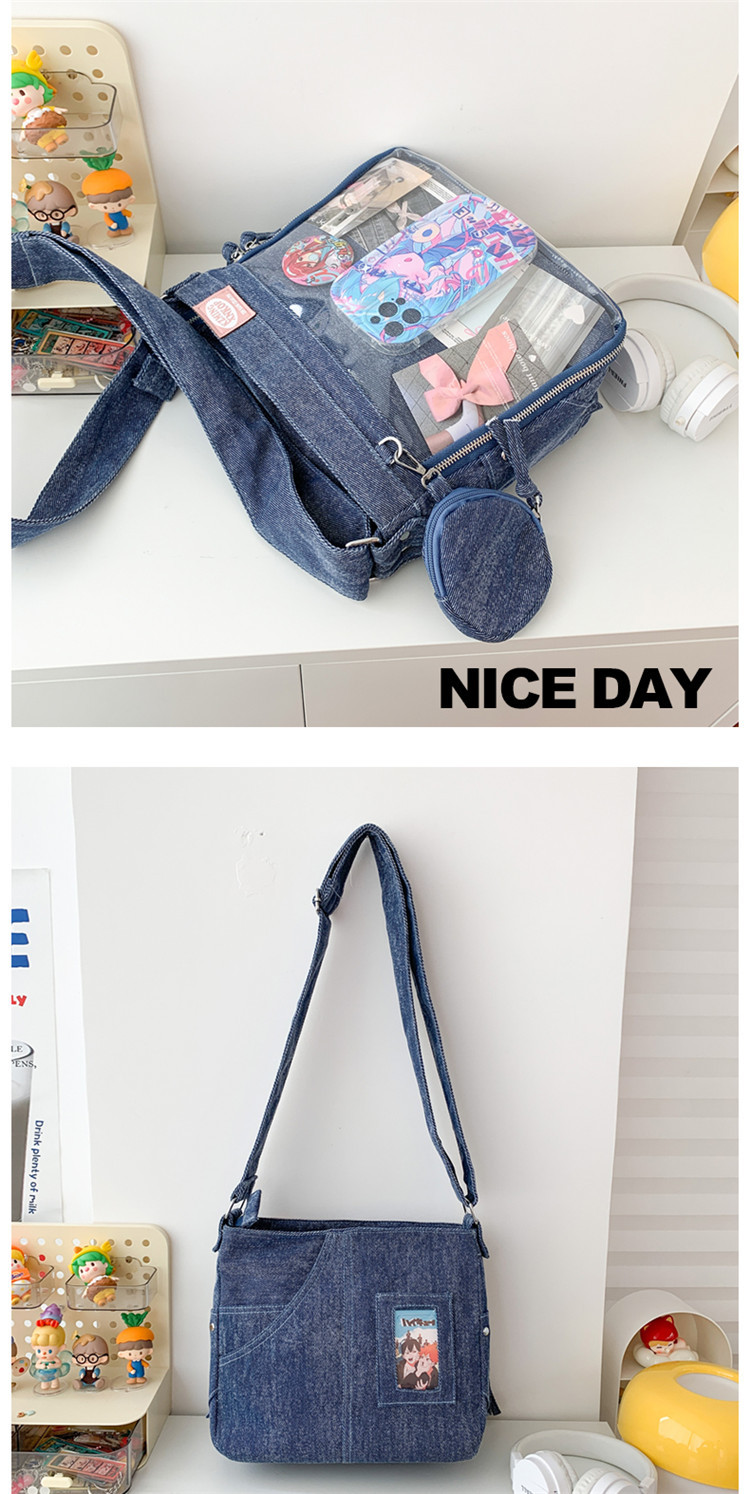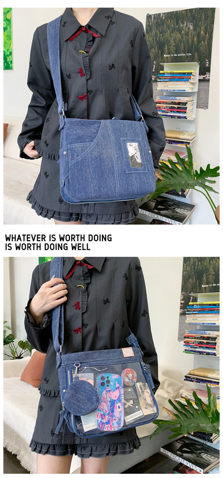 새로운 일본 틈새 통증 가방 달콤하고 시원한 스타일 2차원 데님 중학생 투명 숄더백 복고풍 메신저 백