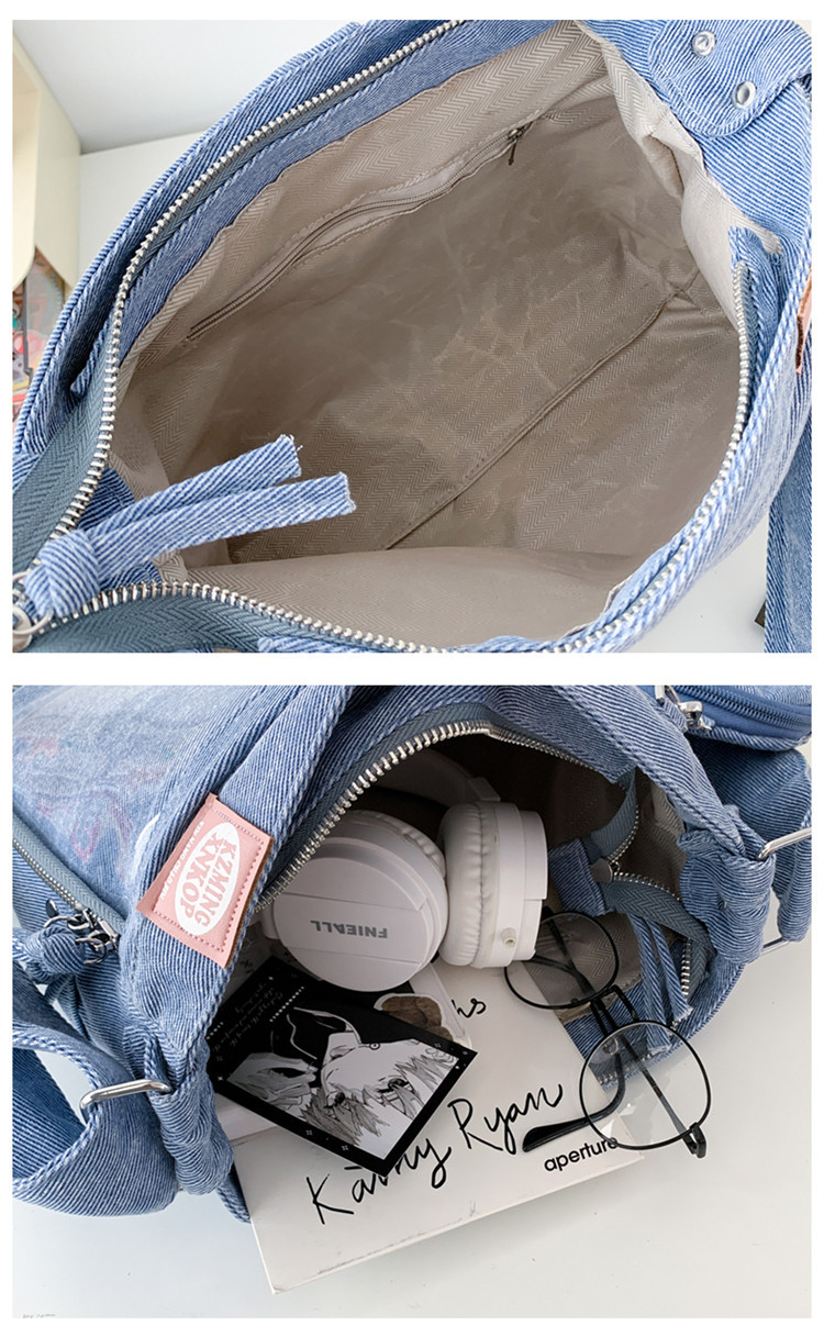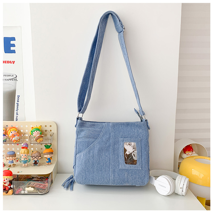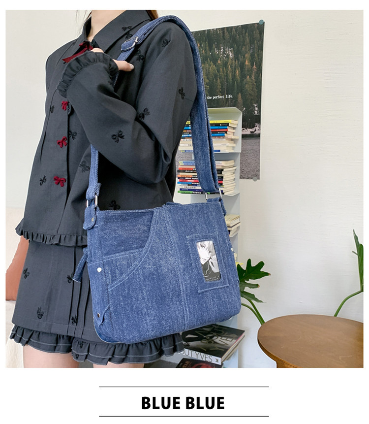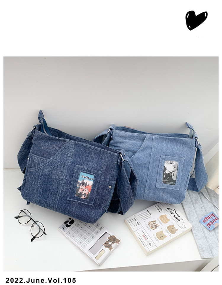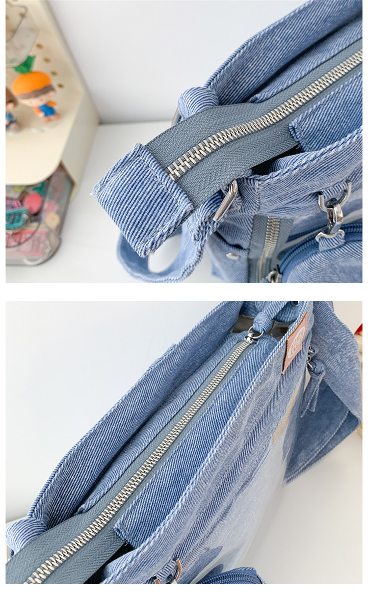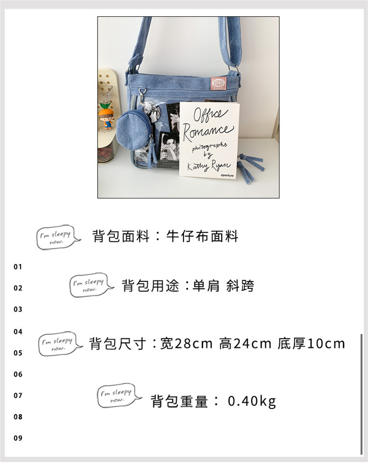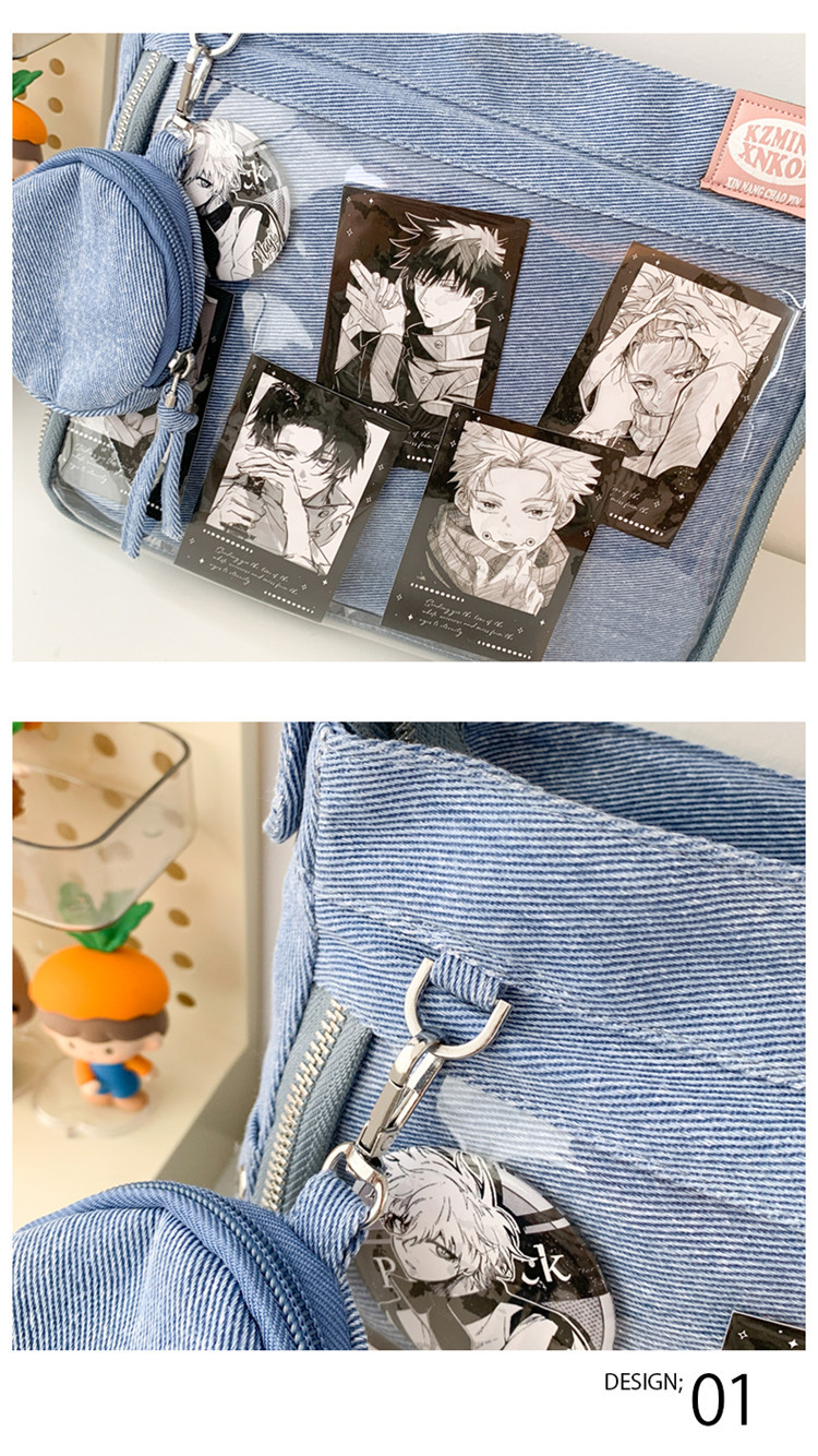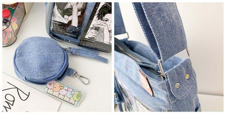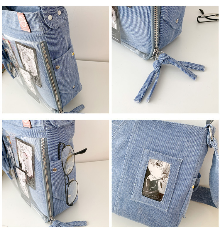 새로운 일본 틈새 통증 가방 달콤하고 시원한 스타일 2차원 데님 중학생 투명 숄더백 복고풍 메신저 백