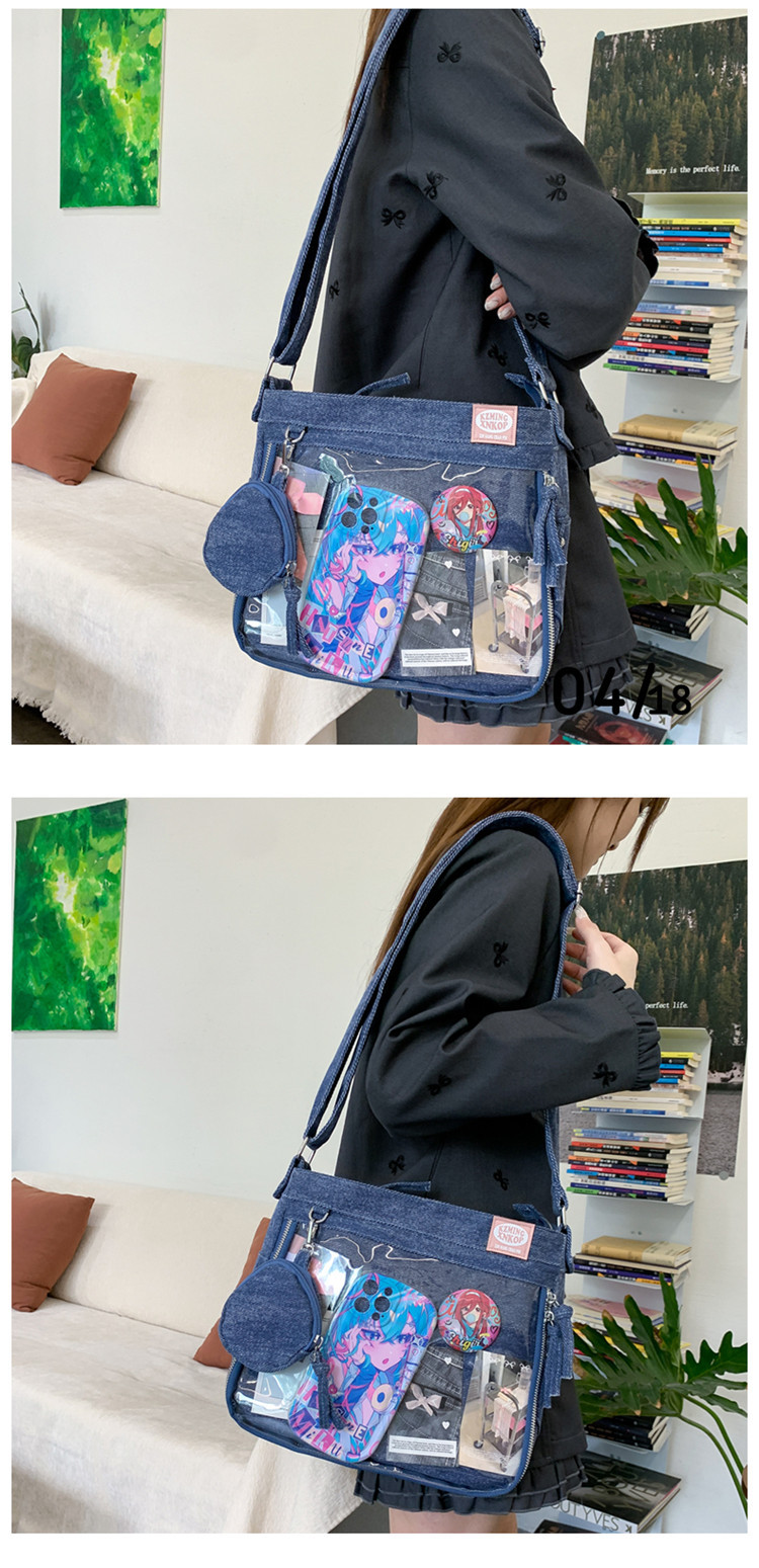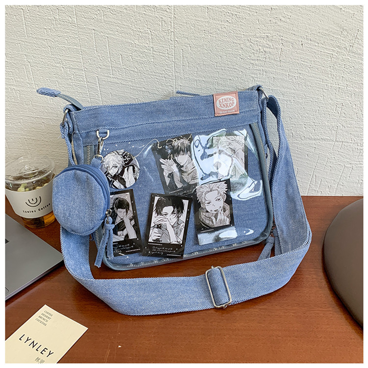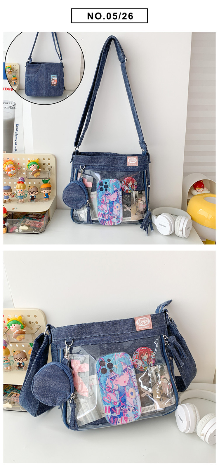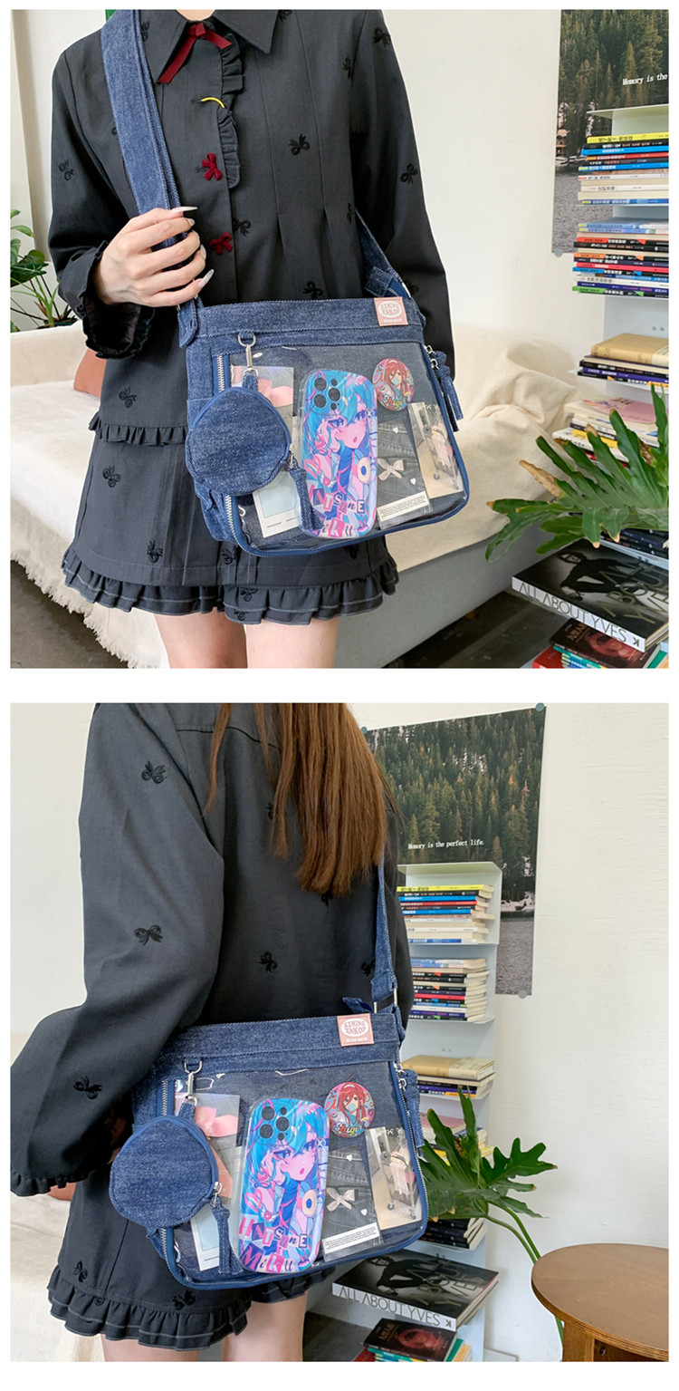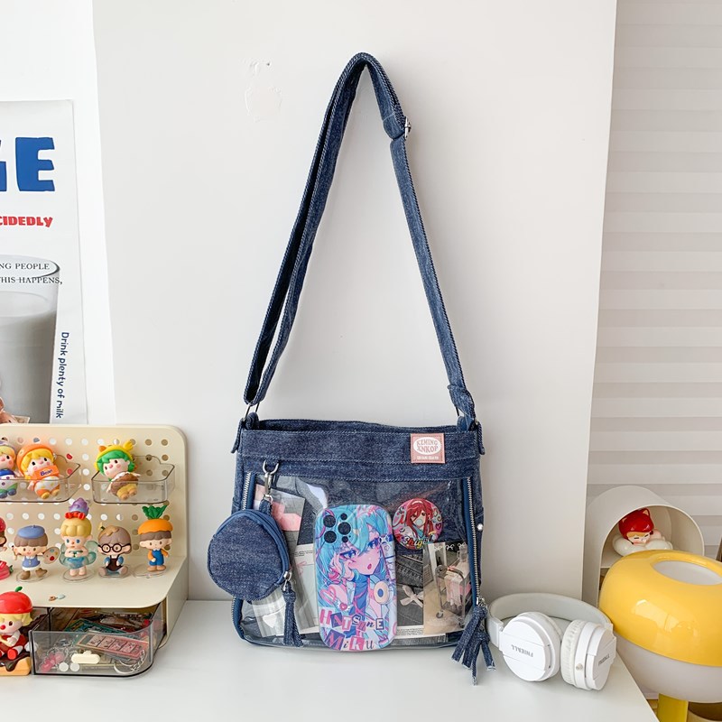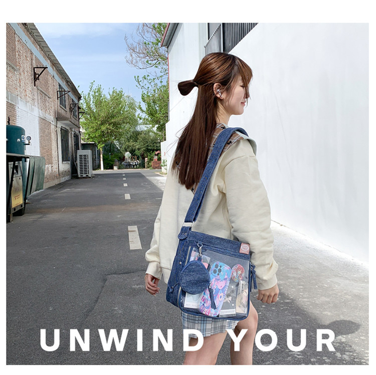 새로운 일본 틈새 통증 가방 달콤하고 시원한 스타일 2차원 데님 중학생 투명 숄더백 복고풍 메신저 백스토어 가기