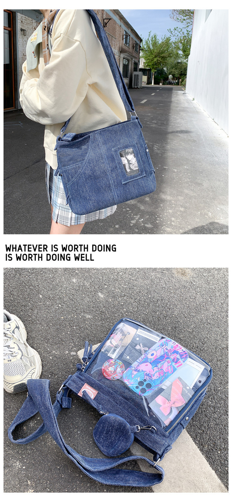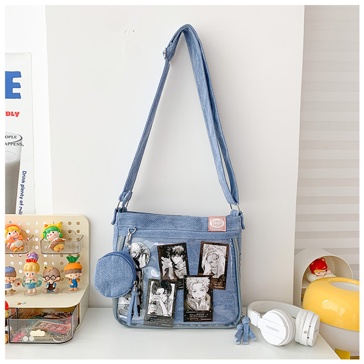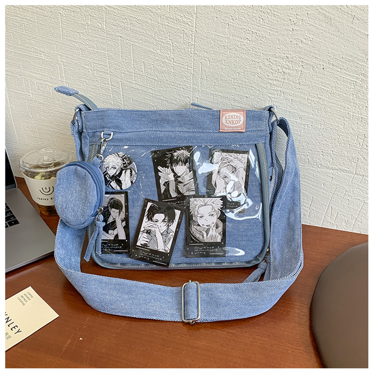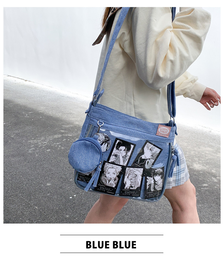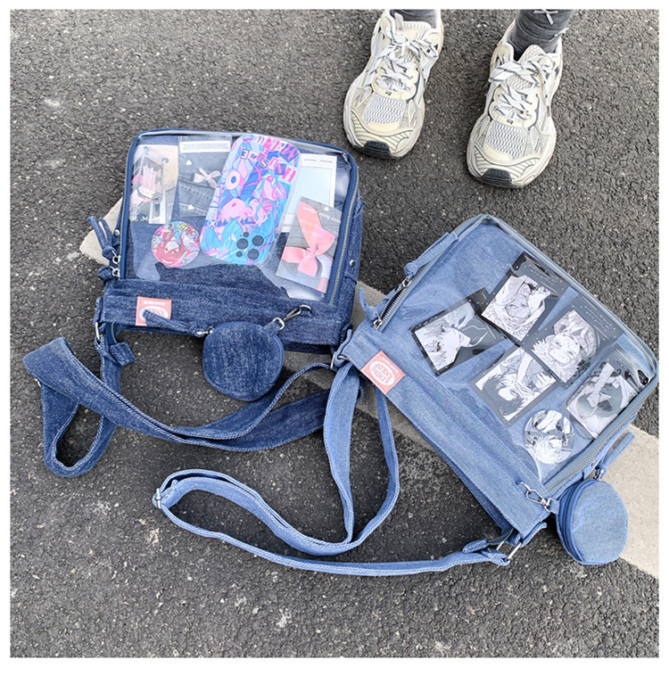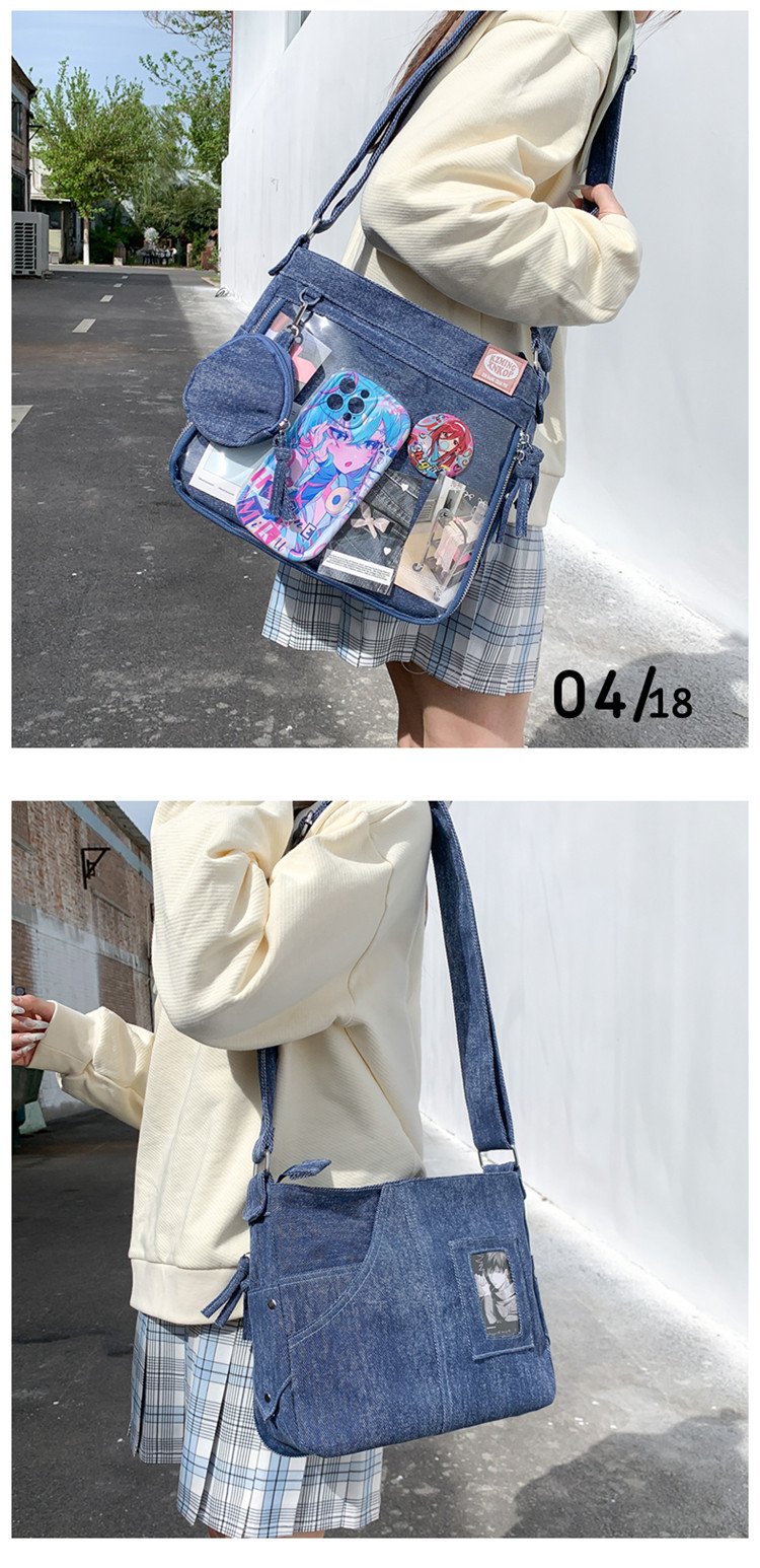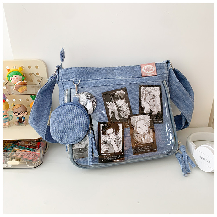새로운 일본 틈새 통증 가방 달콤하고 시원한 스타일 2차원 데님 중학생 투명 숄더백 복고풍 메신저 백스토어 가기