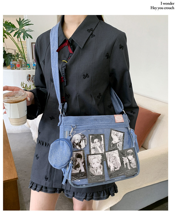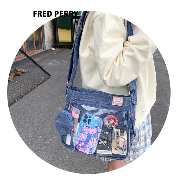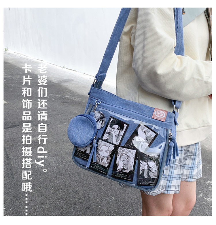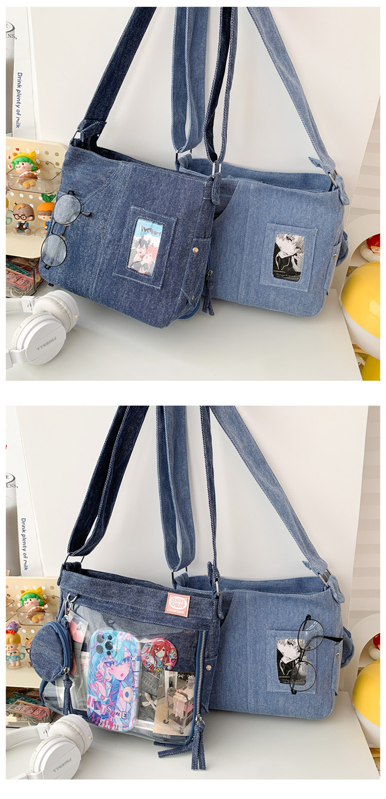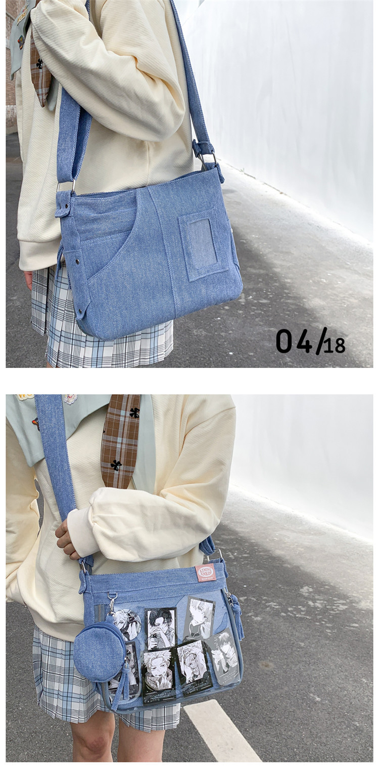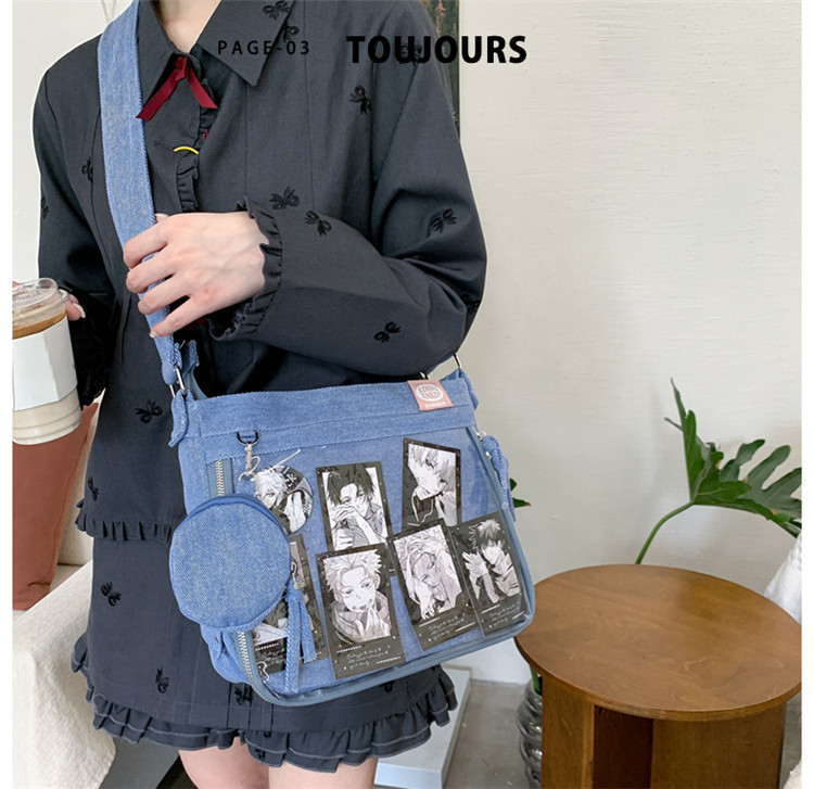 새로운 일본 틈새 통증 가방 달콤하고 시원한 스타일 2차원 데님 중학생 투명 숄더백 복고풍 메신저 백스토어 가기