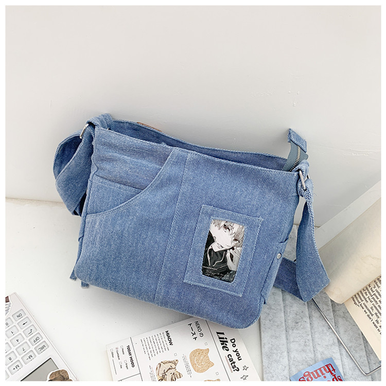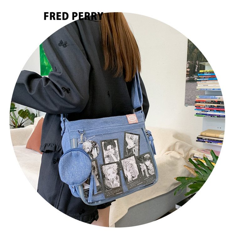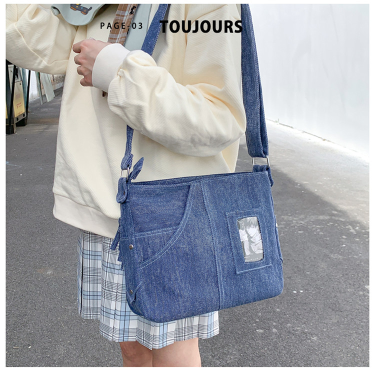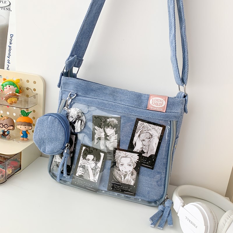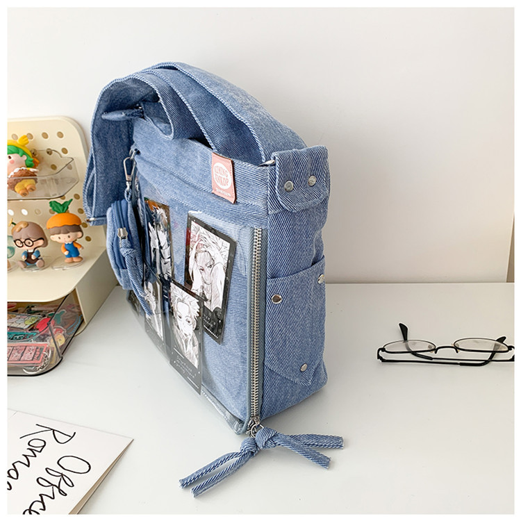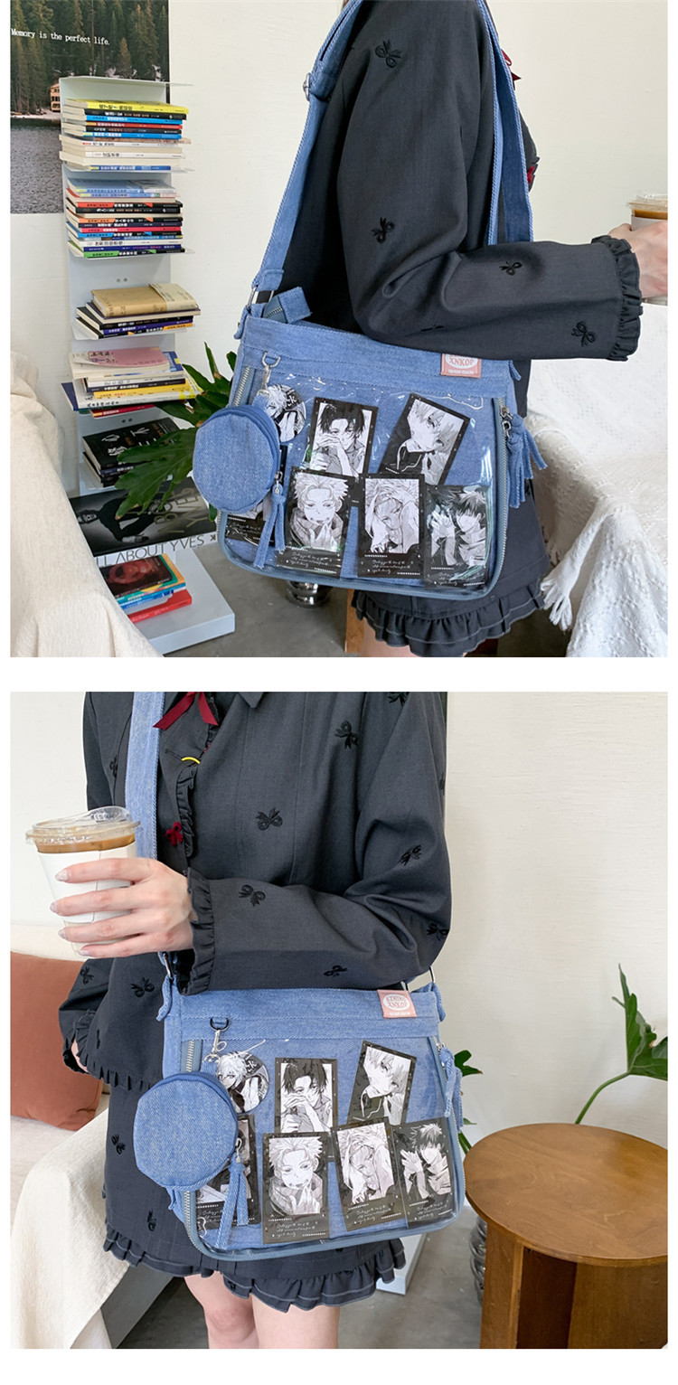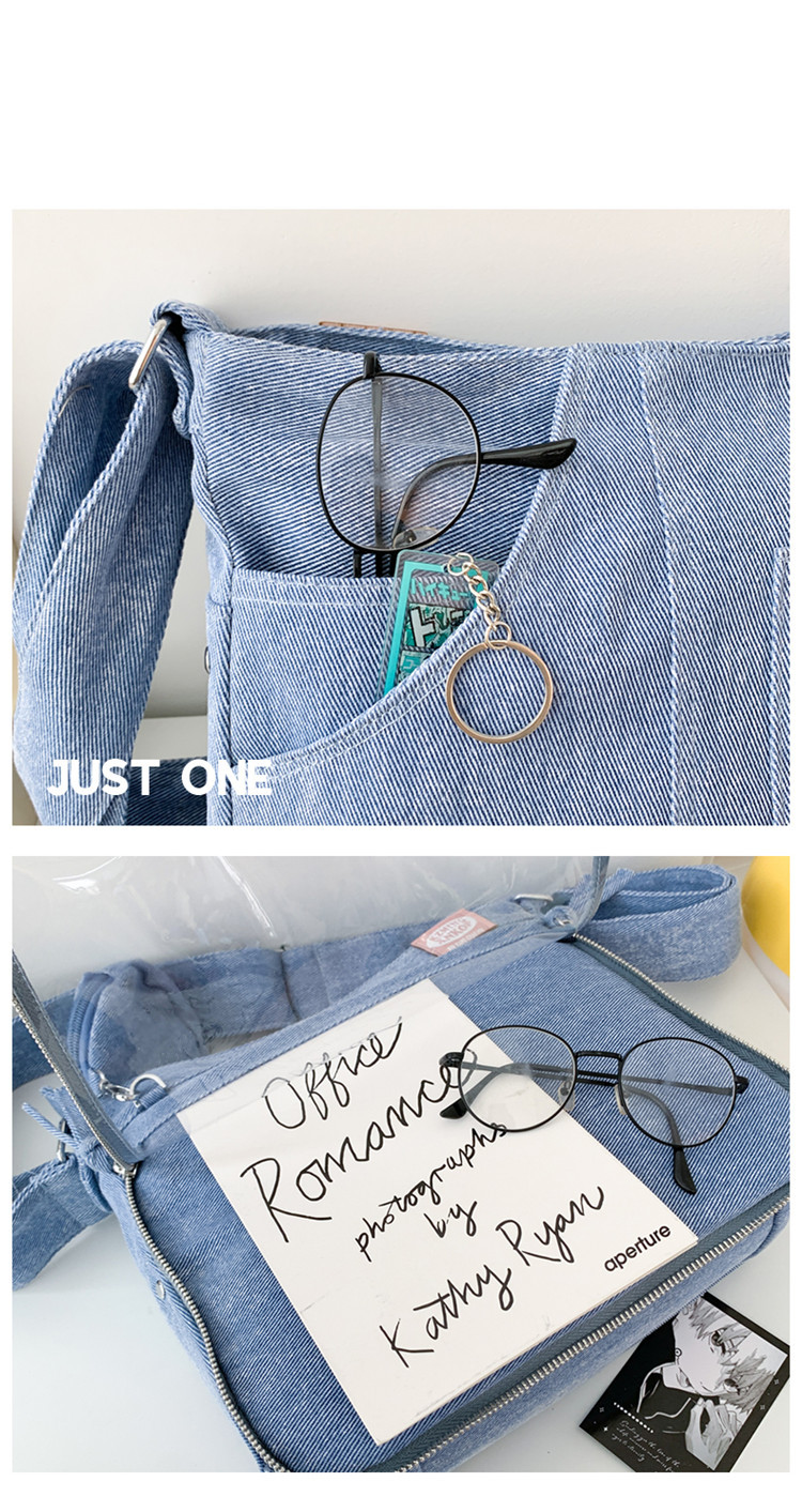 새로운 일본 틈새 통증 가방 달콤하고 시원한 스타일 2차원 데님 중학생 투명 숄더백 복고풍 메신저 백스토어 가기