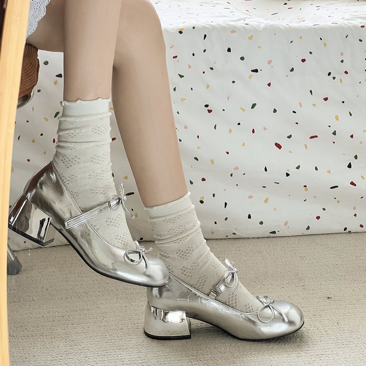 하이힐 여성 기질 하이 엔드 피곤하지 않은 발 신발 2025 새로운 실버 프랑스 메리 제인 여성 신발 아름다운 두꺼운 힐스토어 가기