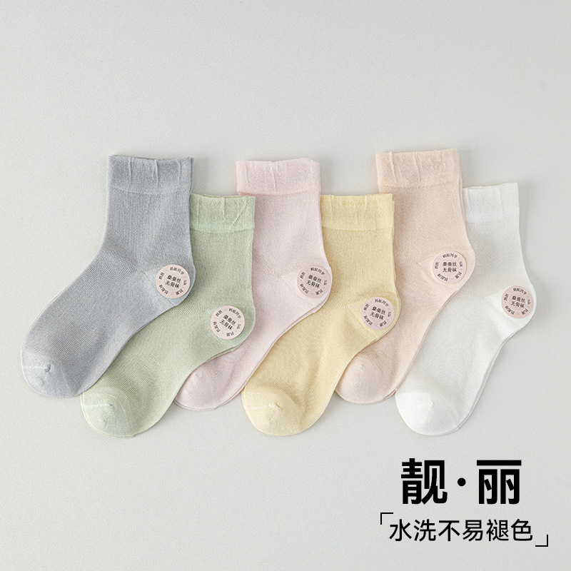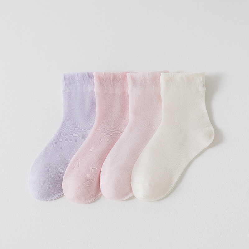 주지 어린이 양말 뽕나무 실크 여름 초박형 솔리드 컬러 본리스 메쉬 통기성 쿨 센스 소녀 소년의 미드 튜브 양말