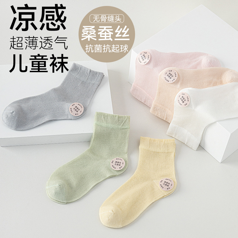 주지 어린이 양말 뽕나무 실크 여름 초박형 솔리드 컬러 본리스 메쉬 통기성 쿨 센스 소녀 소년의 미드 튜브 양말스토어 가기