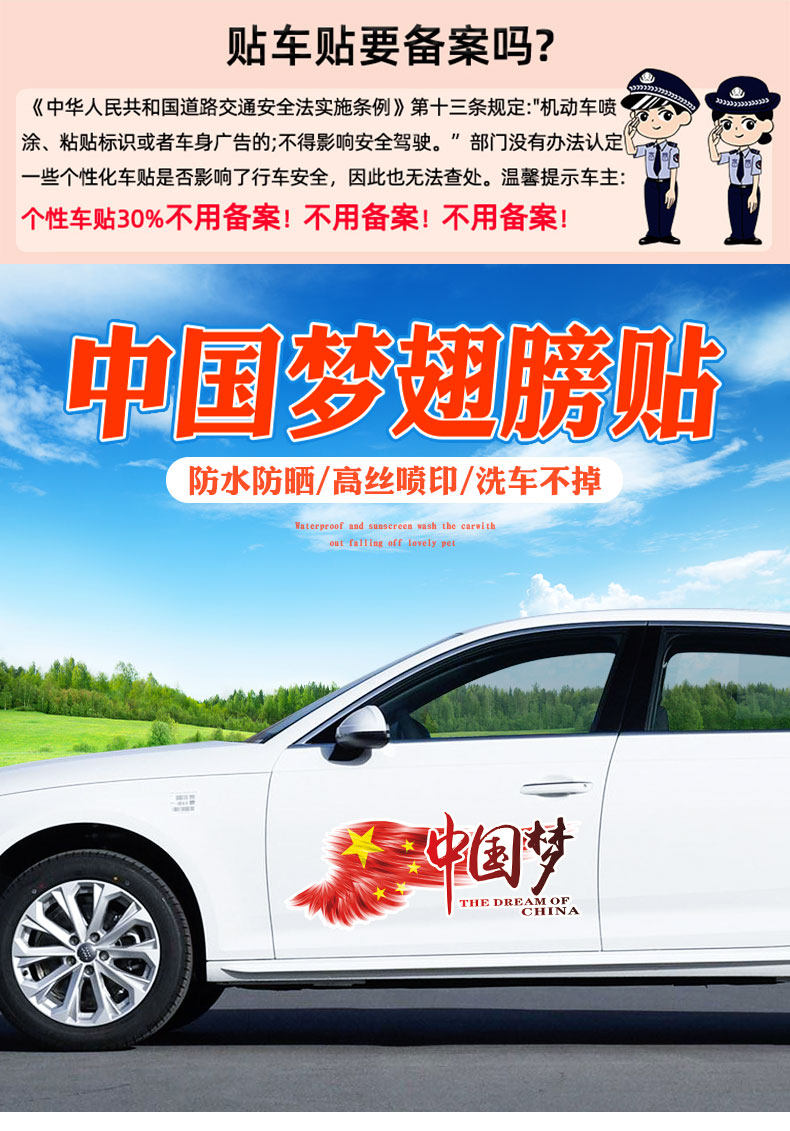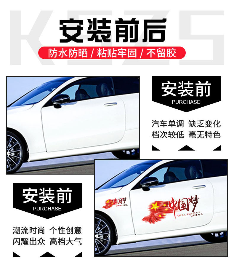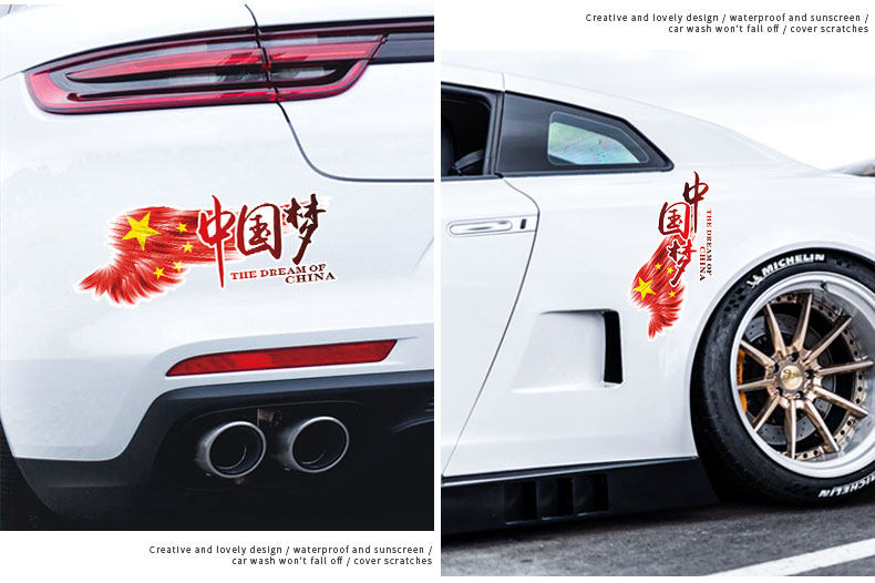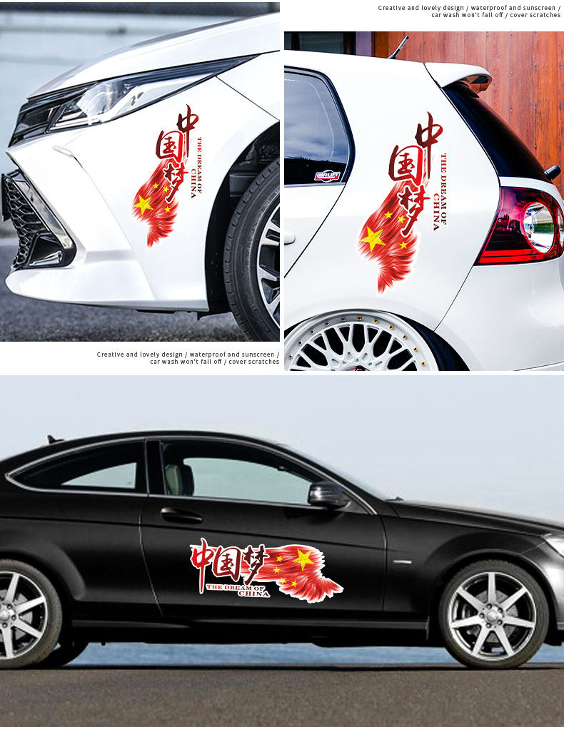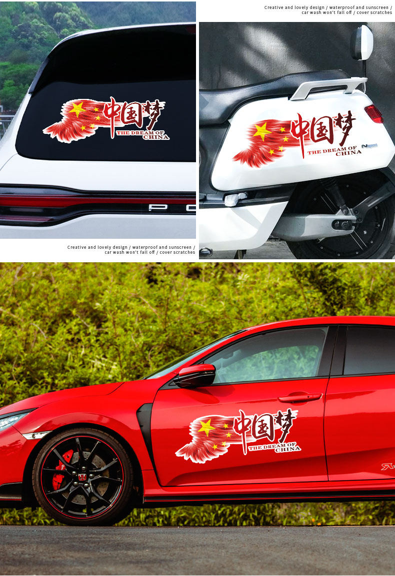 자동차 스티커 중국 꿈 텍스트 바디 스티커 개인화 된 창조적 인 스크래치 차단 애국적인 전기 오토바이 장식 스티커스토어 가기