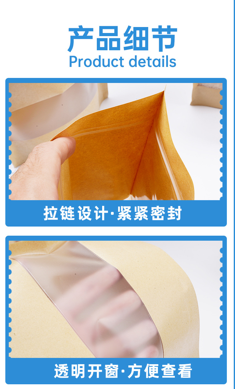 창 크래프트 종이 식품 특수 포장 가방 커피 차 방수 자체 밀봉 가방 곰팡이 곡물 밀봉 가방