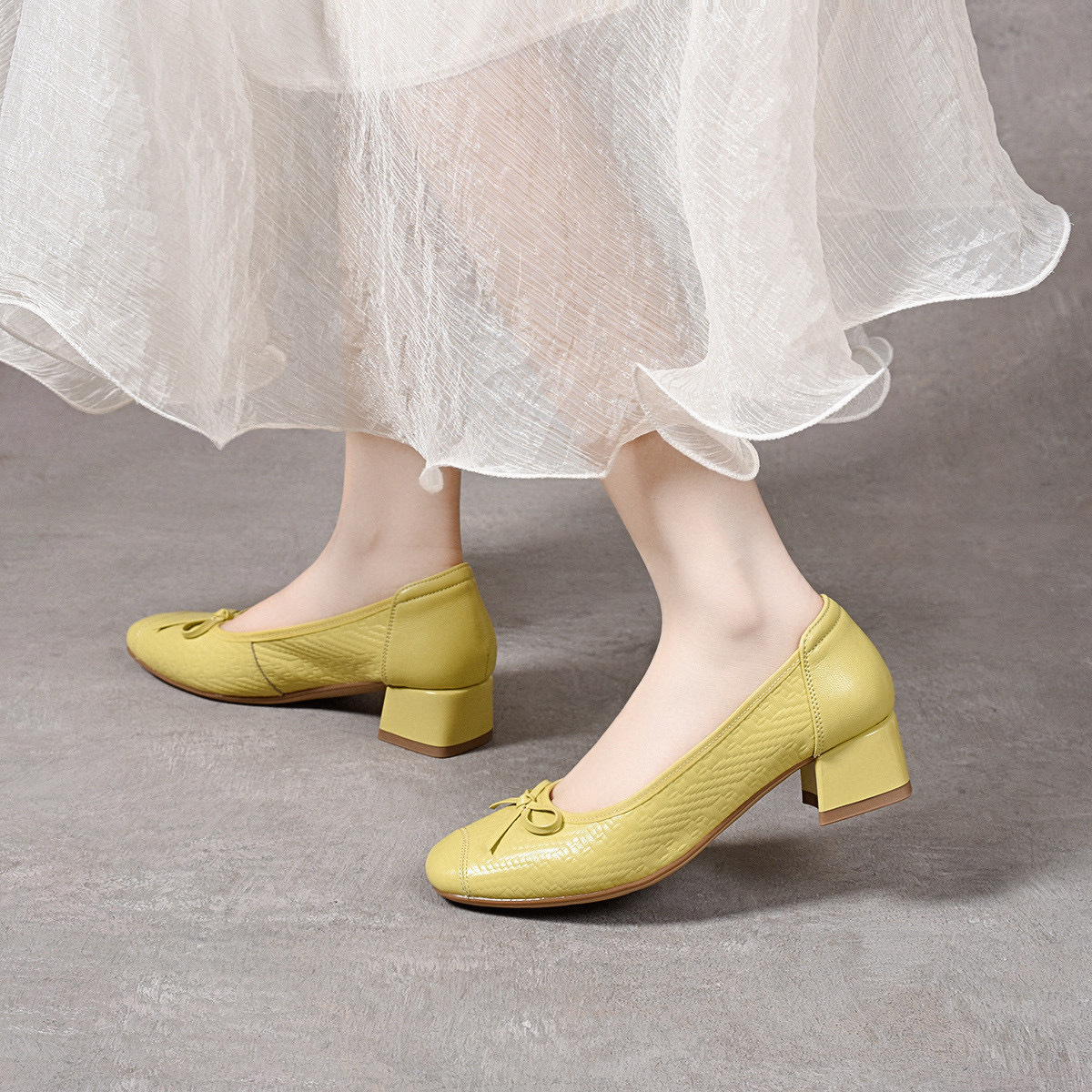 여성용 스퀘어 토 하이힐 2025 봄 여름 한국식 리본매듭 얕은 굽 중간 굽 슬립온 메리제인 슈즈스토어 가기