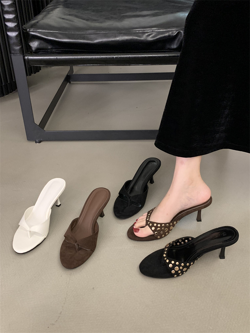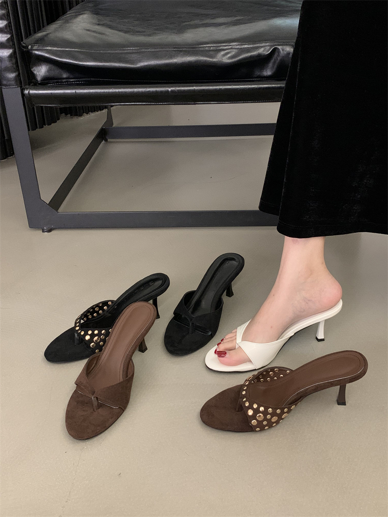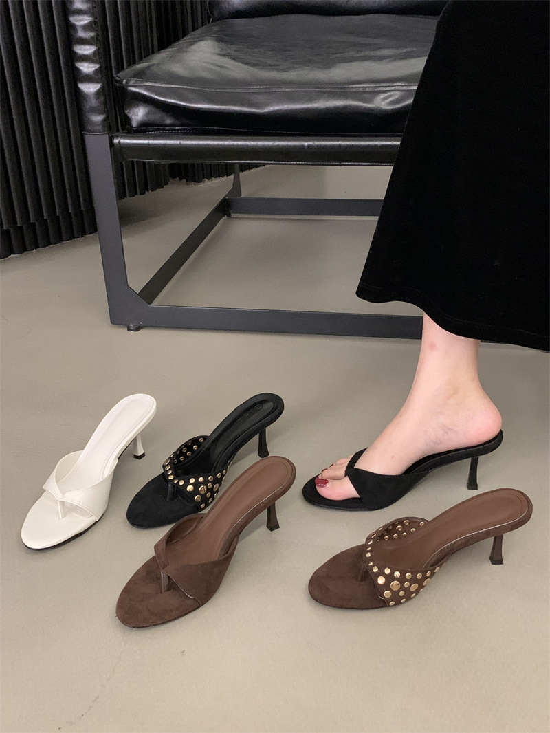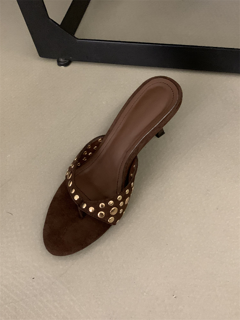 2025 새로운 고급 유럽과 미국 스타일의 리벳 플립 플롭 스웨이드 헤링본 하이힐 슬리퍼 여성 여름 겉옷
