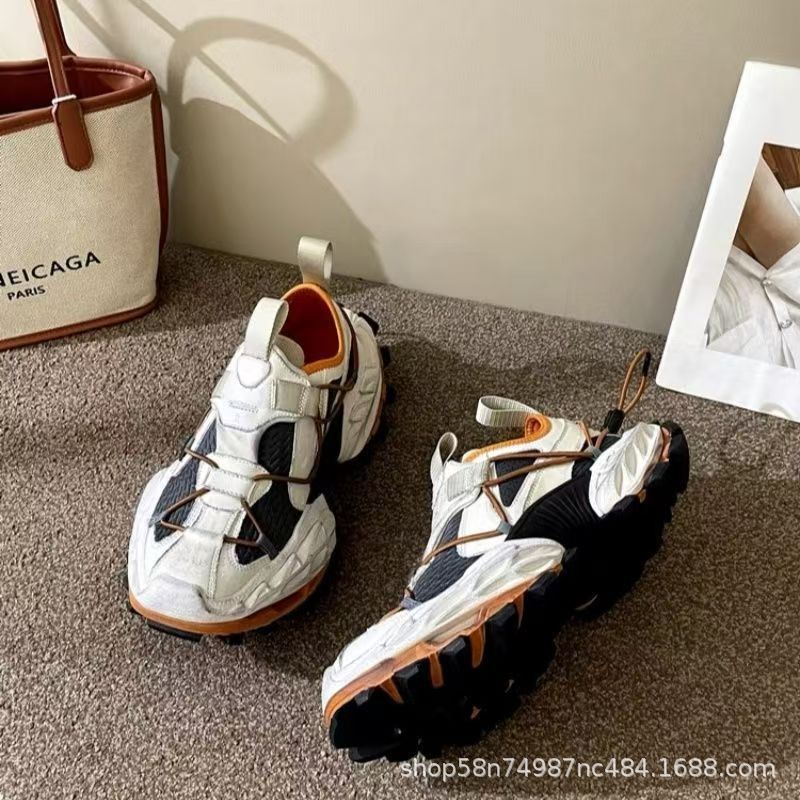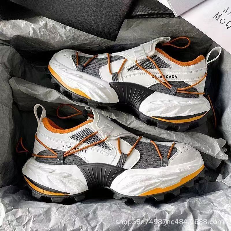 트렌디한 신발 2025 여름 신작 스포츠 남성 신발 기능성 스타일 두꺼운 밑창으로 패션 통기성 메쉬 캐주얼 트렌디 신발을 높입니다.