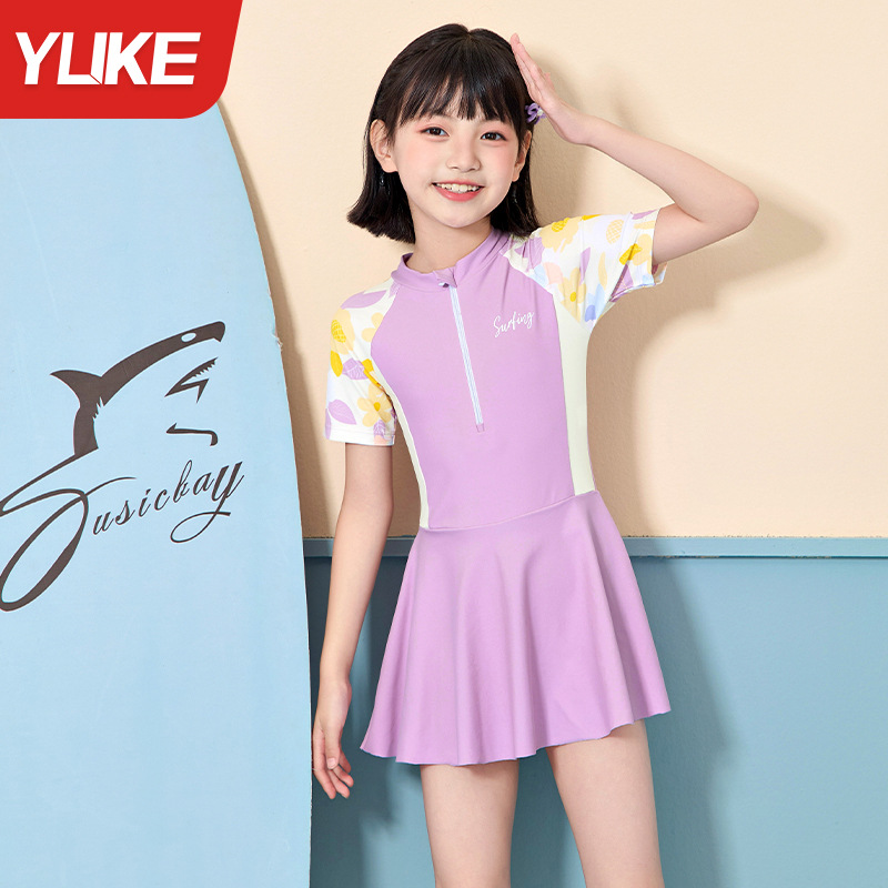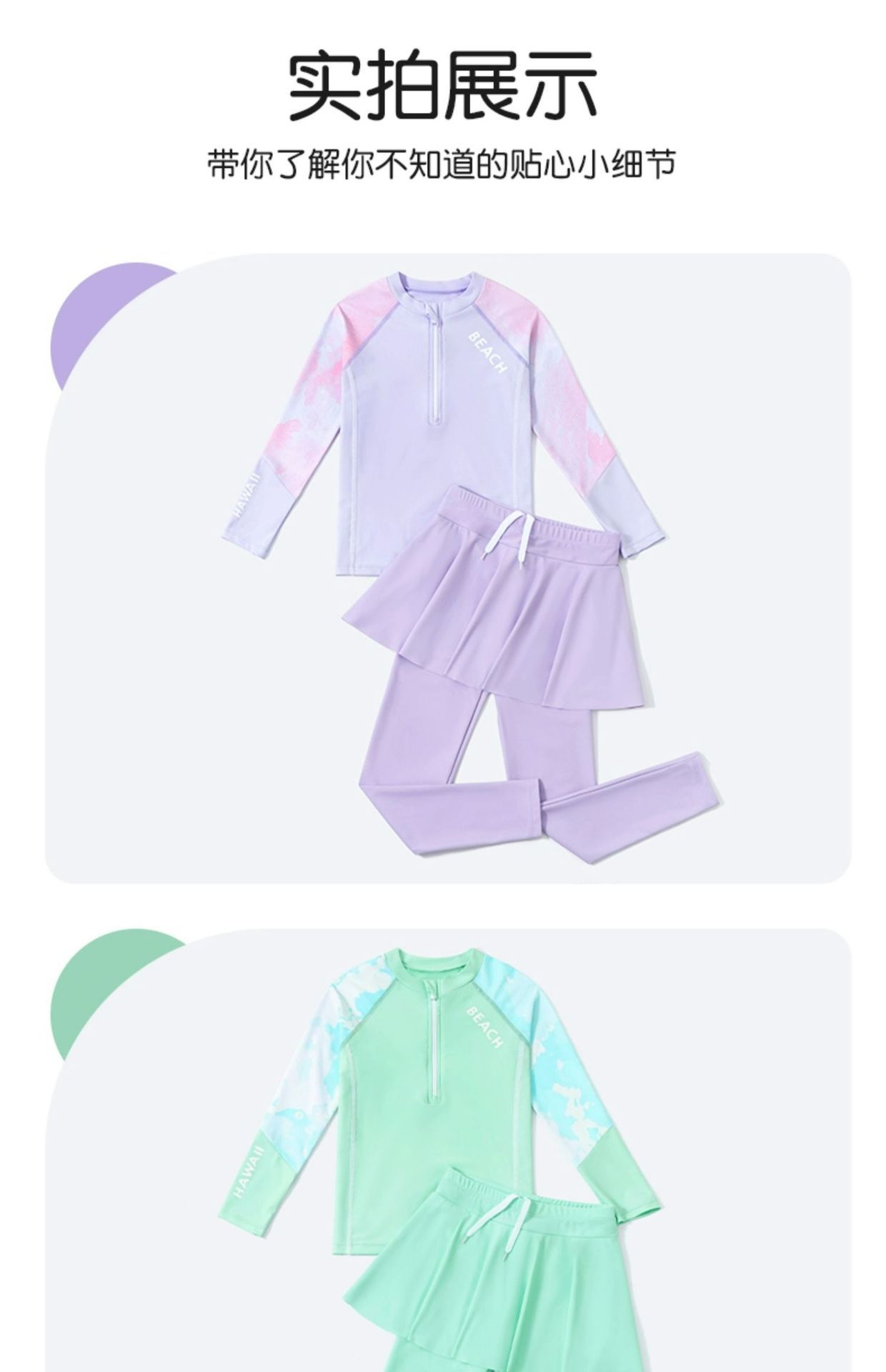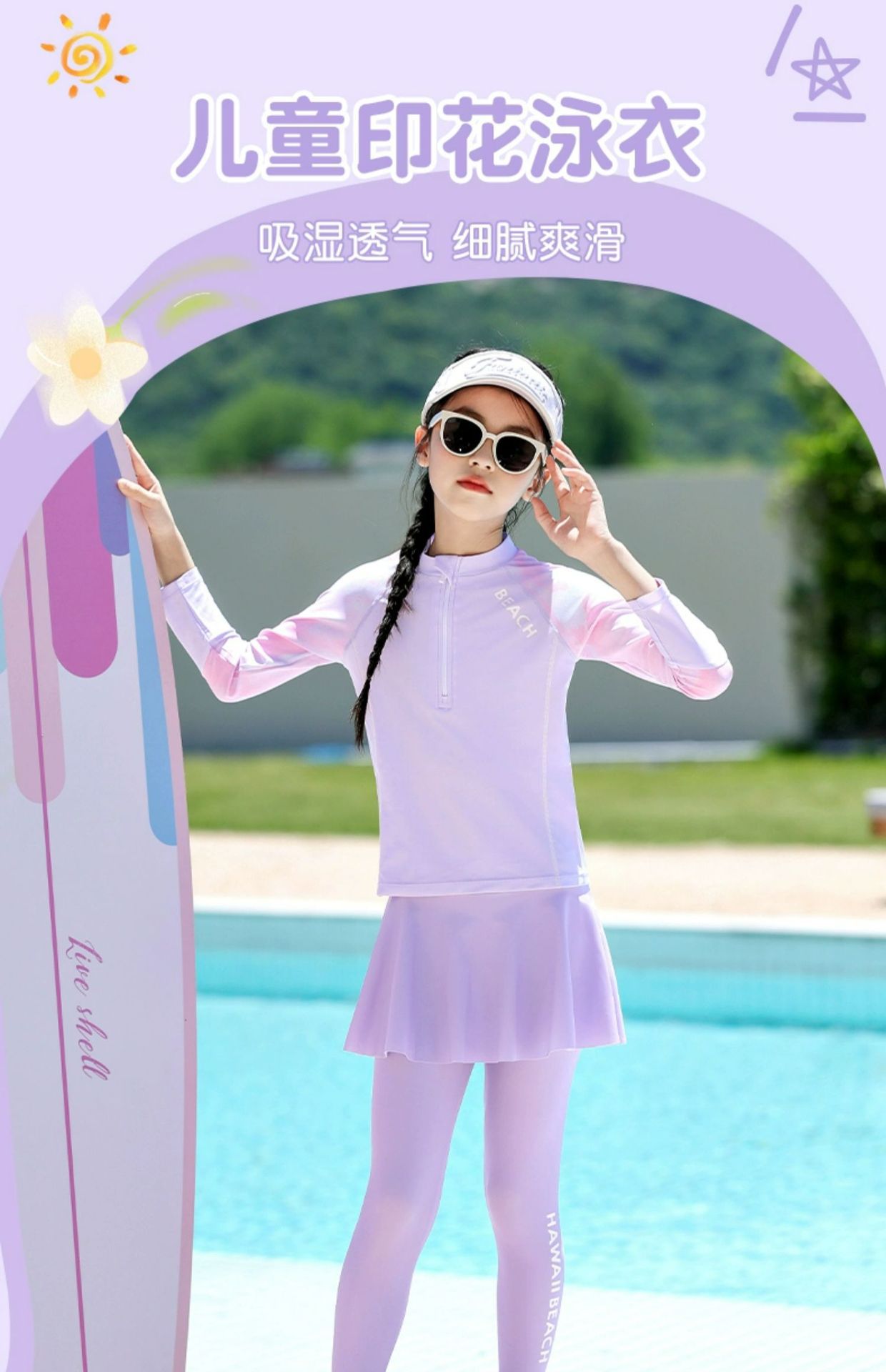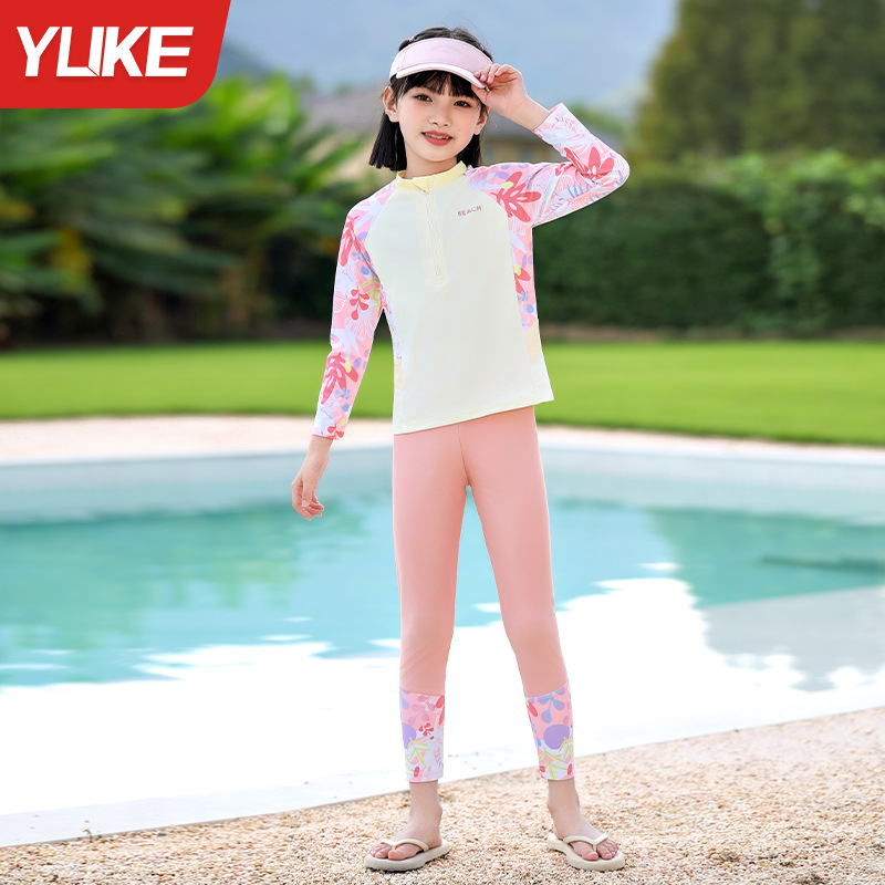 아동 수영복 소녀 스플릿 긴팔 바지 자외선 차단 수영복 2025 새로운 중대형 어린이 소녀 온천 슈트스토어 가기