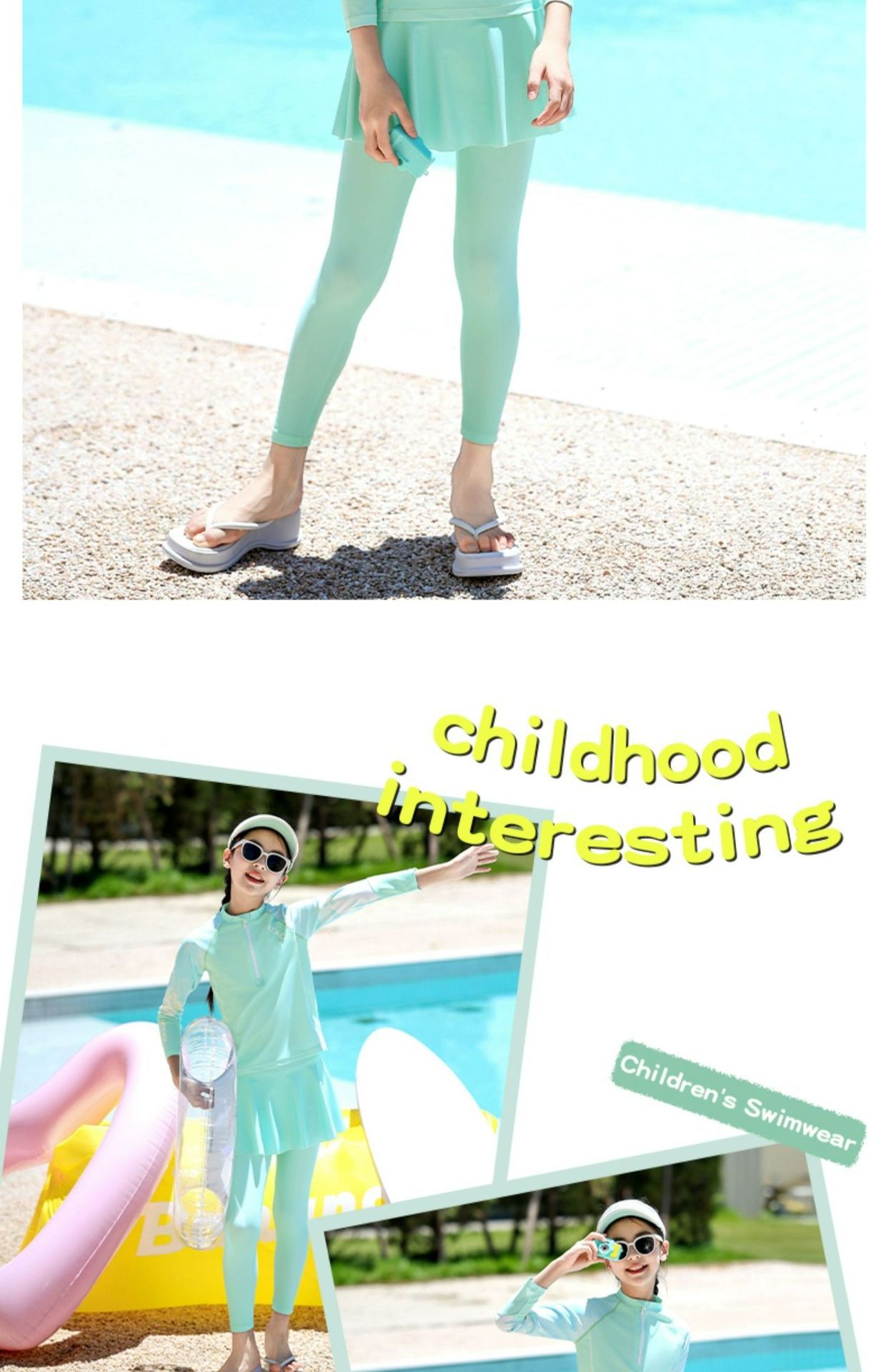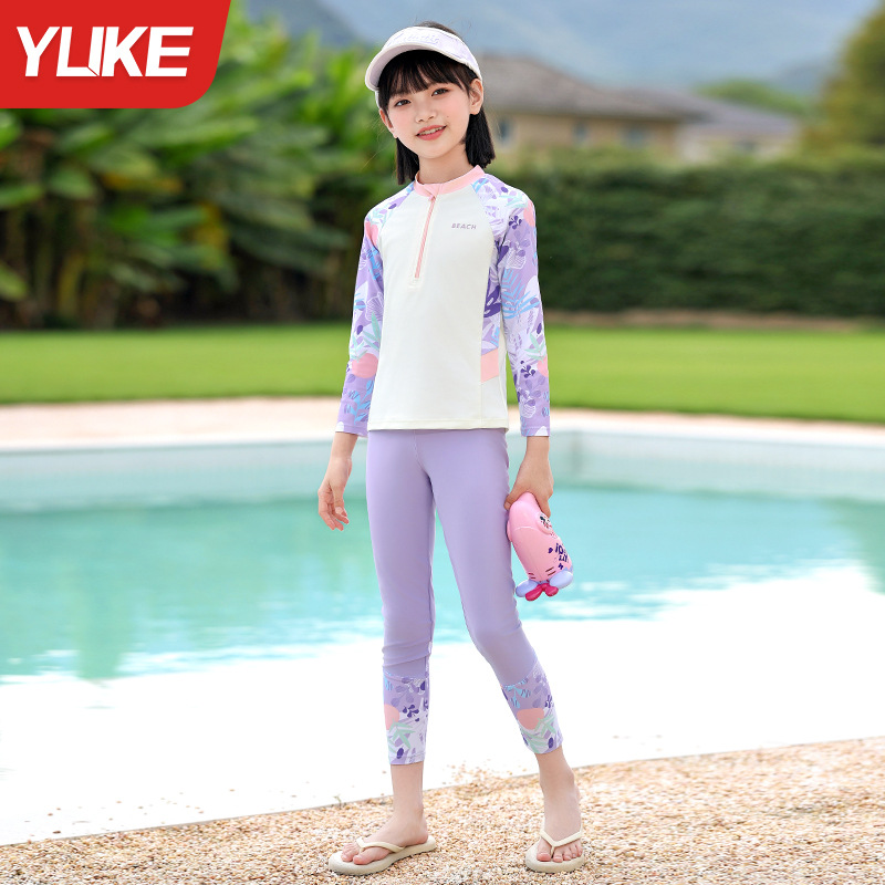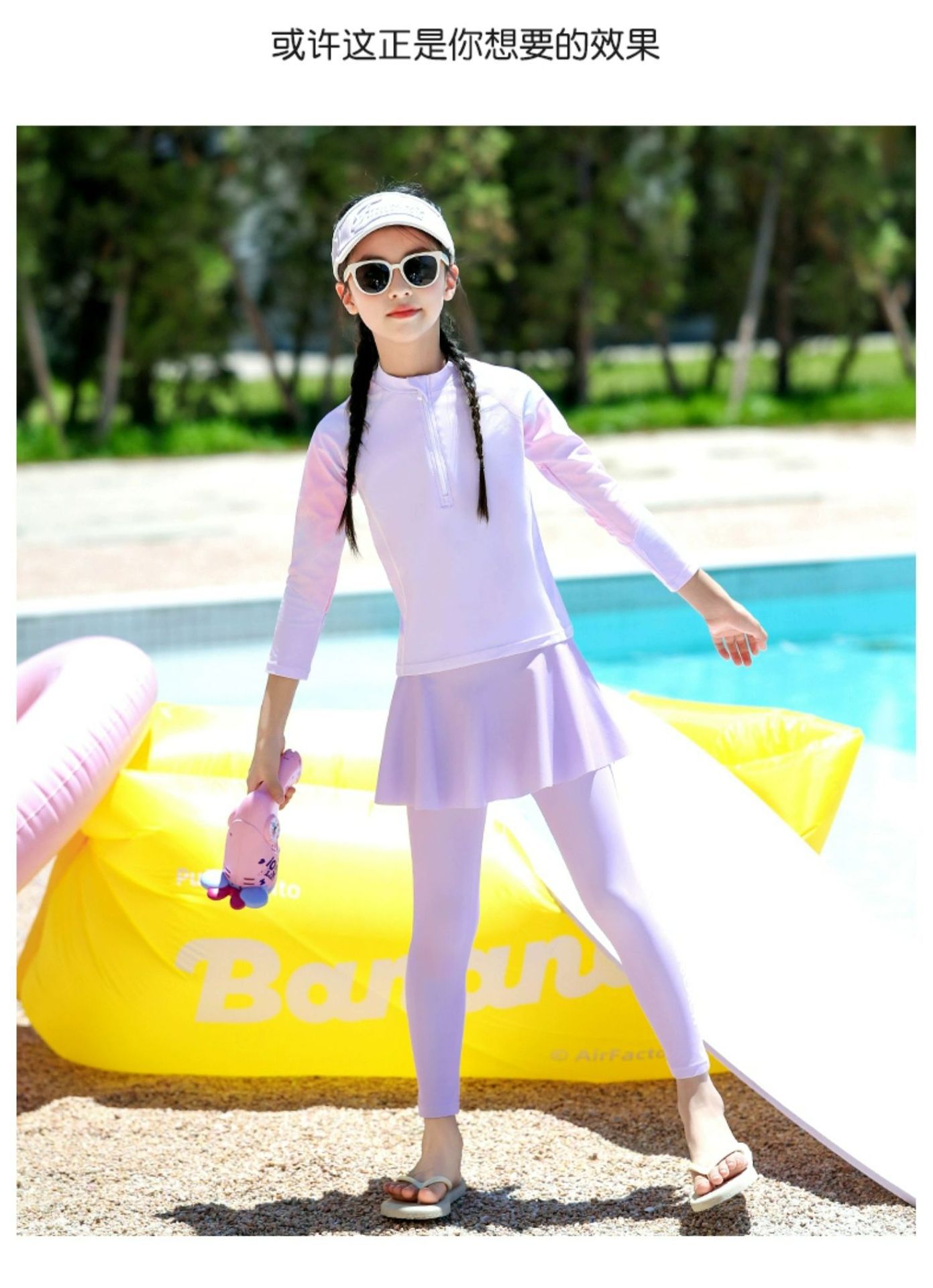 아동 수영복 소녀 스플릿 긴팔 바지 자외선 차단 수영복 2025 새로운 중대형 어린이 소녀 온천 슈트