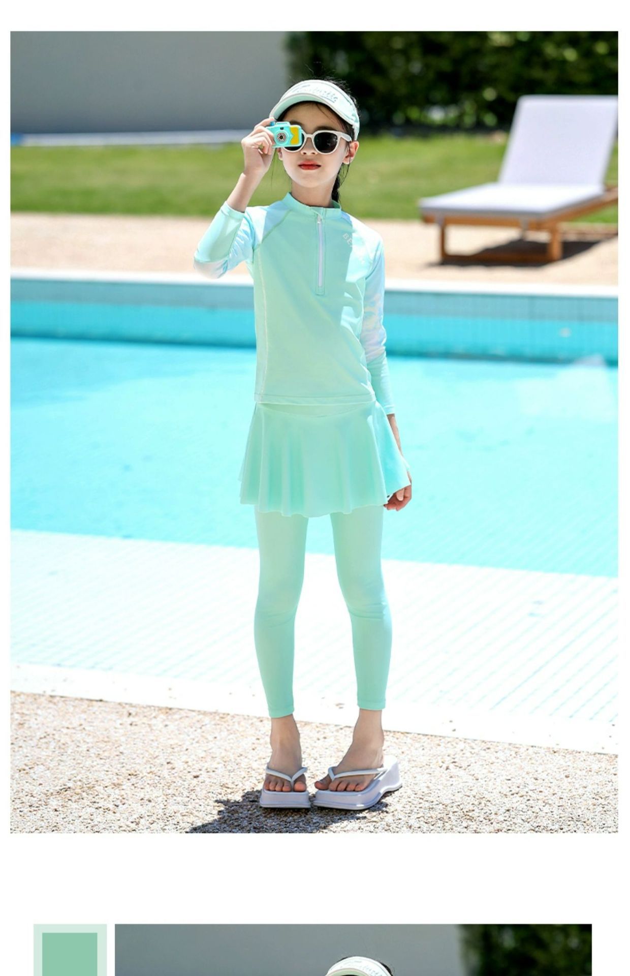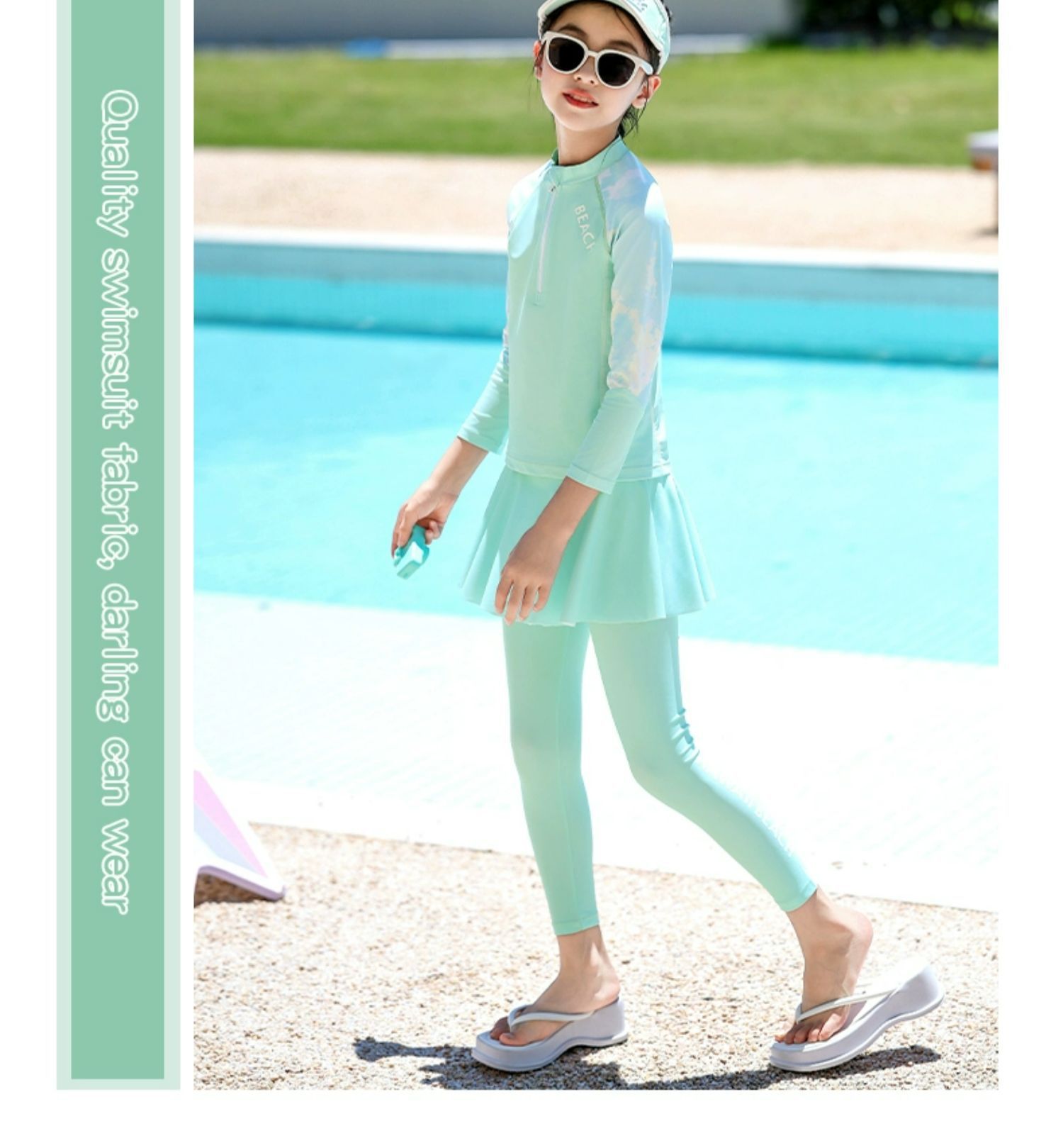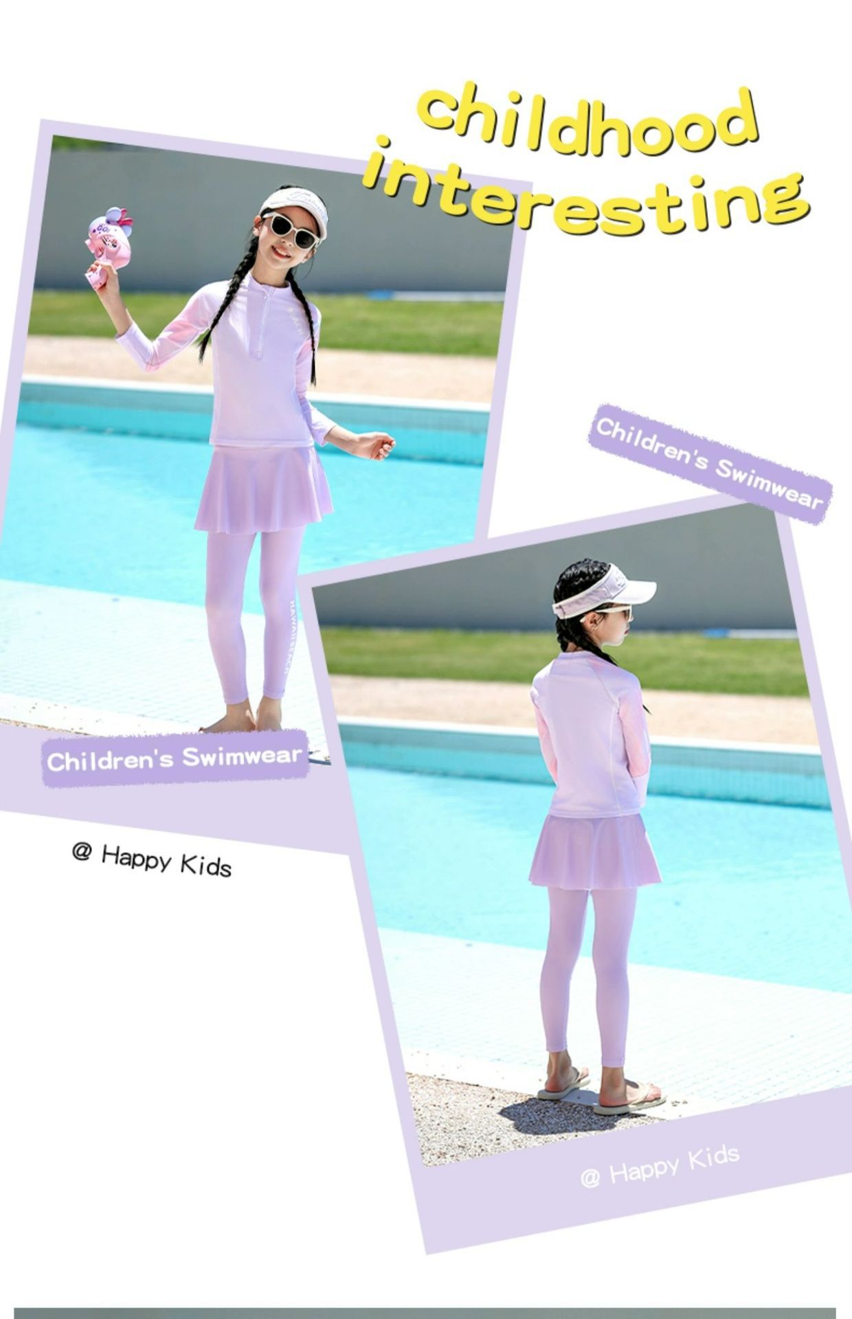 아동 수영복 소녀 스플릿 긴팔 바지 자외선 차단 수영복 2025 새로운 중대형 어린이 소녀 온천 슈트
