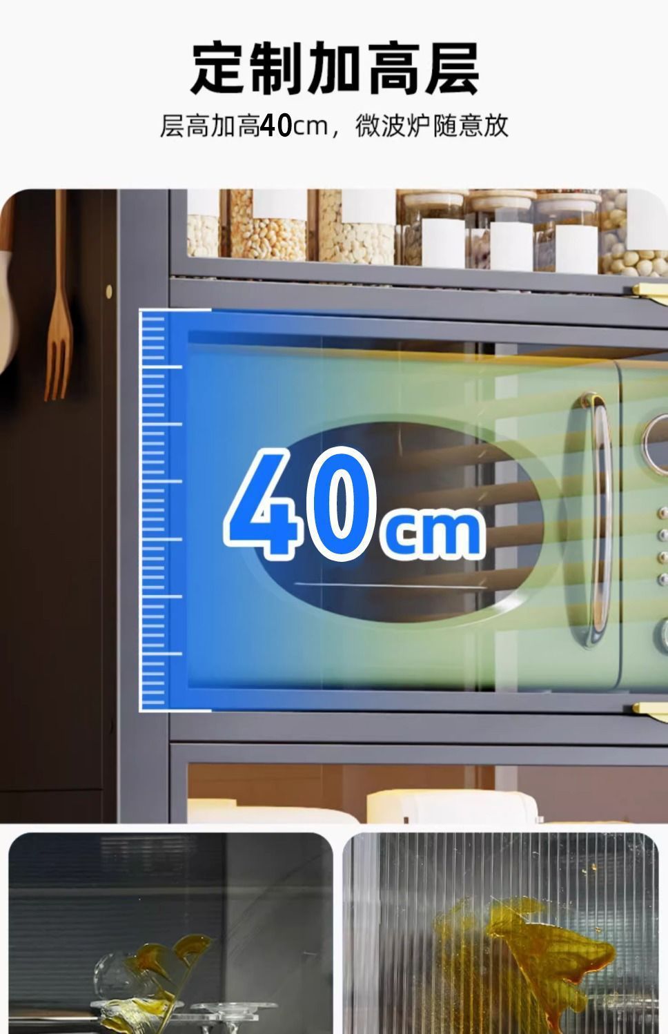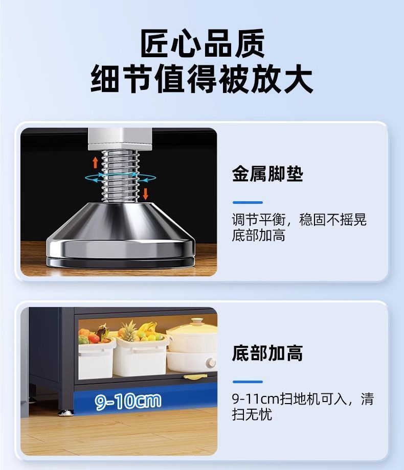 탄소강 방진 주방 수납 선반 거실 식탁 바닥 다층 수납 캐비닛 가정용 주방 용품 냄비 및 그릇 수납 캐비닛