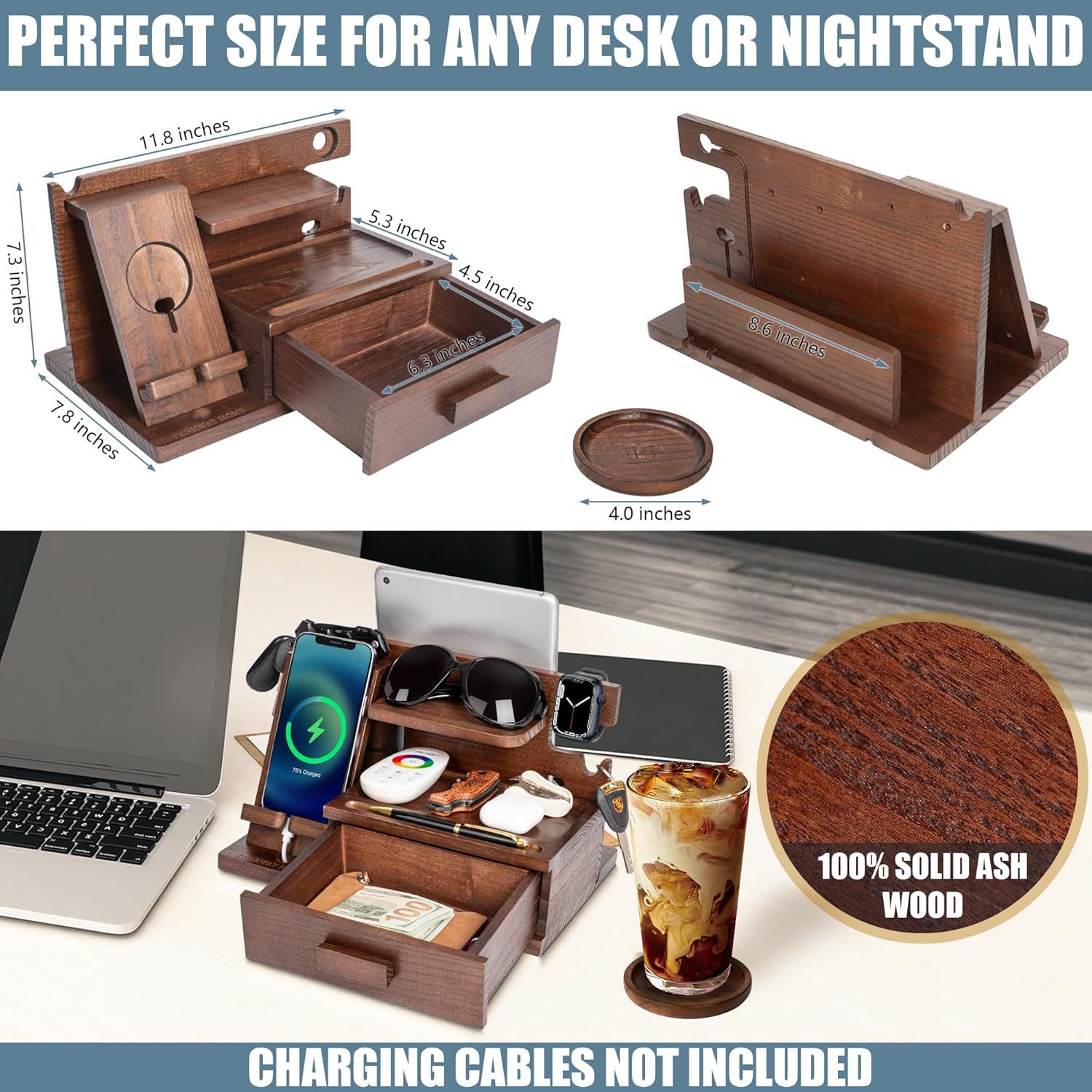 단단한 나무 휴대 전화 서랍 홈 거실 데스크탑 키 안경 보관함 침실 침대 옆 테이블 휴대 전화 홀더스토어 가기