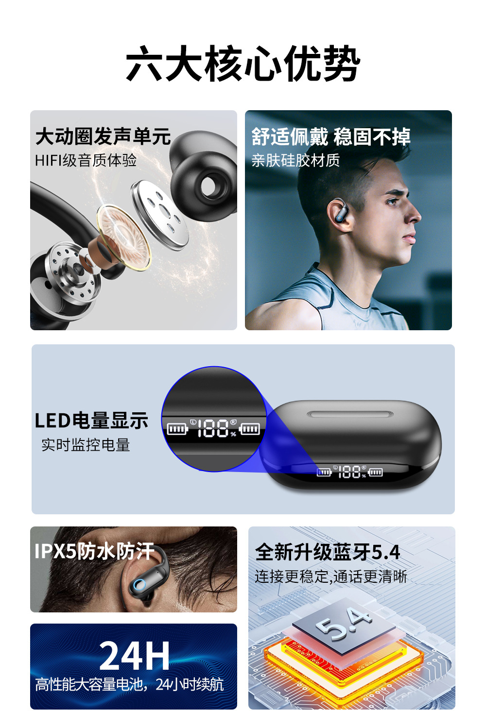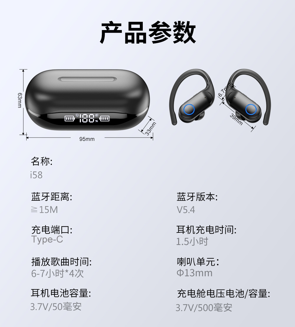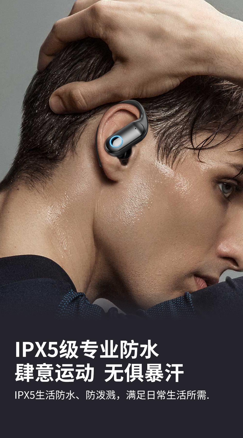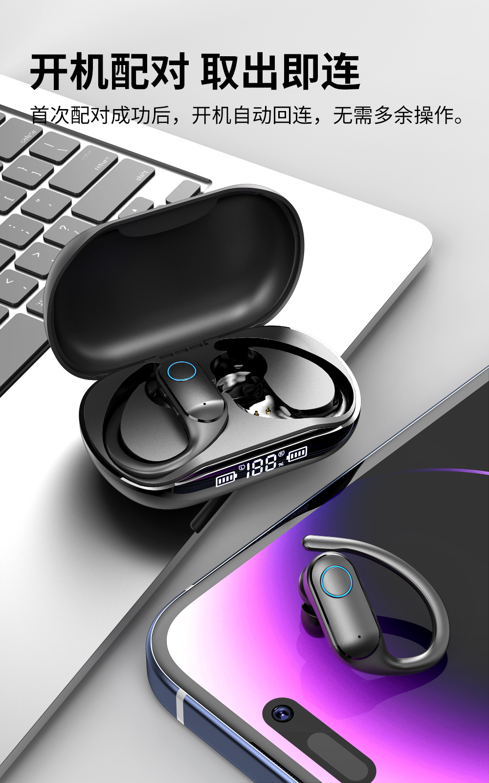 국경 맞춤형 OEM 대외 무역 지능형 소음 감소 무선 블루투스 헤드셋 소음 감소 스포츠 방수 귀 매달려 긴 내구성