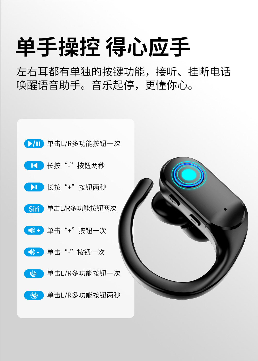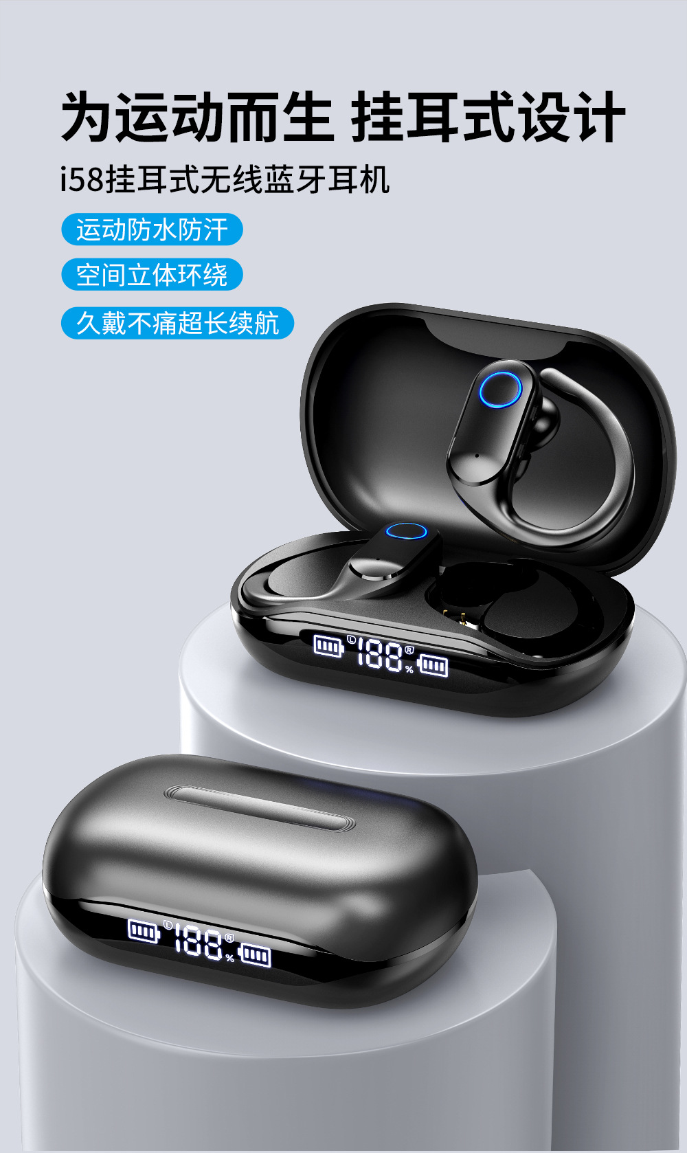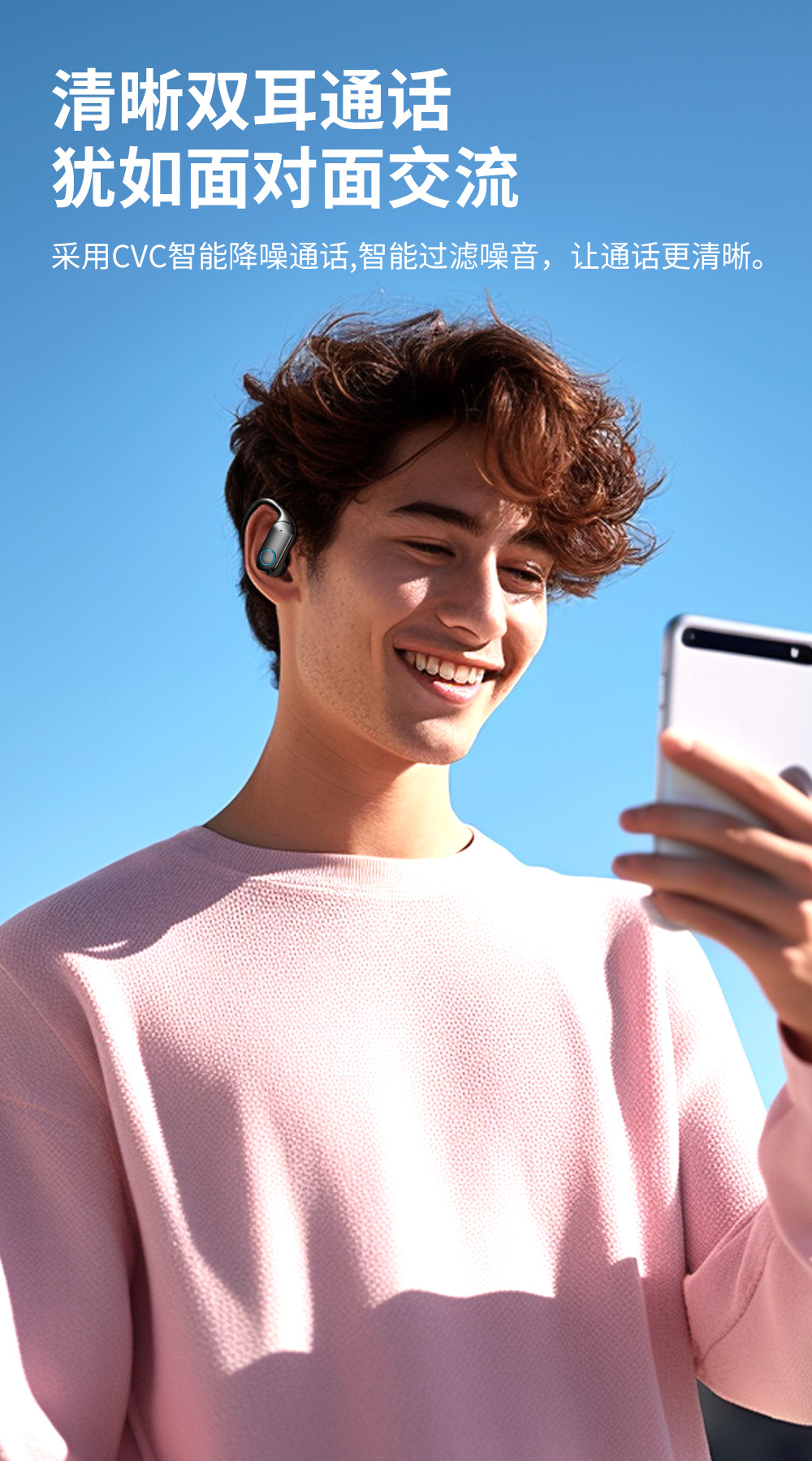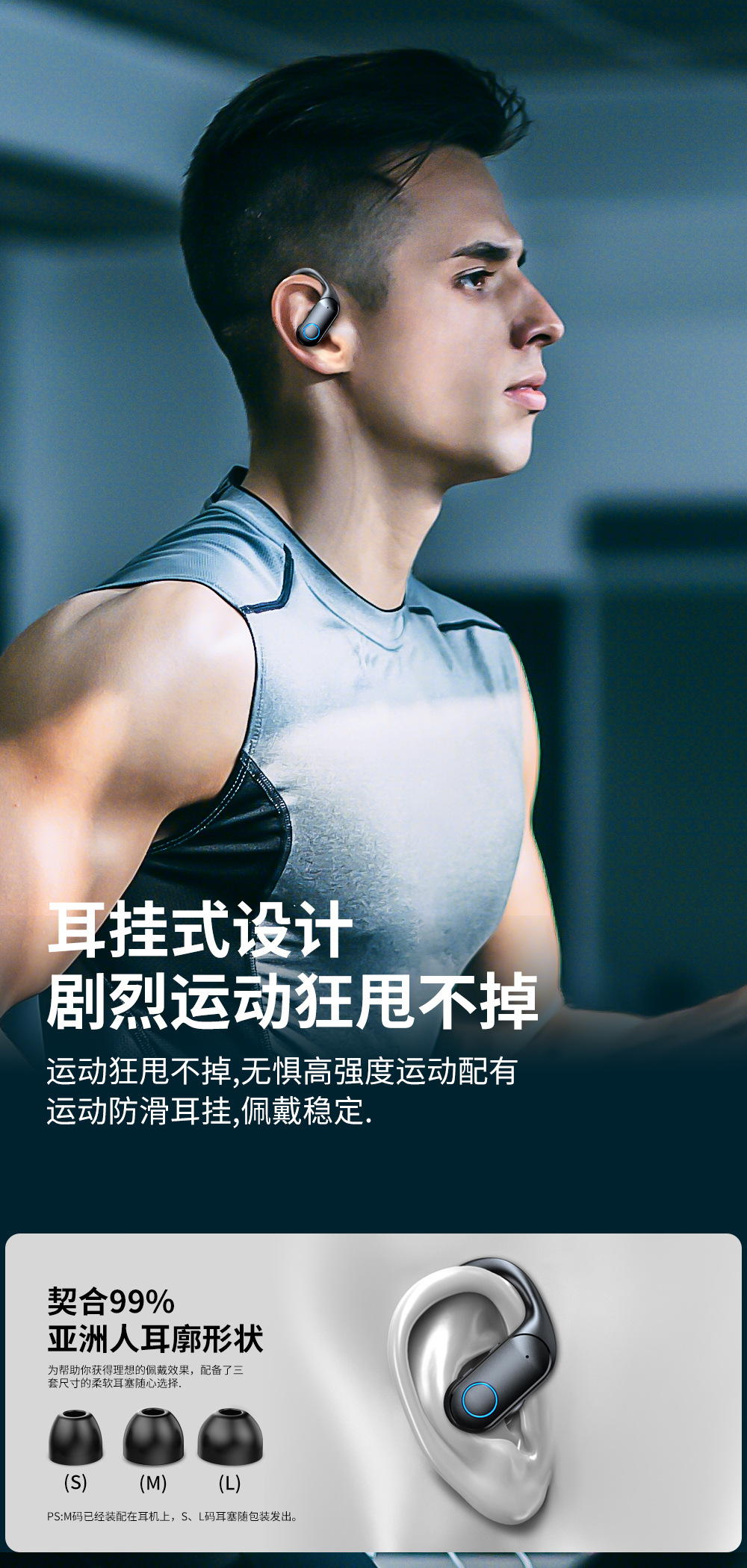 국경 맞춤형 OEM 대외 무역 지능형 소음 감소 무선 블루투스 헤드셋 소음 감소 스포츠 방수 귀 매달려 긴 내구성