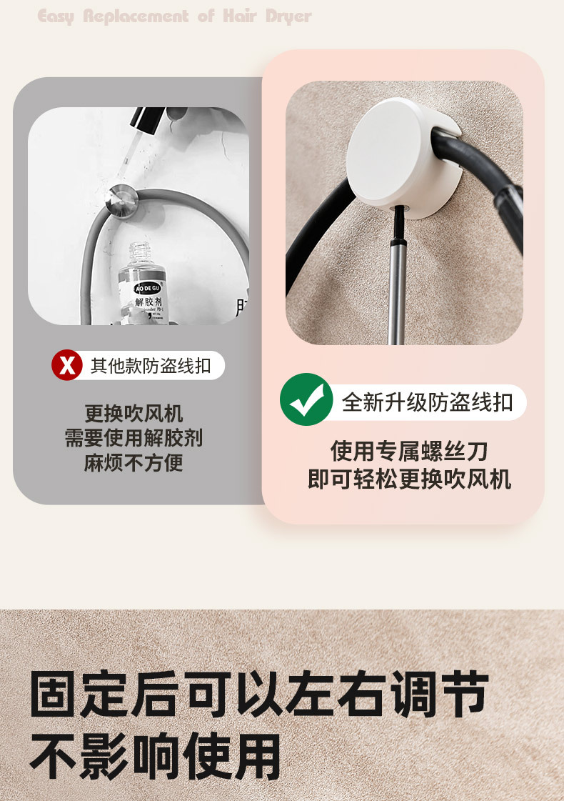 헤어드라이어 케이블 고정 버클, 도난 방지 잠금 장치, 전원 코드 고정 버클, B&B, 호텔 헤어드라이어 도난 방지 케이블 버클, 호텔용스토어 가기