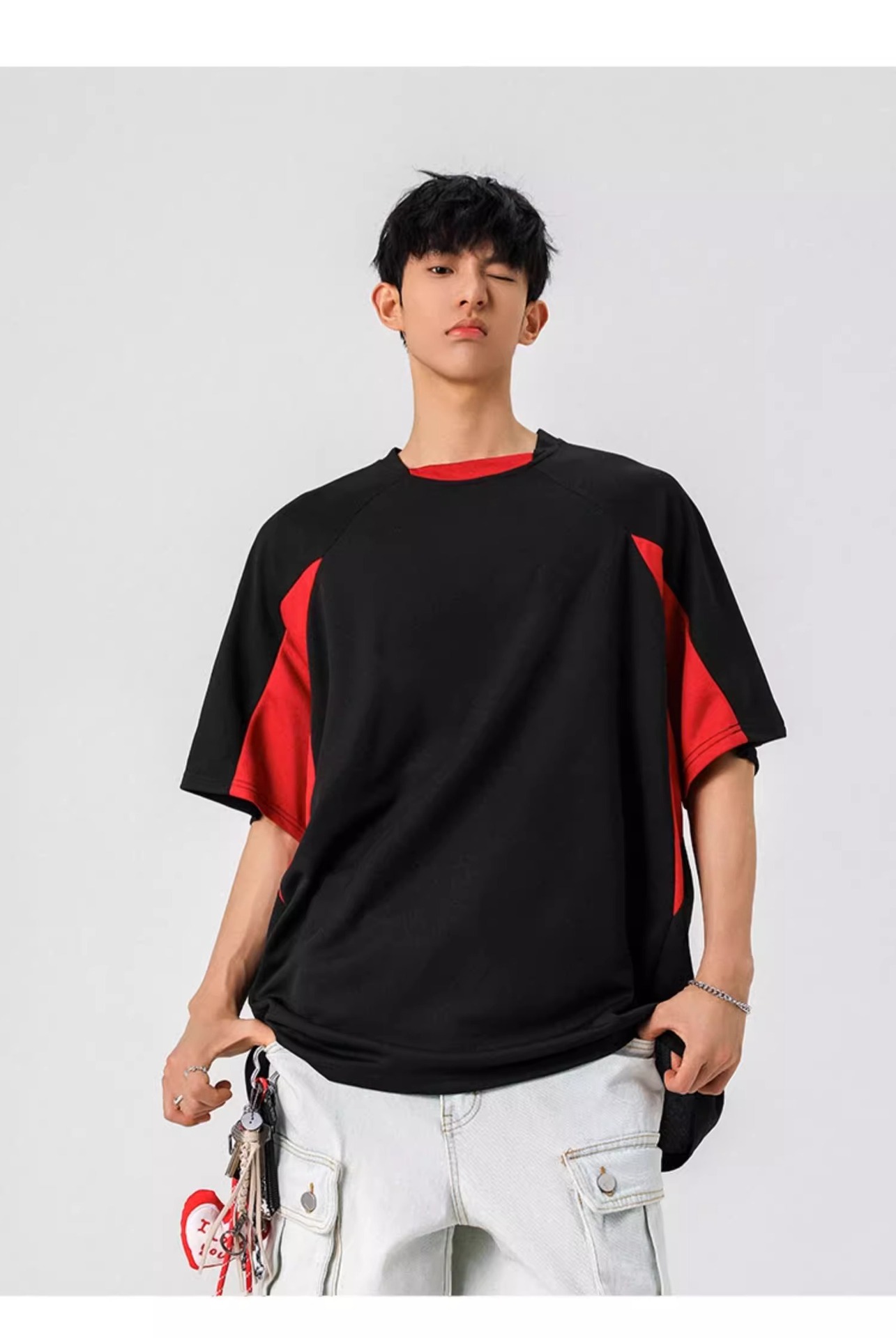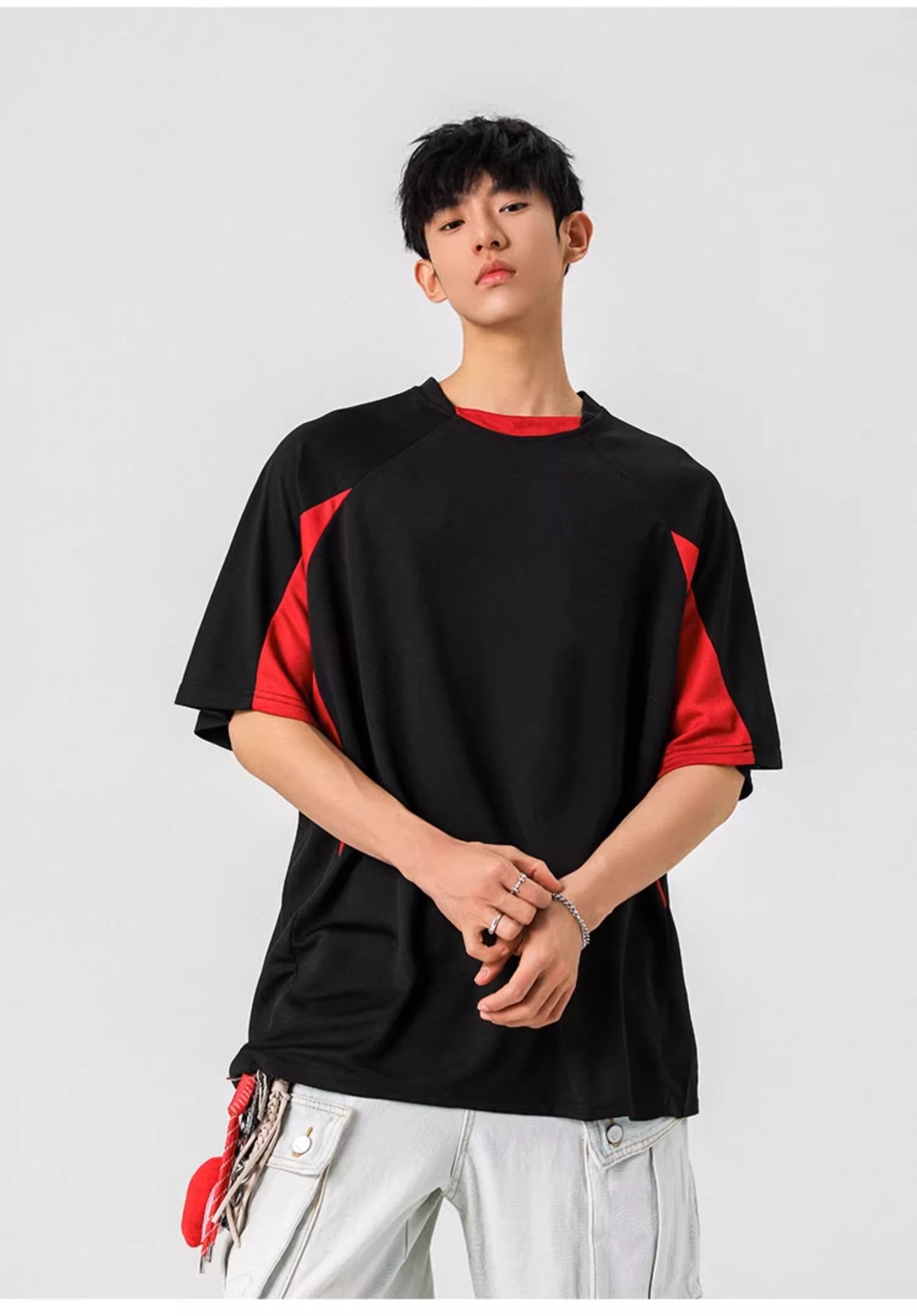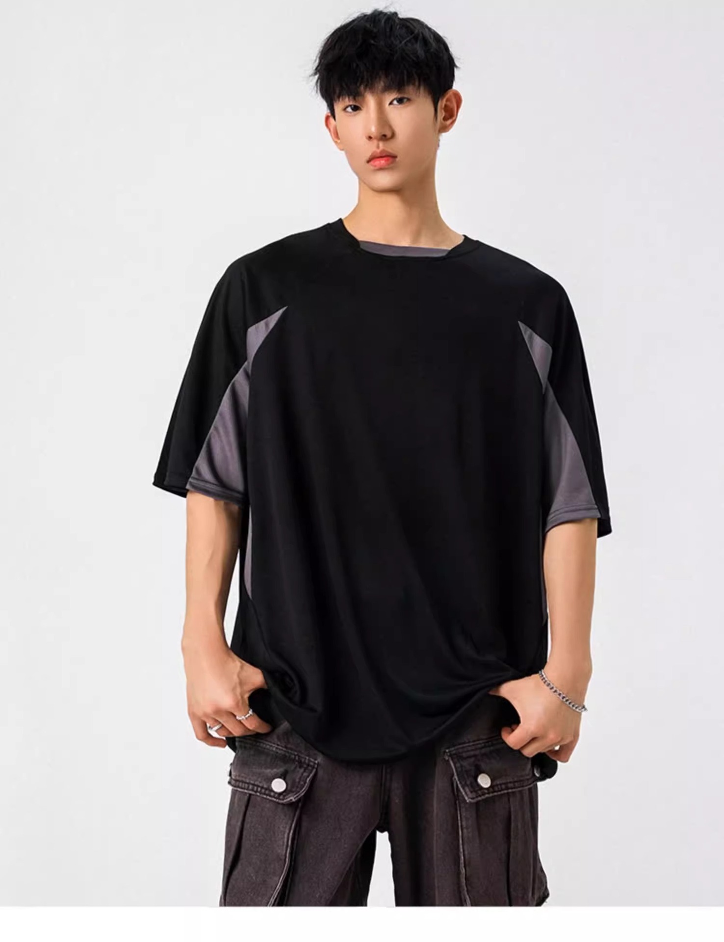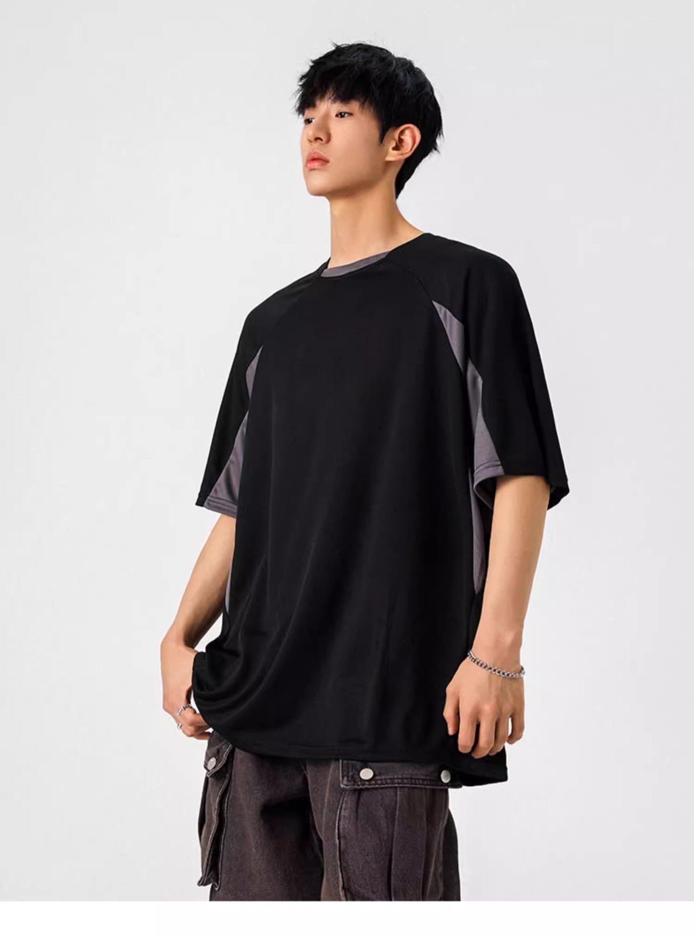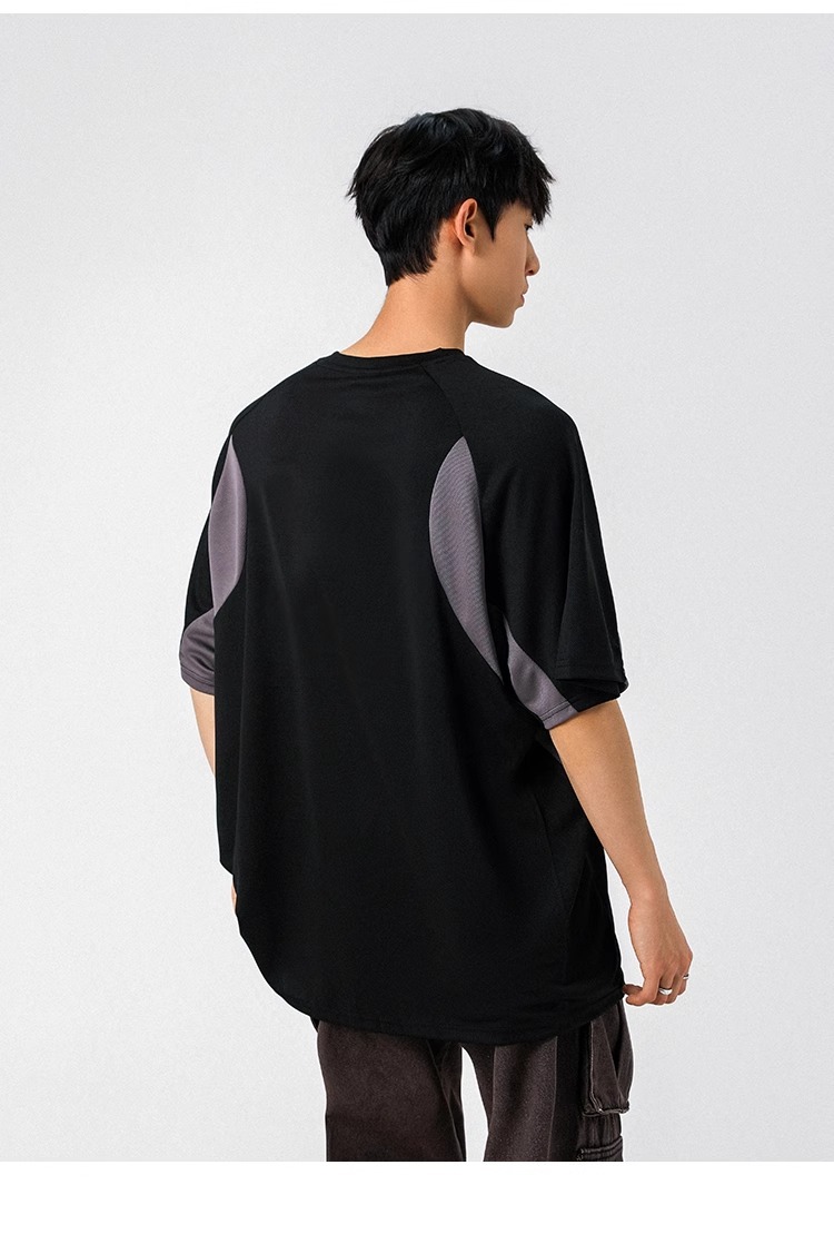 NASA 캐주얼 여름 티셔츠 새로운 아메리칸 스타일 레트로 스포츠 빠른 건조 반팔 남성 티셔츠 느슨한 둥근 목 반소매 대비 색상스토어 가기