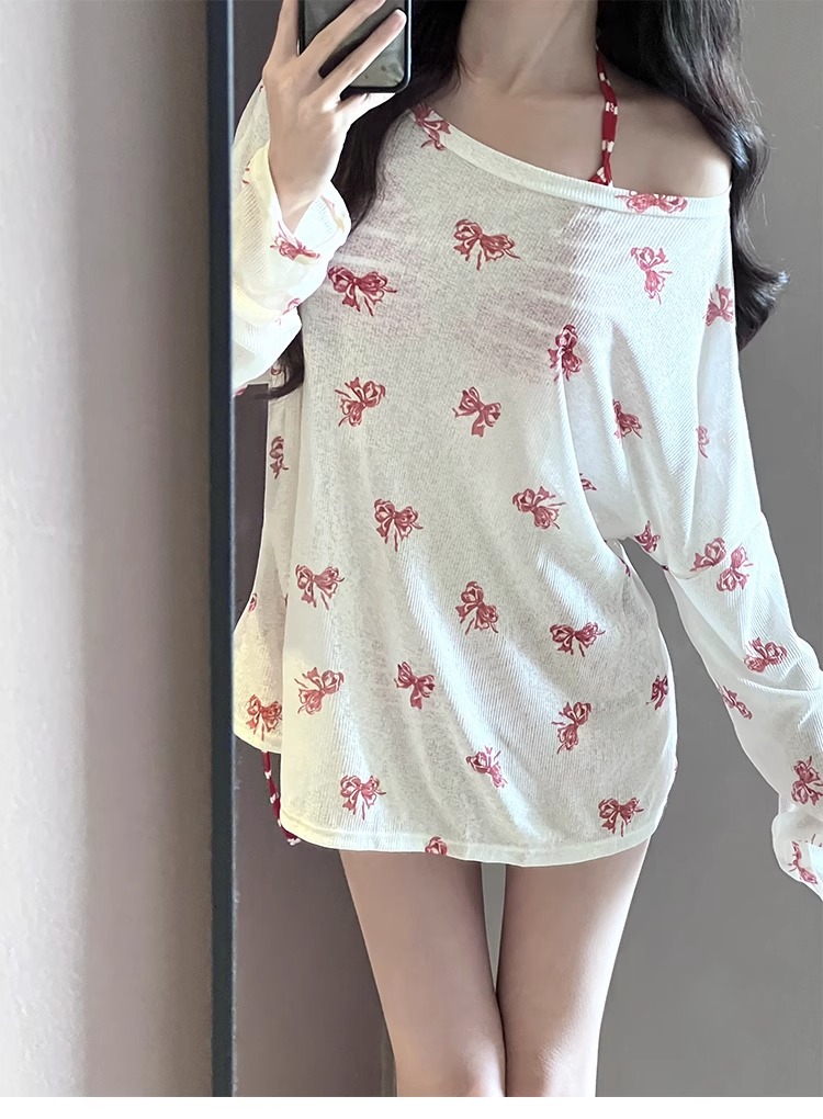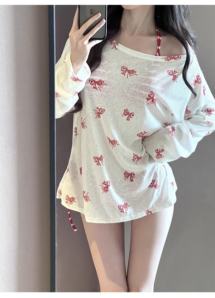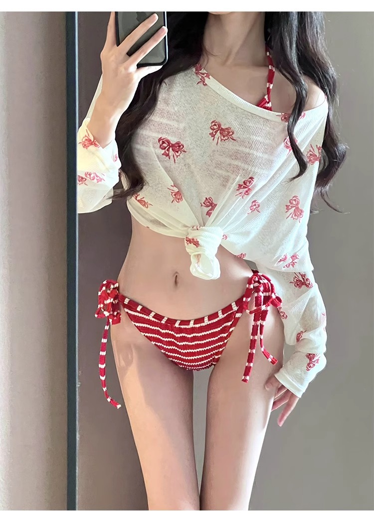 새로운 온천 휴가 수영복 여성용 비키니 3 피스 세트 튜브 탑 교수형 목 섹시한 온천 휴가 수영복