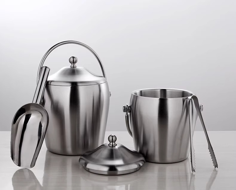 바 바텐더 더블 레이어 스테인레스 스틸 절연 아이스 버킷 드럼 모양의 상업용 바 KTV 장비 아이스 버킷 샴페인 버킷
