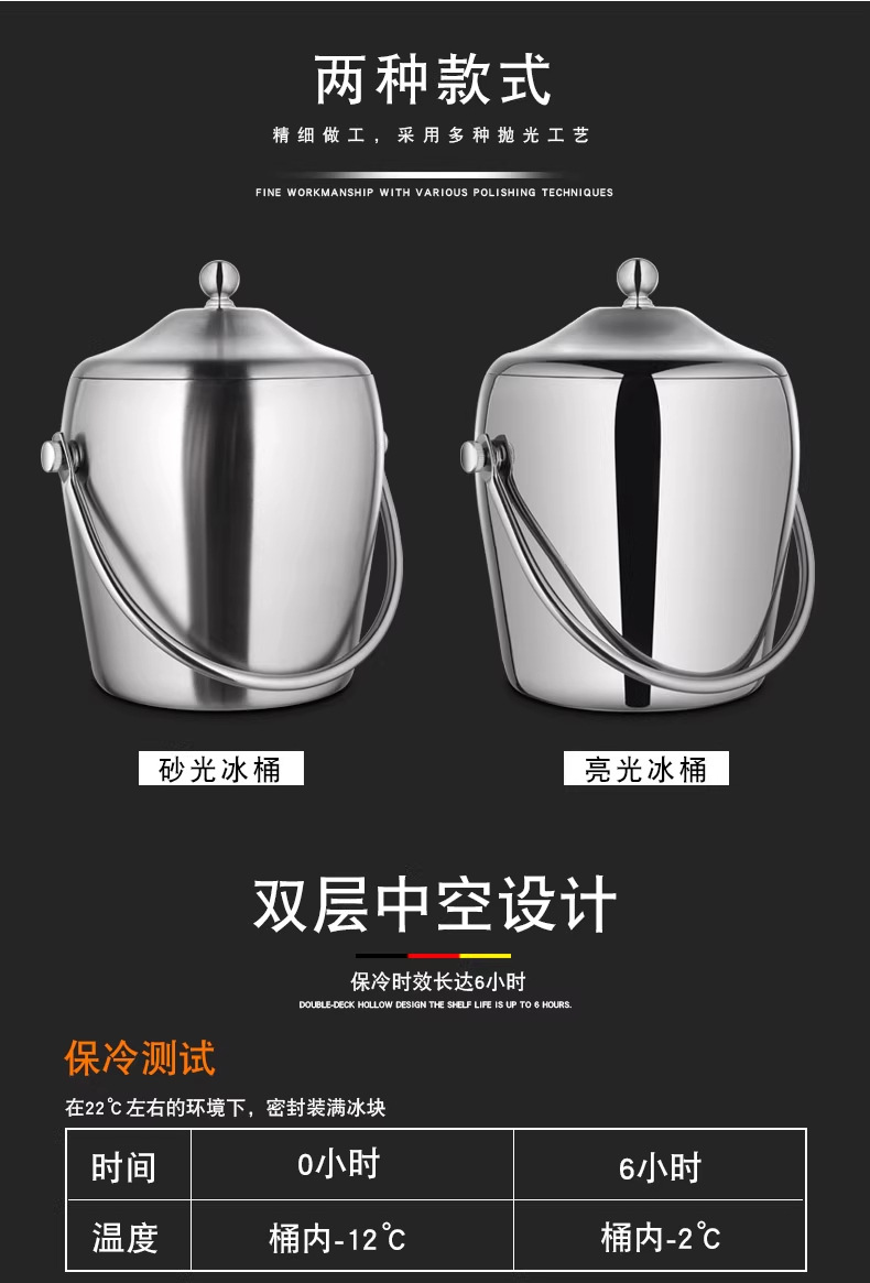 바 바텐더 더블 레이어 스테인레스 스틸 절연 아이스 버킷 드럼 모양의 상업용 바 KTV 장비 아이스 버킷 샴페인 버킷스토어 가기