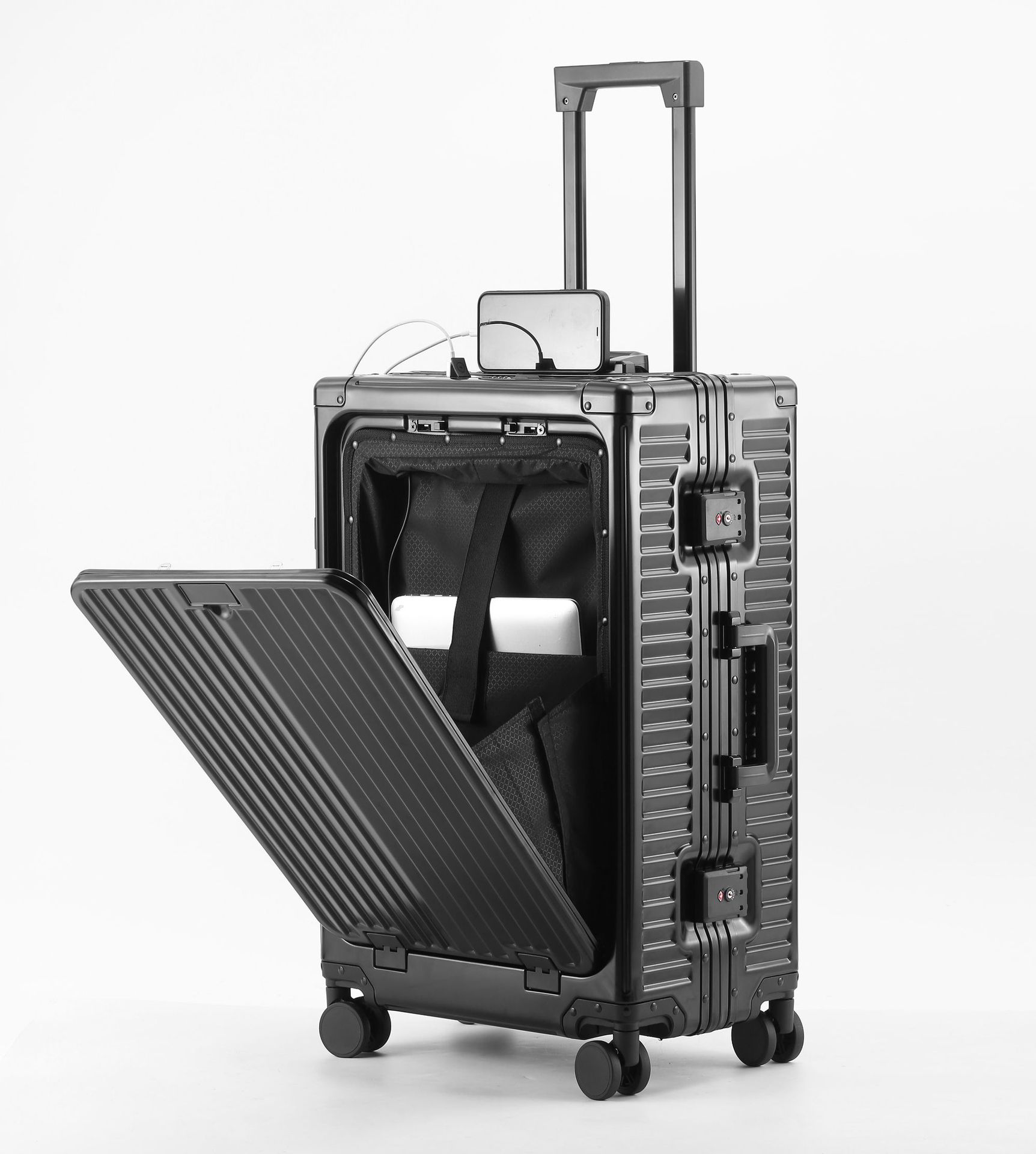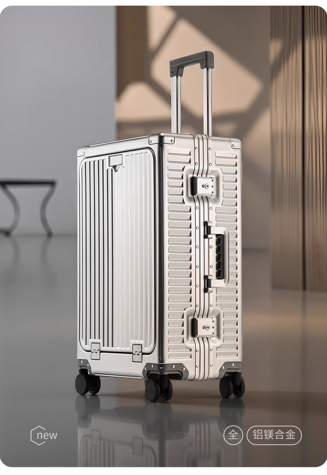 2025 새로운 다기능 전면 개방 모든 알루미늄 마그네슘 합금 수하물 케이스 20 인치 승객 탑승 여행 트롤리 케이스