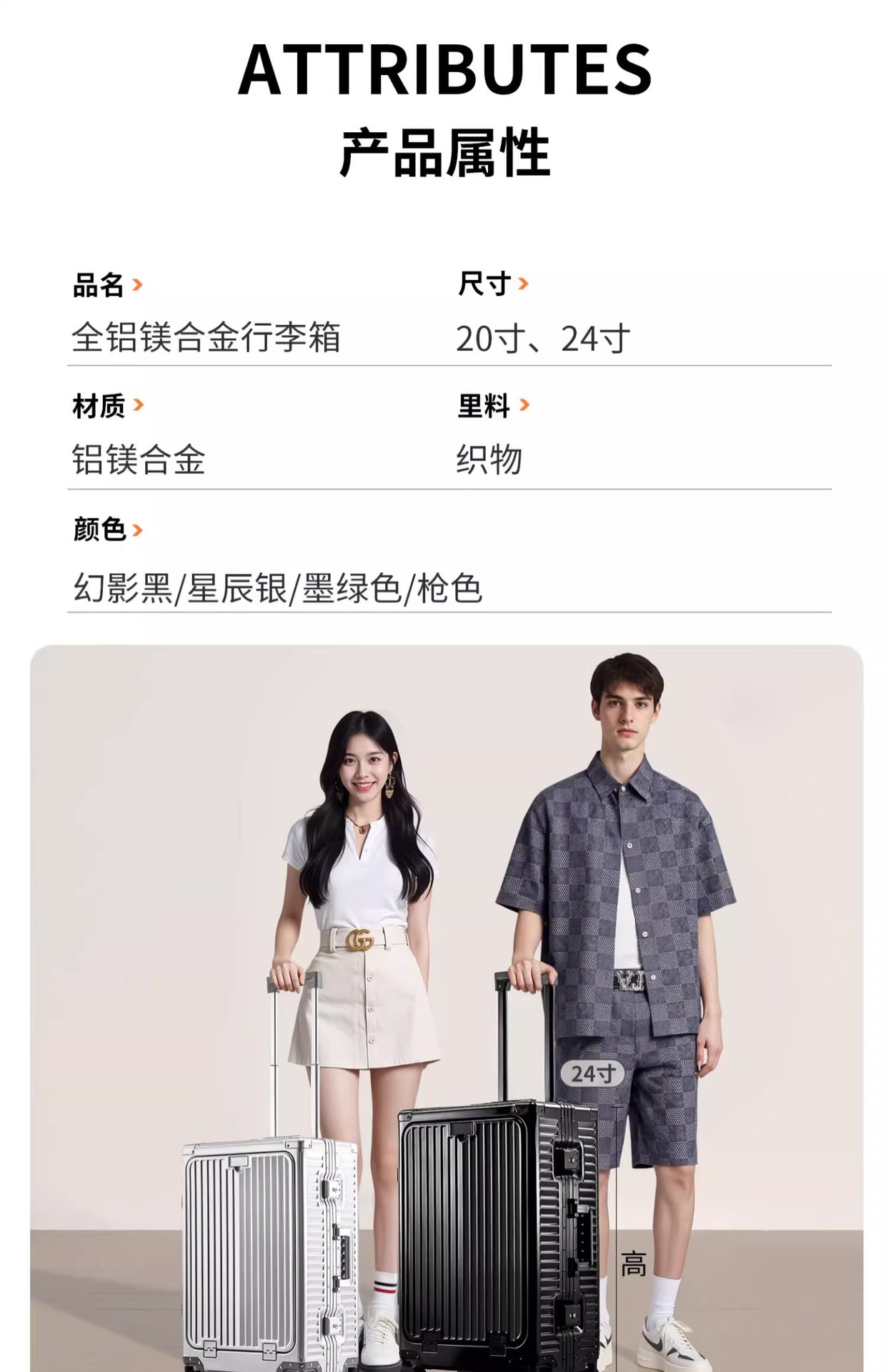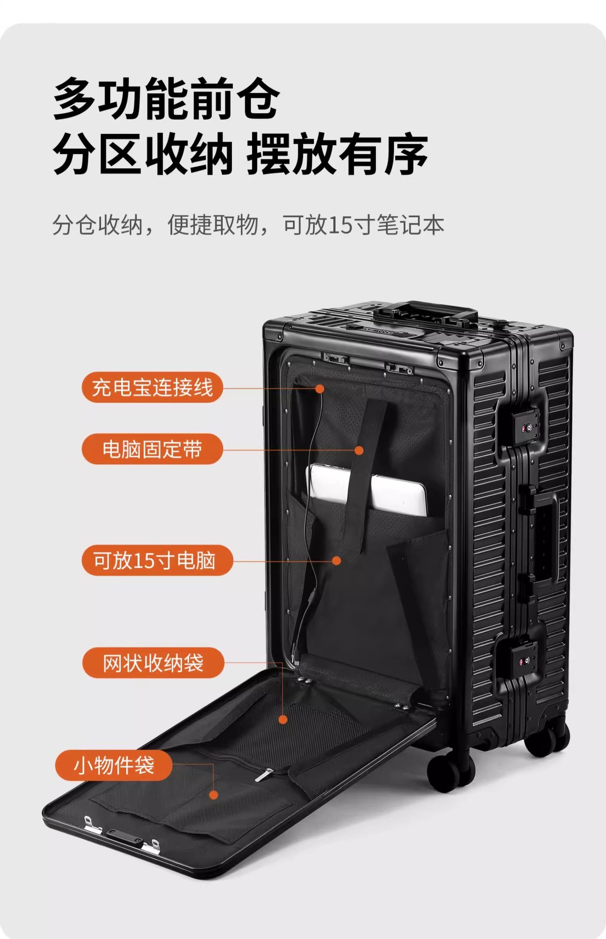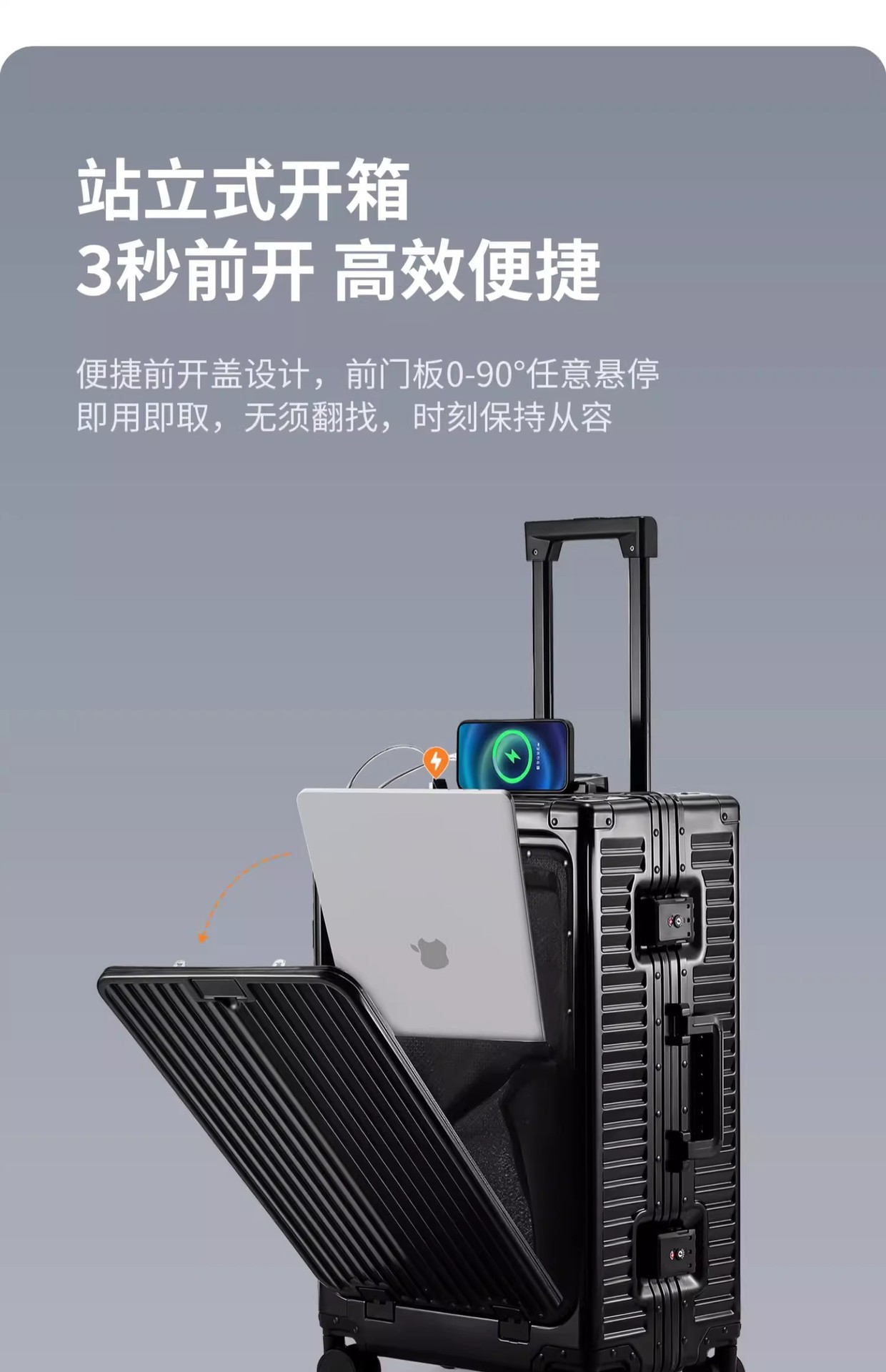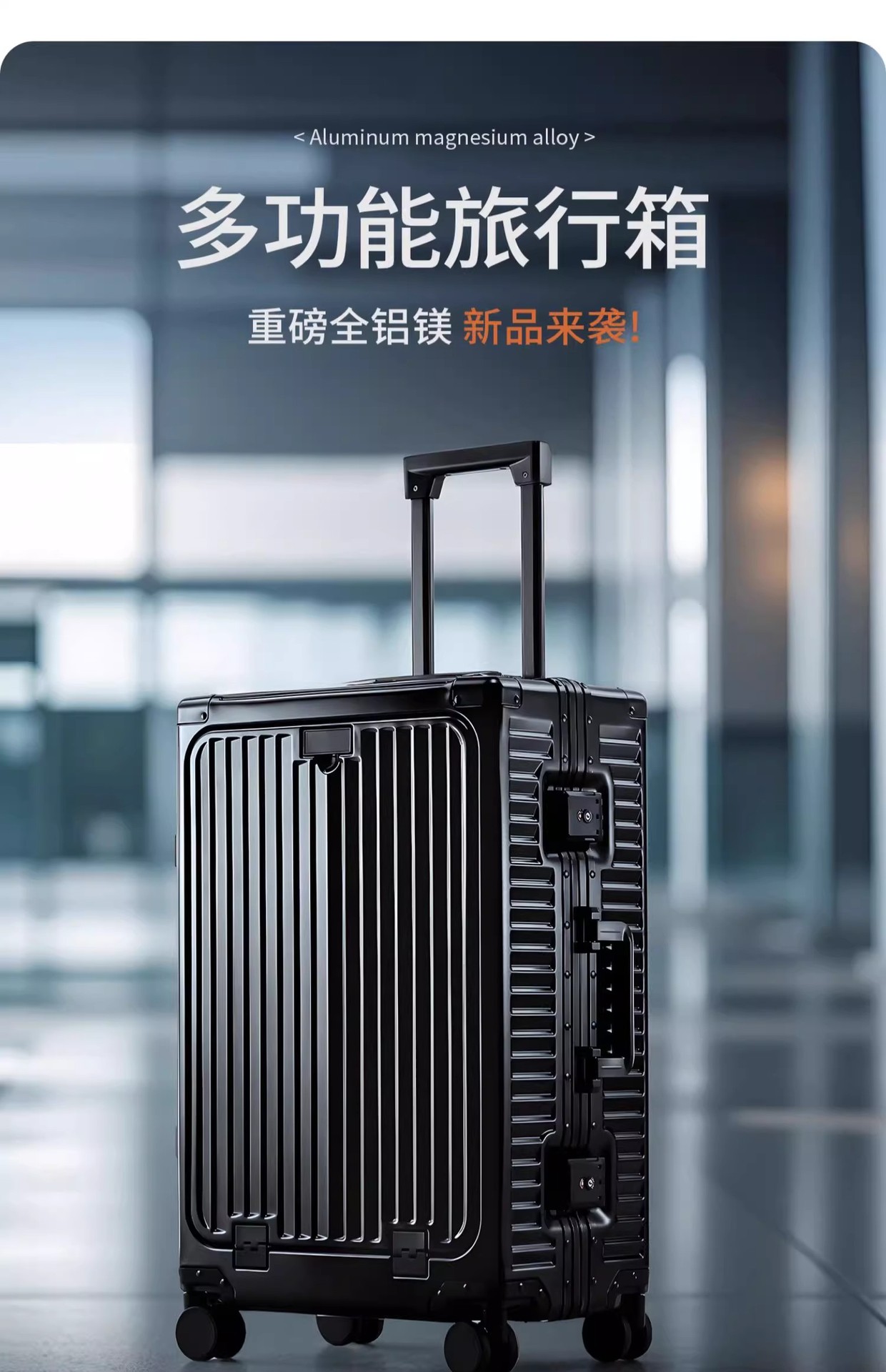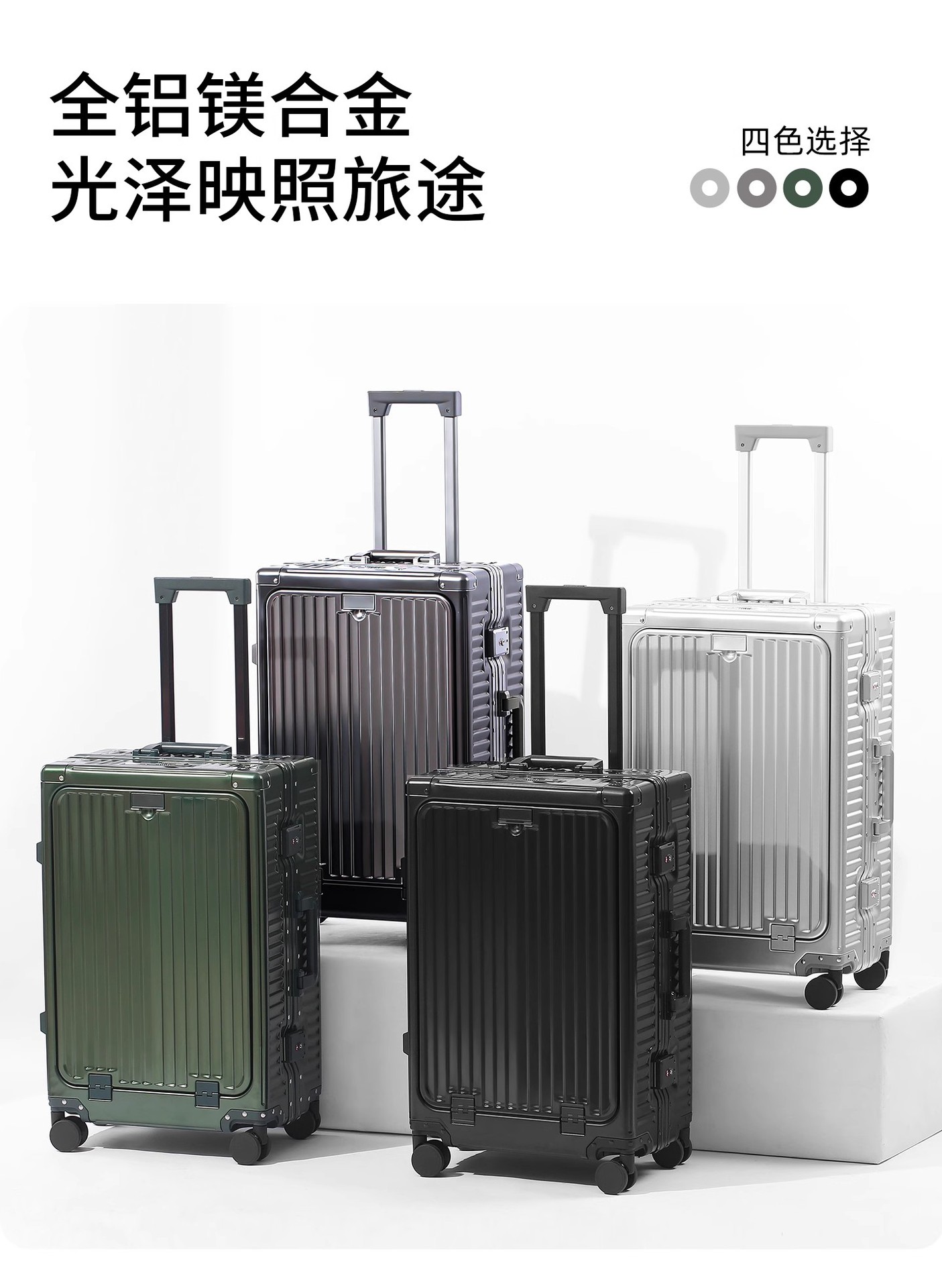 2025 새로운 다기능 전면 개방 모든 알루미늄 마그네슘 합금 수하물 케이스 20 인치 승객 탑승 여행 트롤리 케이스스토어 가기