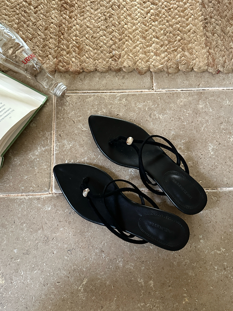French Niche 2025 Summer Pointed Toe Sandals 여자 새로운 올 매치 캐주얼 우아한 로우 힐 플립 플롭