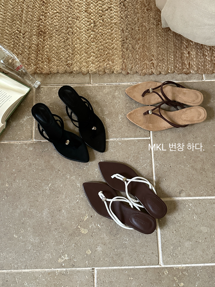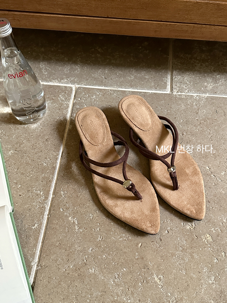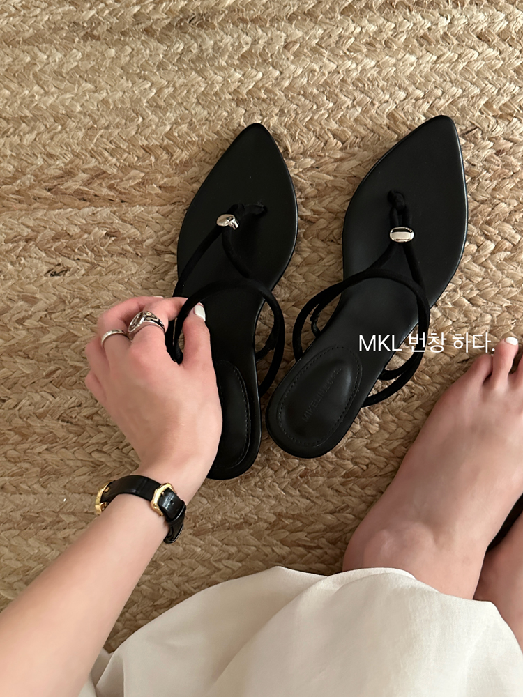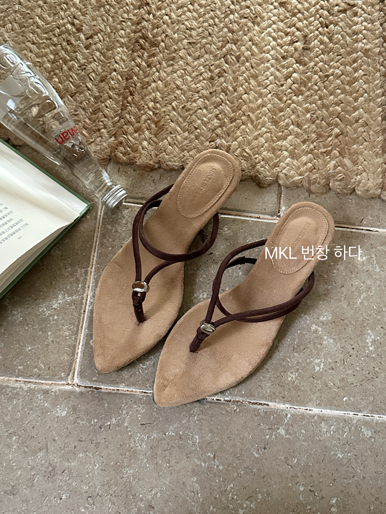 French Niche 2025 Summer Pointed Toe Sandals 여자 새로운 올 매치 캐주얼 우아한 로우 힐 플립 플롭스토어 가기