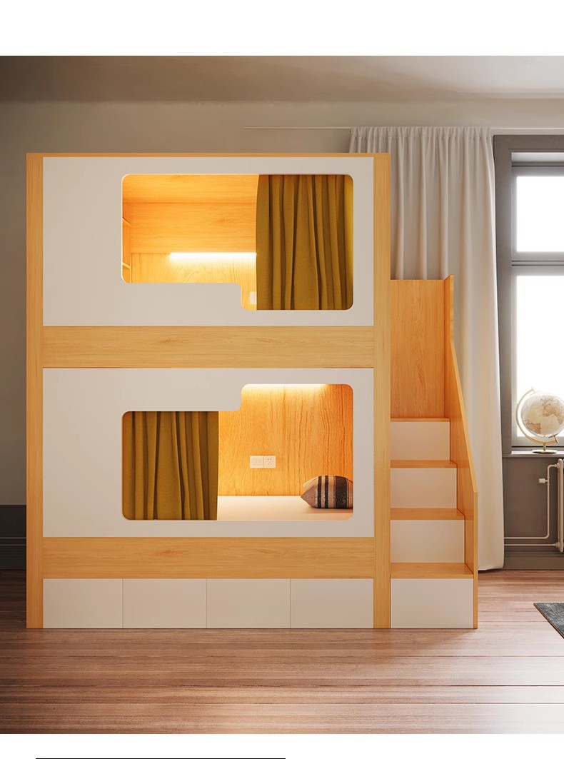 스페이스 캡슐 이층 침대, 청소년 하우스 아파트 침대, 직원 기숙사, 어린이 및 학생 원목 이층 침대