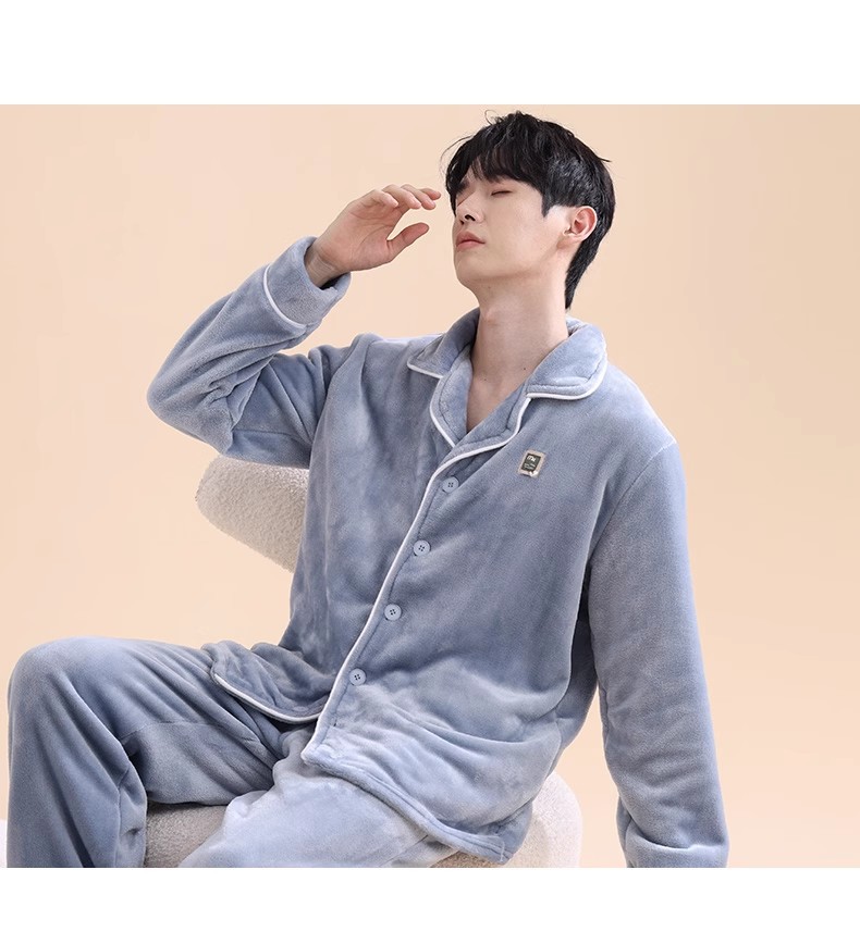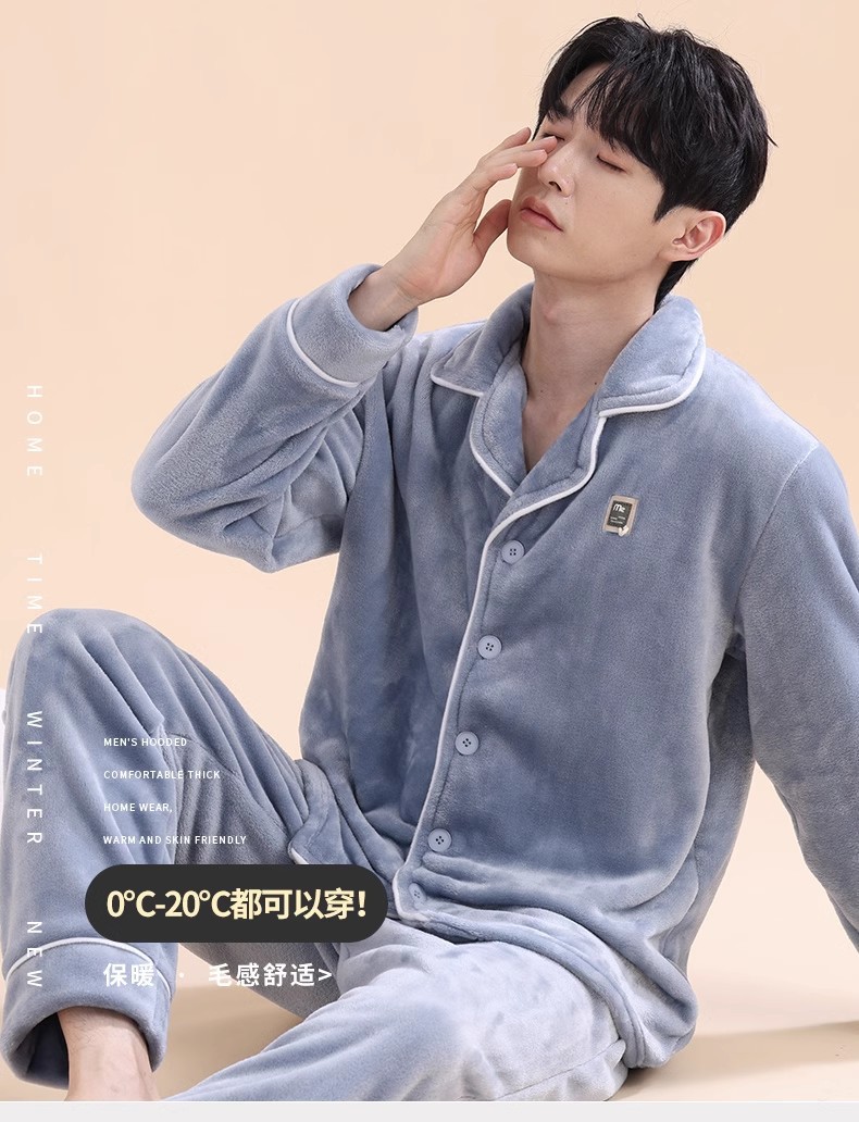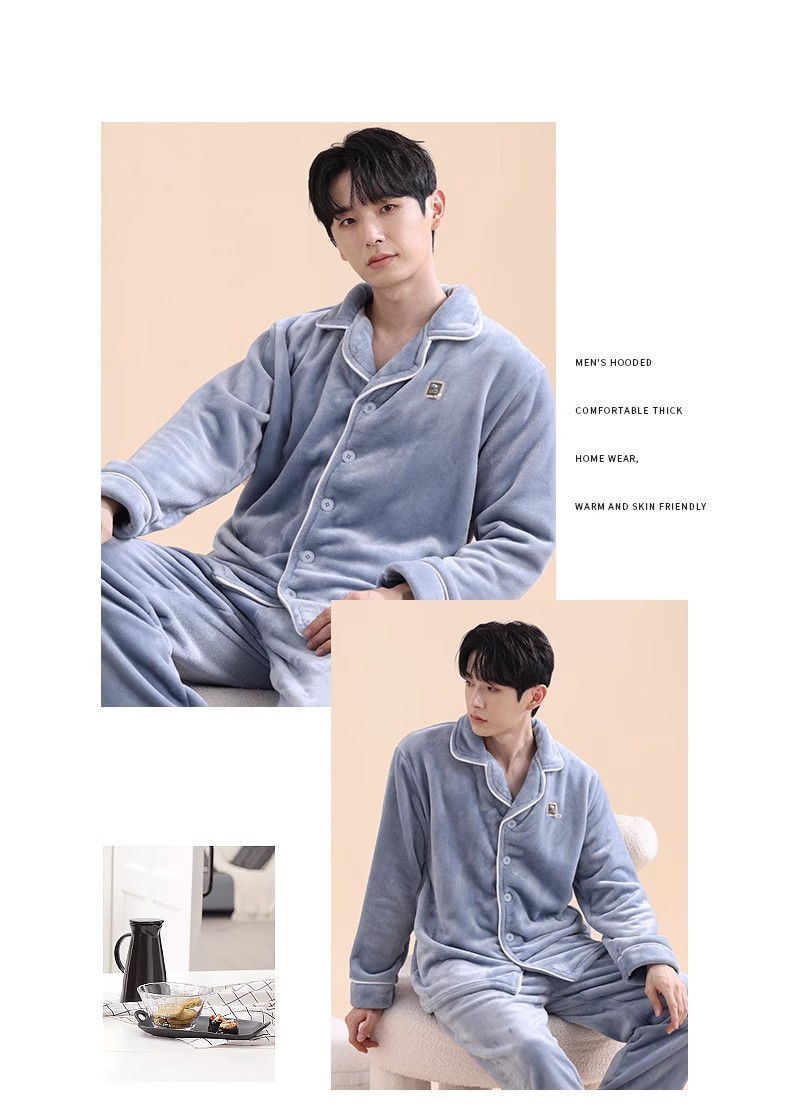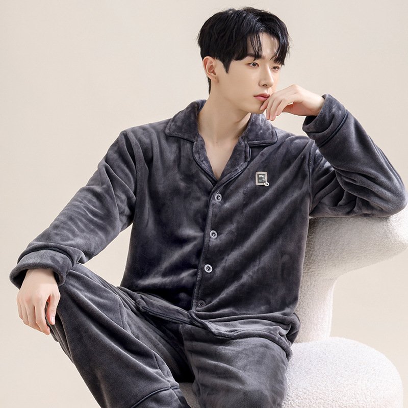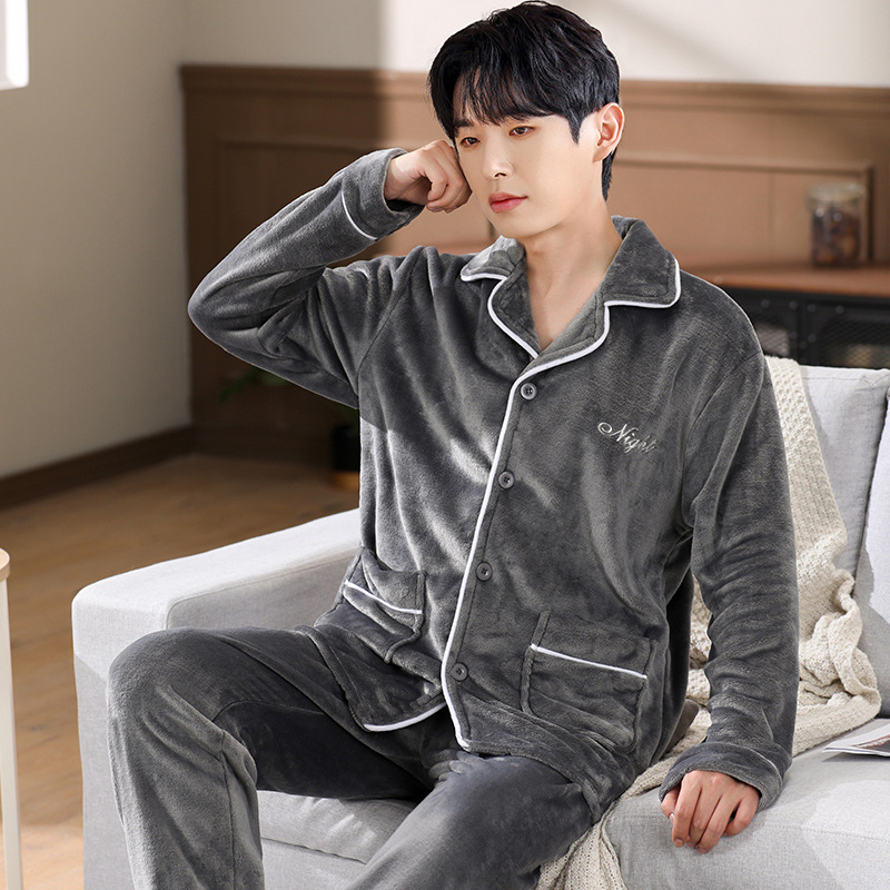 남성 잠옷 남성 겨울 새로운 두꺼운 플러스 벨벳 플란넬 홈웨어 산호 벨벳 따뜻한 가을 겨울 스타일스토어 가기