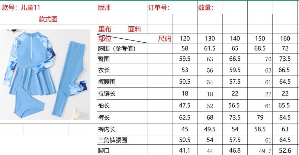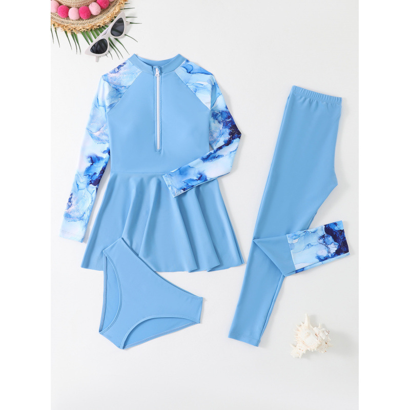 아마존 대외 무역 새로운 보수적 인 어린이 수영복 소녀 스플릿 긴팔 바지 중대형 어린이 수영복을위한 3 피스 세트