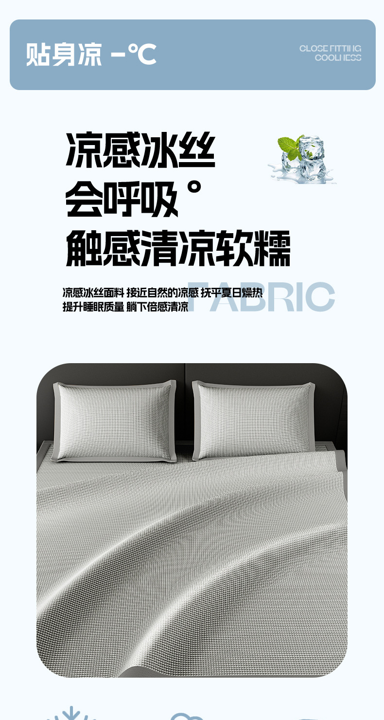 여름 수업 엄마와 유아 용 아이스 실크 매트 침대 모자 3 피스 세트 여름 하운스 투스 침대 시트 에어컨 소프트 매트 도매스토어 가기