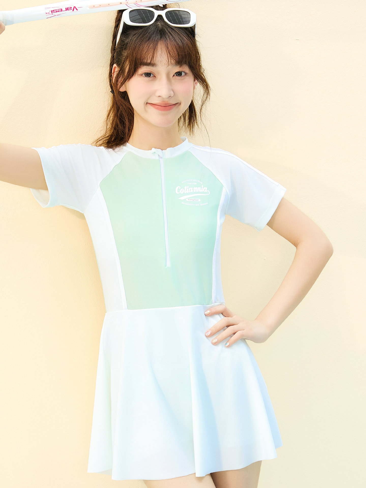 한국 스타일 원피스 여성 고급 스커트 수영복 여름 보수적 인 중학생 스포츠 속건성 자외선 차단 수영복 도매