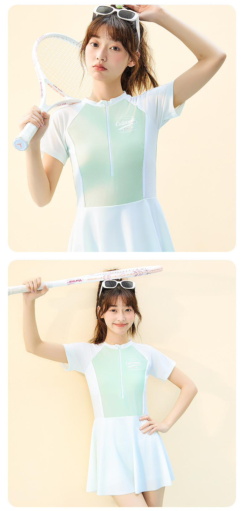 한국 스타일 원피스 여성 고급 스커트 수영복 여름 보수적 인 중학생 스포츠 속건성 자외선 차단 수영복 도매스토어 가기