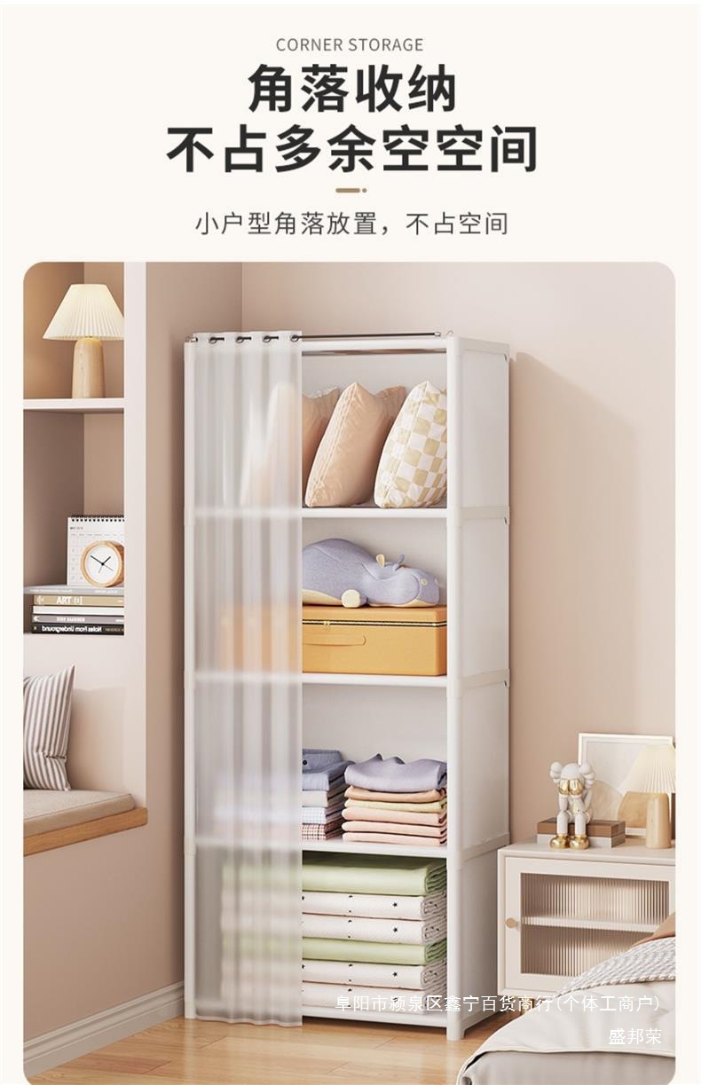 간단한 옷장 임대 침실 바닥 스토리지 캐비닛 가정용 방진 커튼 강력하고 내구성이 뛰어난 스토리지 코트 랙