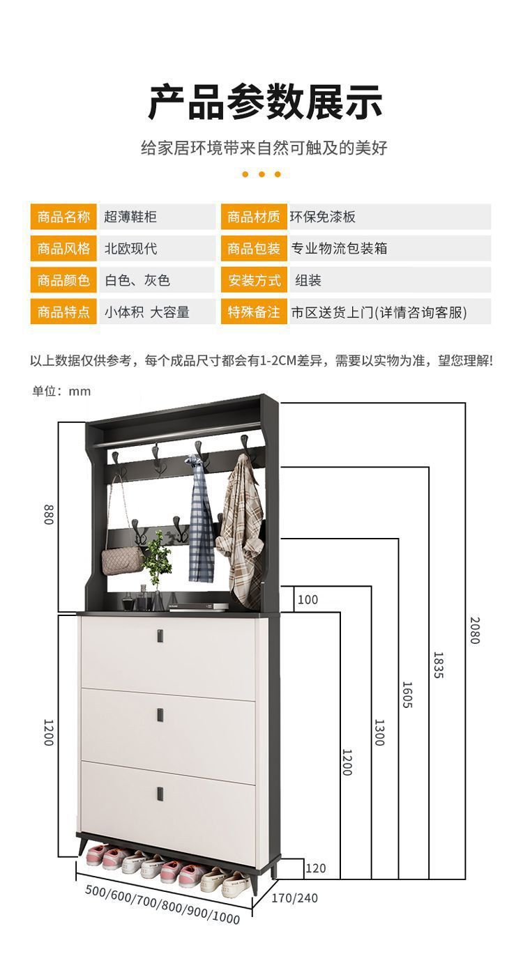 • [길이 80, 두께 24, 높이 208] 신발은 바닥에 놓을 수 있습니다.