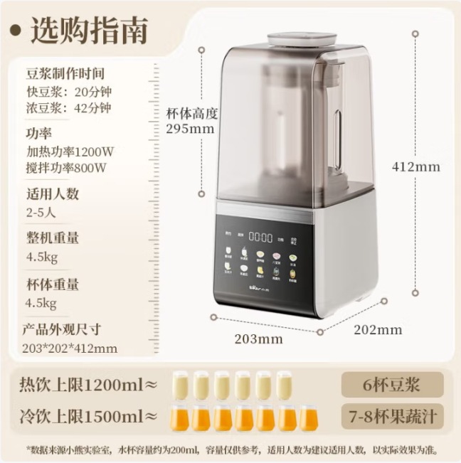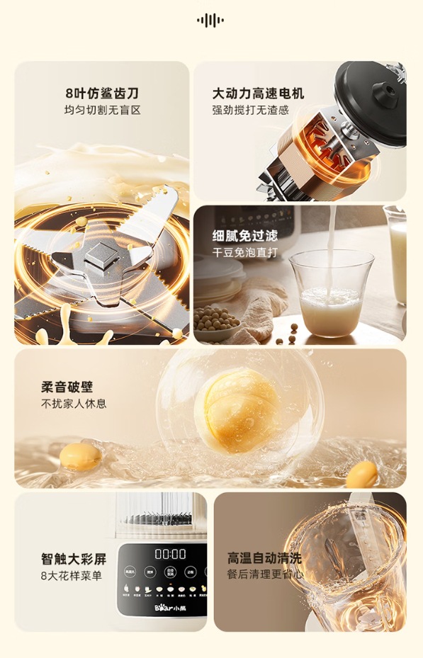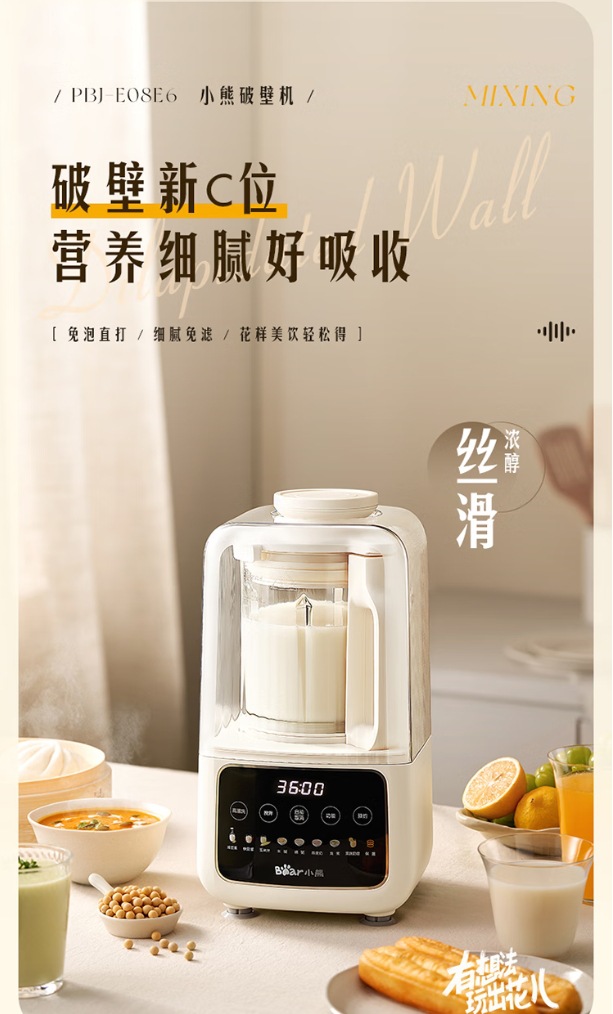 곰 벽 파괴 기계 가정용 완전 자동 두유 기계 잔류물없는 가열 다기능 쌀 시리얼 요리 PBJ-E08E6스토어 가기