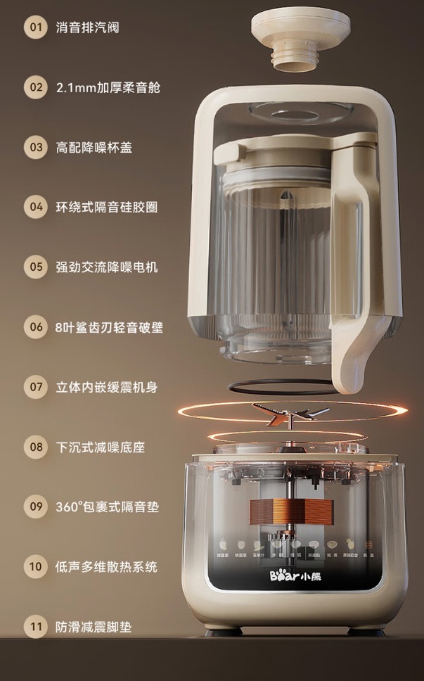 곰 벽 파괴 기계 가정용 완전 자동 두유 기계 잔류물없는 가열 다기능 쌀 시리얼 요리 PBJ-E08E6
