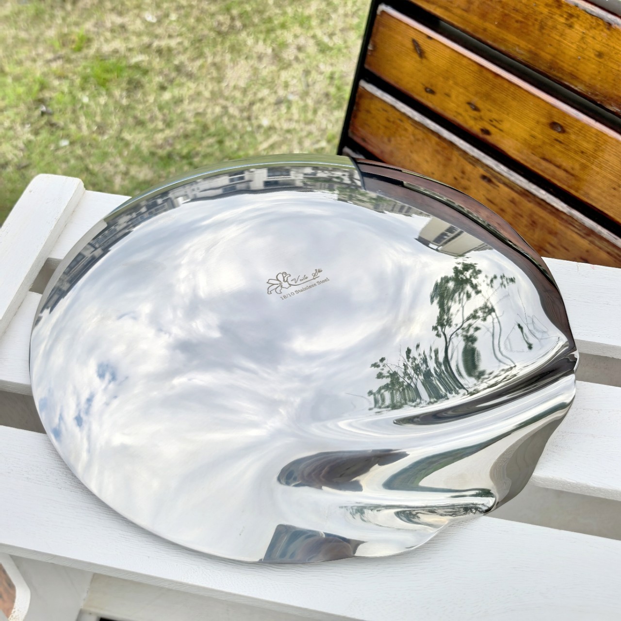 수출 품질 두껍게 304 스테인레스 스틸 과일 플레이트 페이스트리 요리 과일 플레이트 원피스 패션 장식품