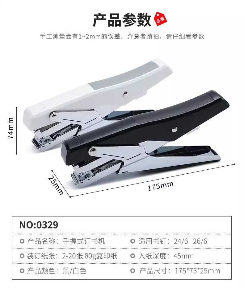 델리 0329 스테이플러(화이트)(블랙) 휴대용 다기능 파일 스테이플러 개정 사무실 스테이플러