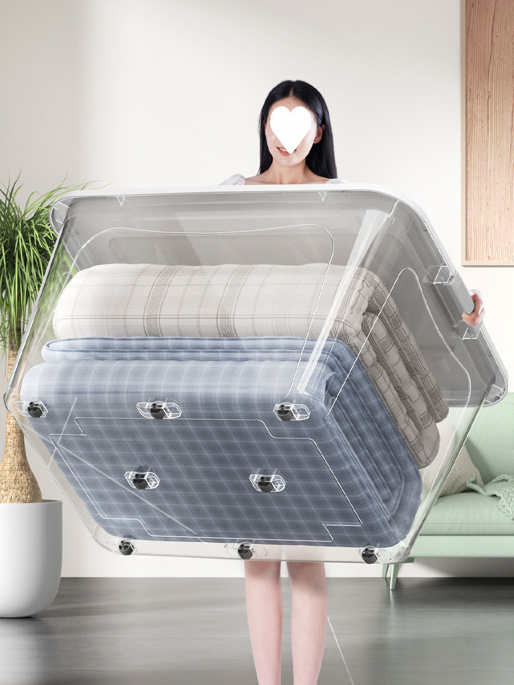 투명한 보관 상자 바퀴가 달린 완전히 투명한 보관 상자 가정용 의류 플라스틱 두꺼운 대용량 초대형 보관 상자스토어 가기