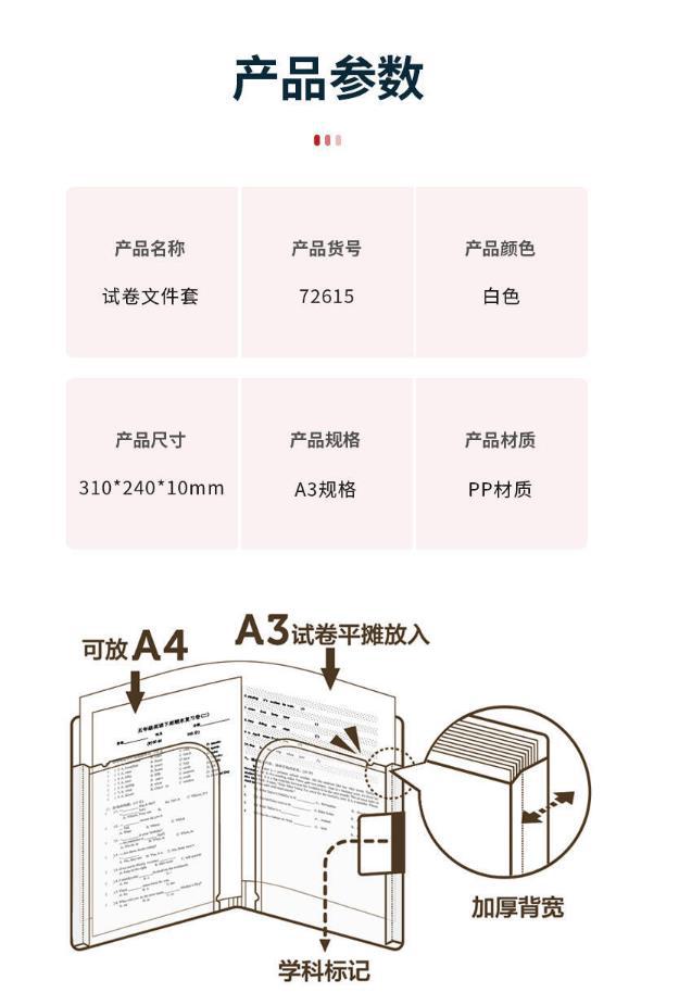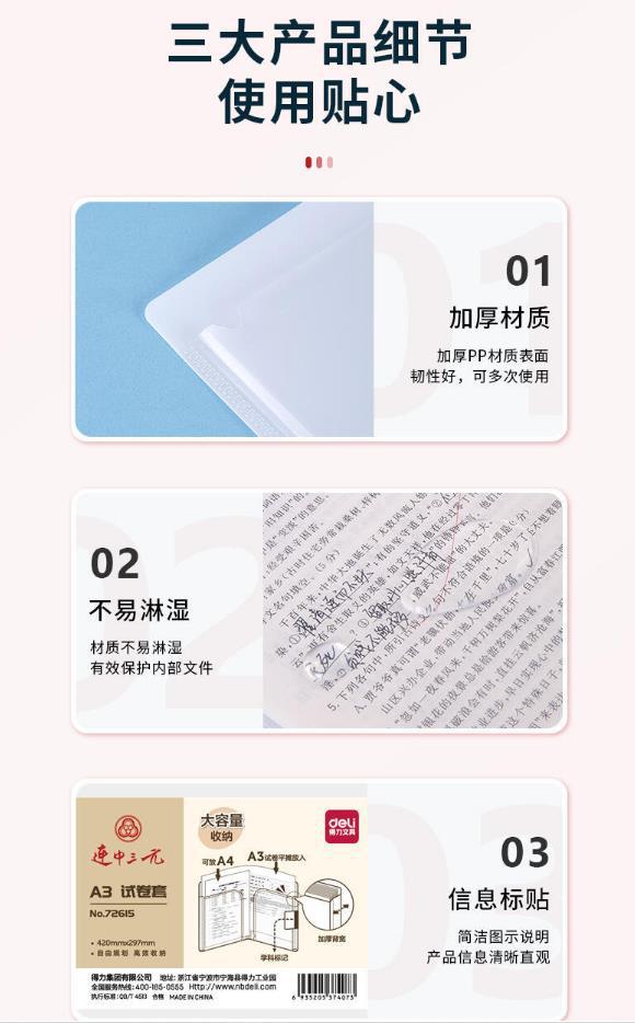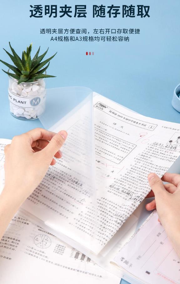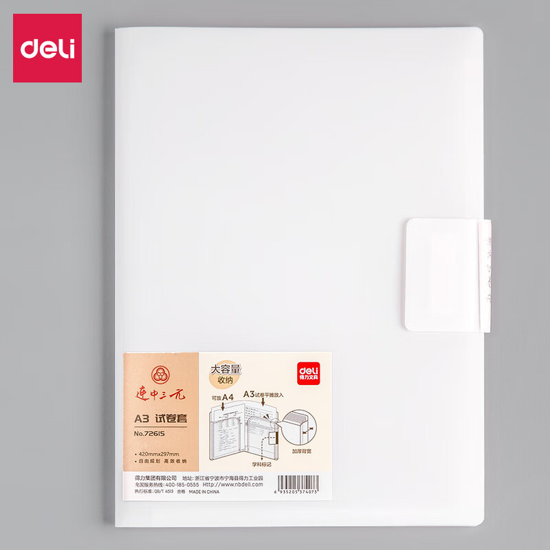델리 파일 세트 72615 A3 심지어 3 위안 테스트 용지 투명 파일 세트 방수 데이터 세트 머리카락