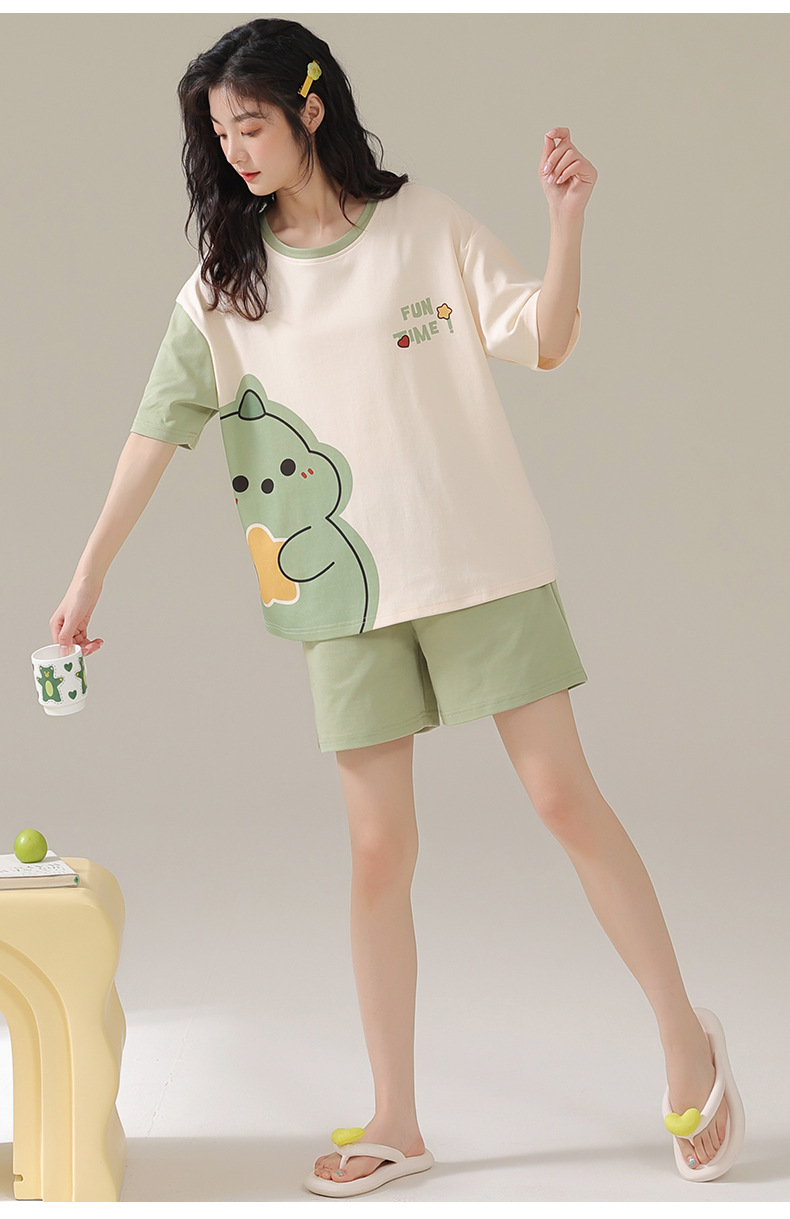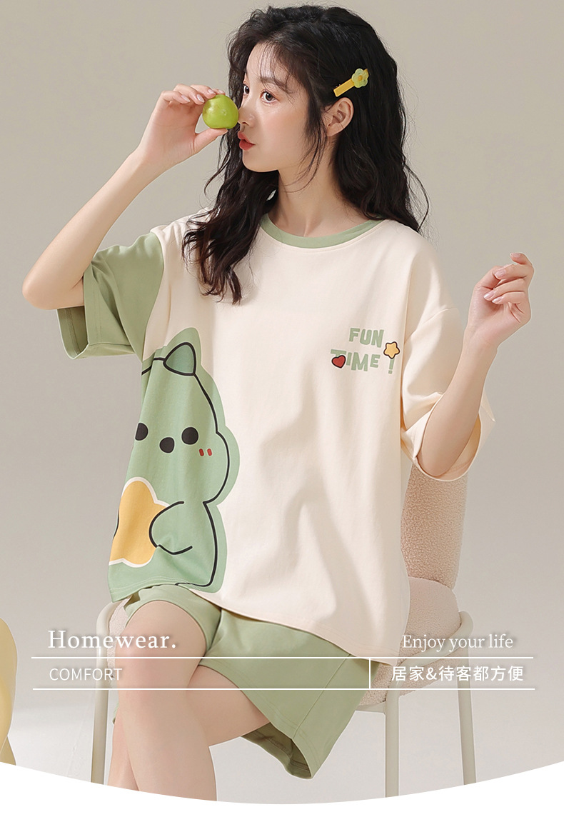 일본 스타일 2025 새로운 여름 잠옷 여성 반팔 느슨한 귀여운 만화 여름 겉옷 홈 세트스토어 가기