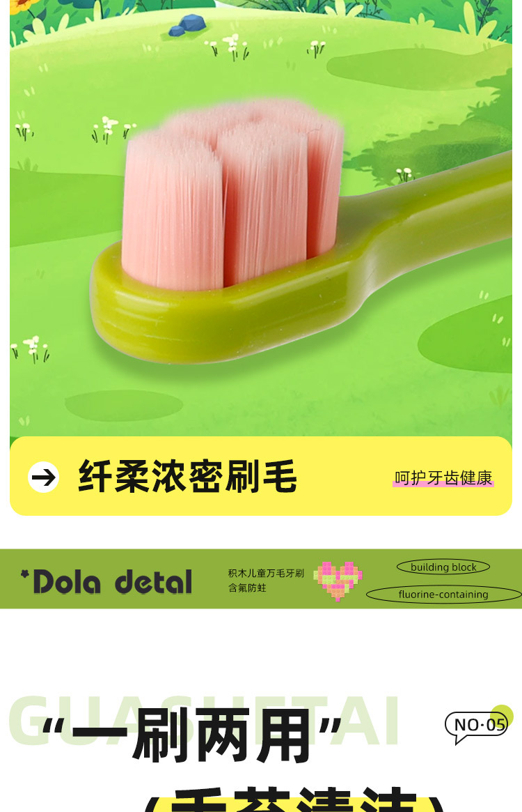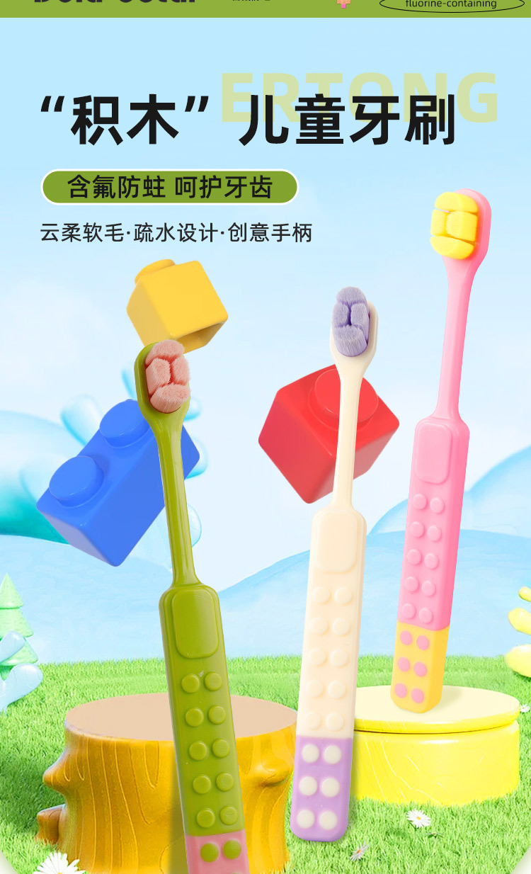 도파민 빌딩 블록 어린이 칫솔 부드러운 강모 가정용 유아 및 유아 치아 교체 기간 충치 방지 10,000 강모 칫솔 도매스토어 가기